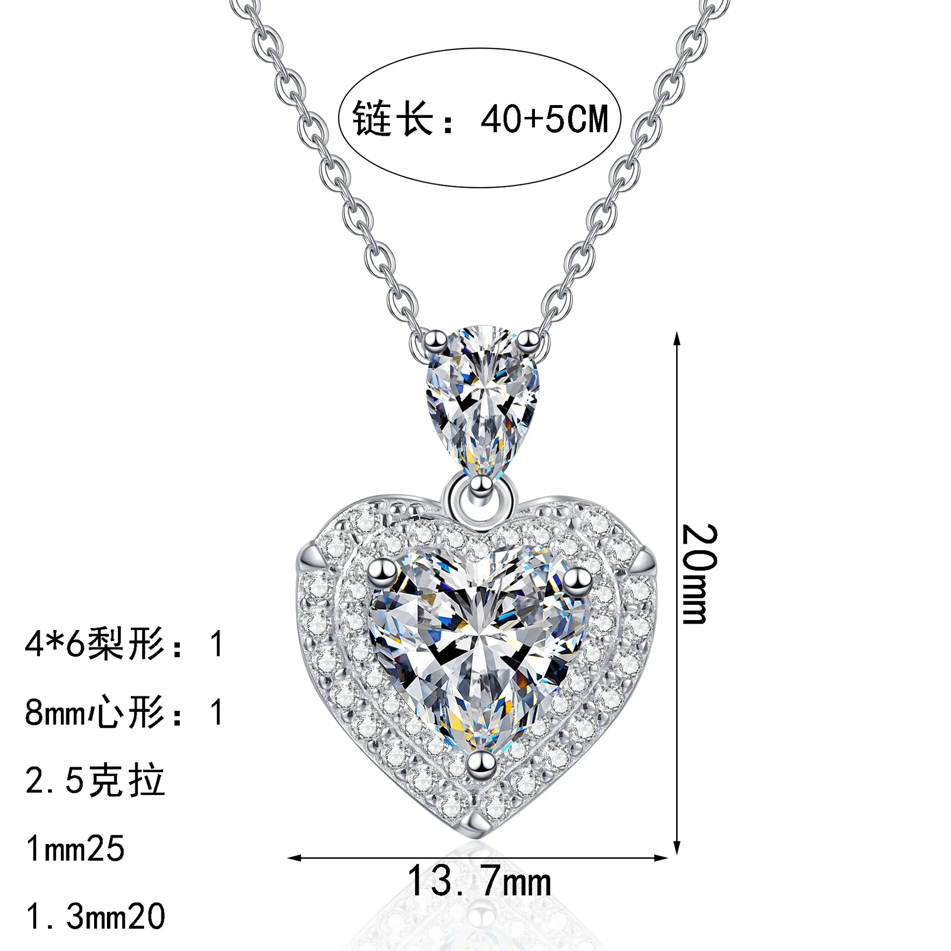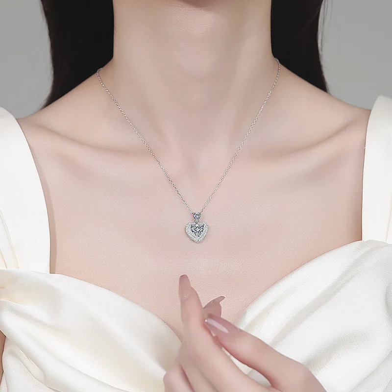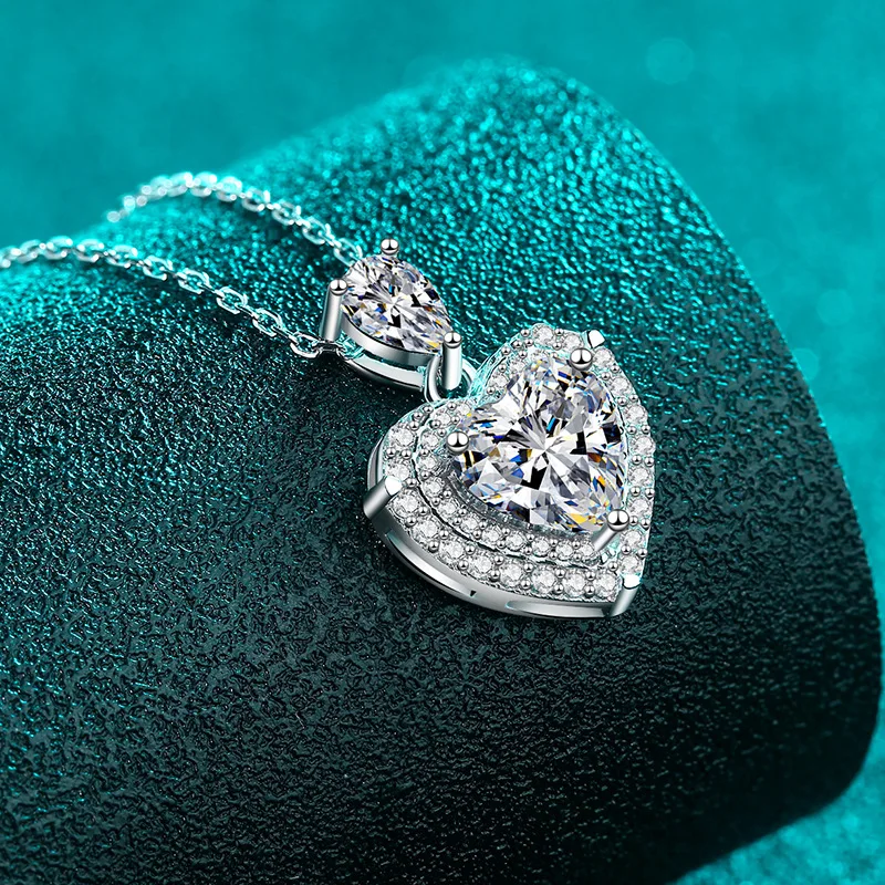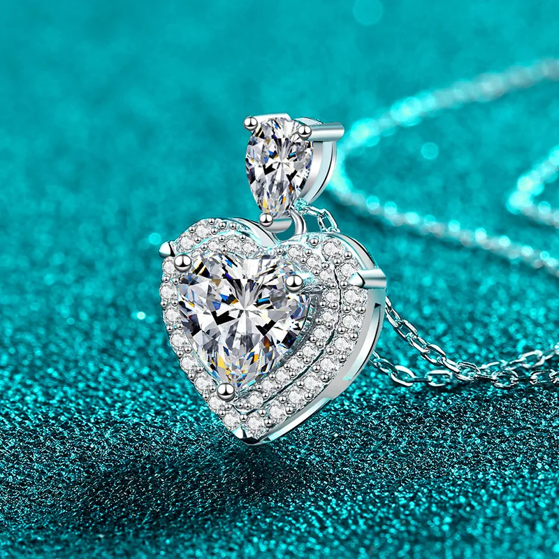 GRA Certified 18k White Gold Moissanite Necklace Heart Cut 2CT Pear Cut 0.5CT Lab Diamond Platinum Pt950 Pendant Wedding Jewelry