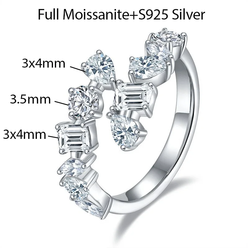 GRA Certified 2.6cttw Full Moissanite Rings 100% 925 Sterling Silver for Women Wedding Sparkling Lab Diamond Fine Jewelry