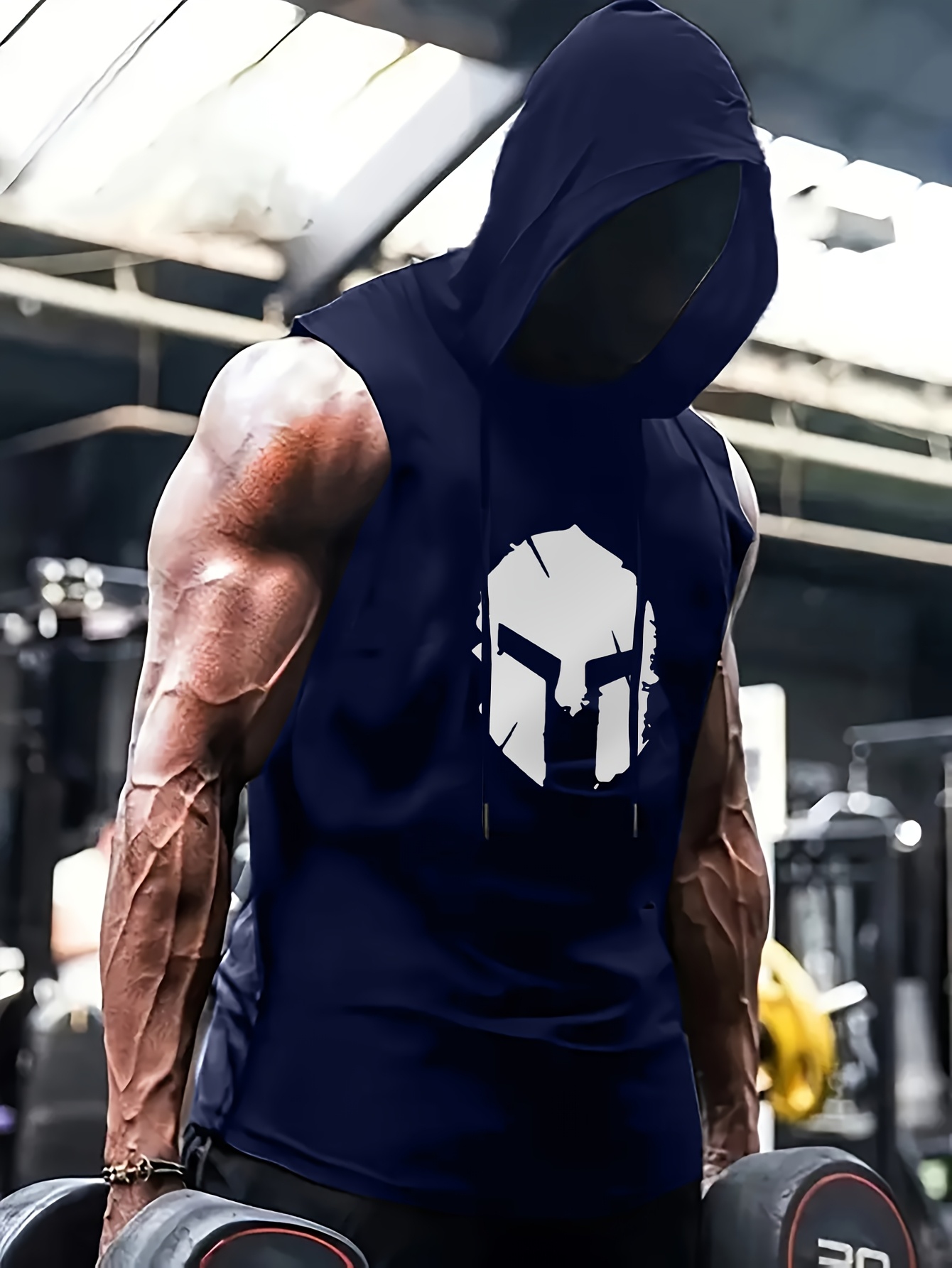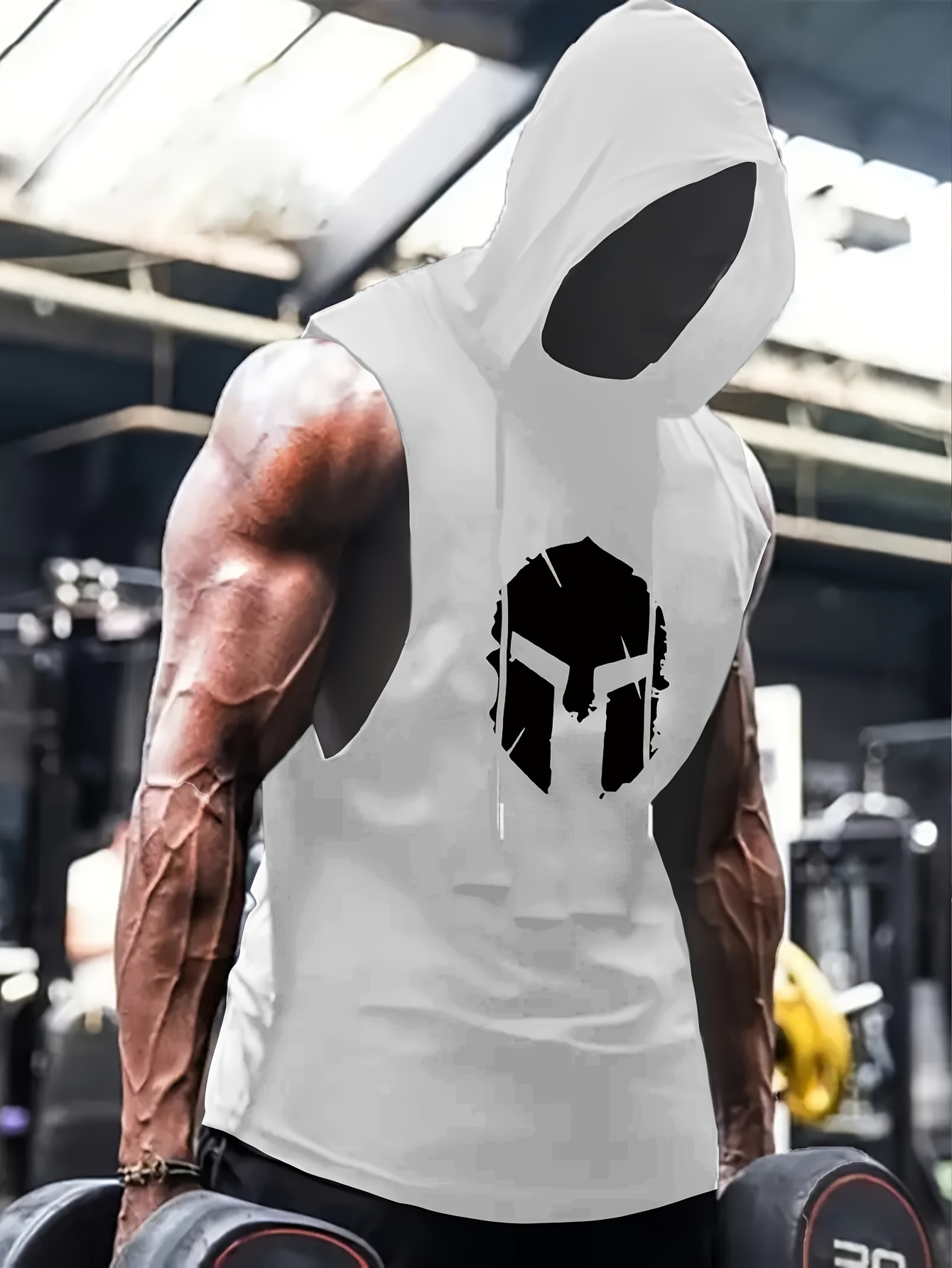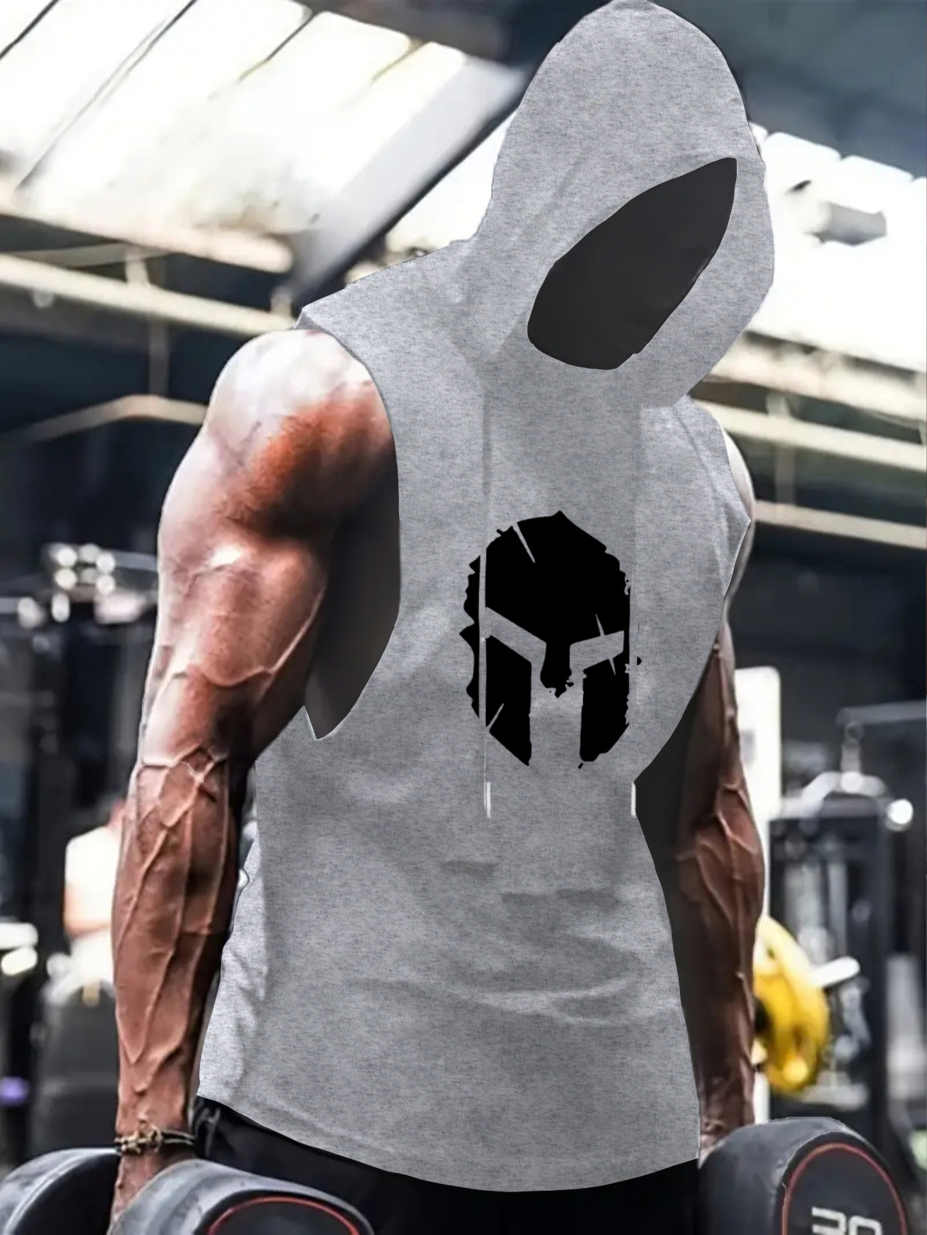 [Graphic Hooded Tank] Gray Men’s Graphic Print Hooded Tank Top | Casual & Sporty Sleeveless Shirt with Bold Skull Design, Regular Fit for Gym, Workouts & Casual Attire