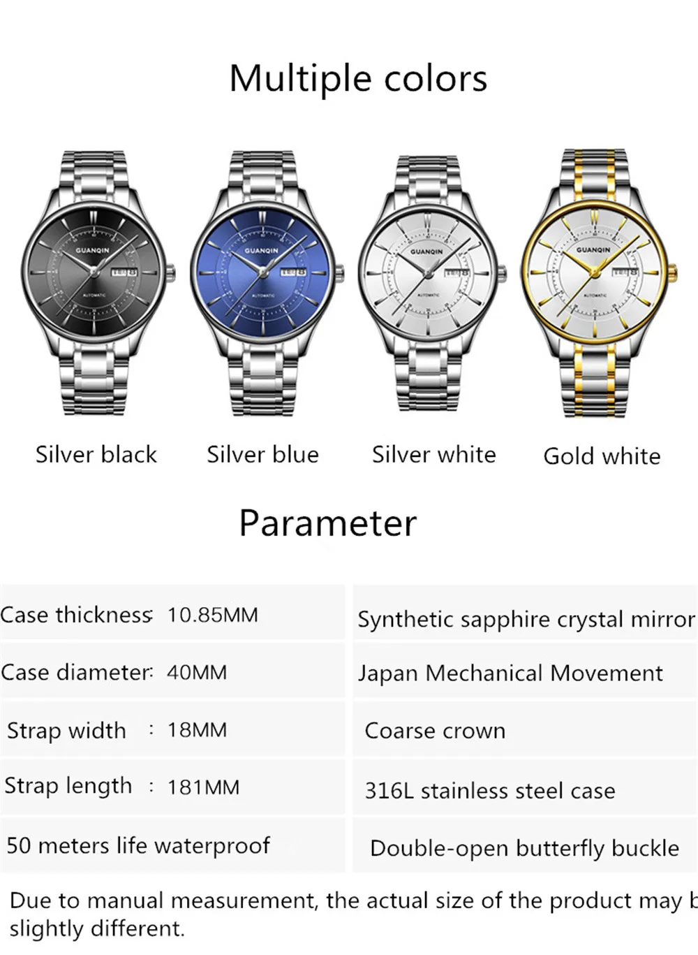 GUANQIN Men’s Sapphire Automatic Self-Wind Mechanical Watch Japan 8205 Movement Top Brand Luxury Waterproof Masculino Relogio