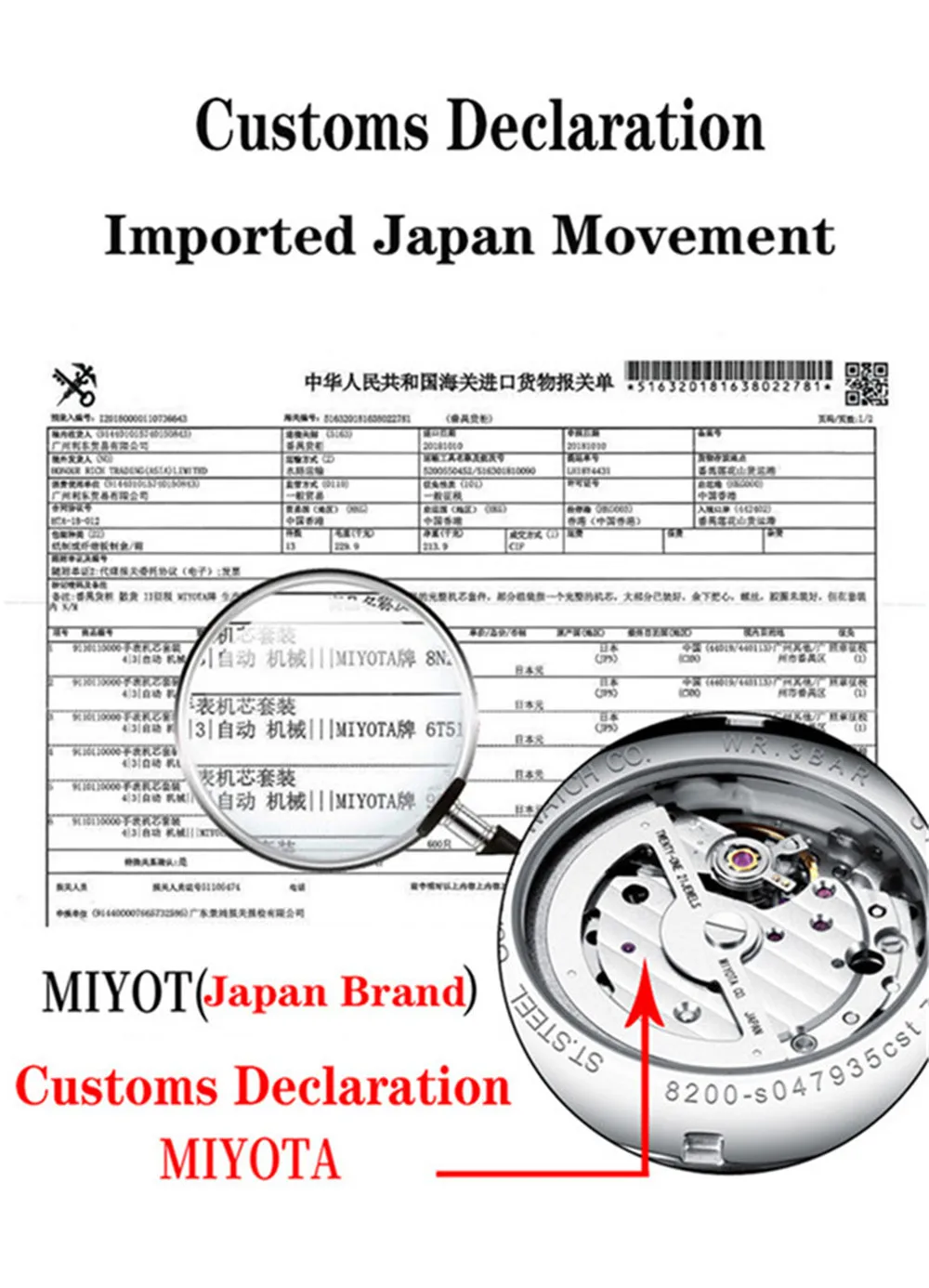 Movement: Japanese Miyota 8205 Movement Automatic Self-Wind