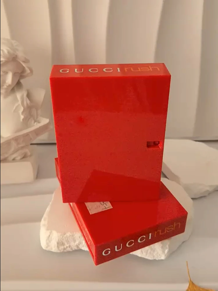 Live life in the fast lane when you start your day with a spritz of Gucci Rush eau de toilette for women, released in 1999 by the house of Gucci. This heady scent contains a daring blend of notes that let you revel in your inner adventure-seeker. Exotic African freesia petals combined with luscious peach on the top provide an enticing opening that melds into a sweet and spicy heart of coriander and jasmine grounded in a patchouli base for a fiery, exotic dry down.