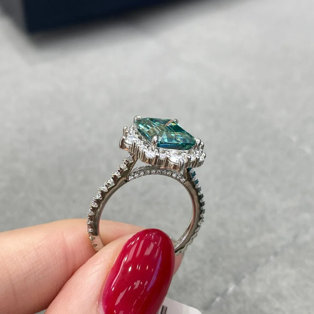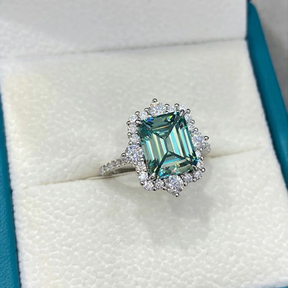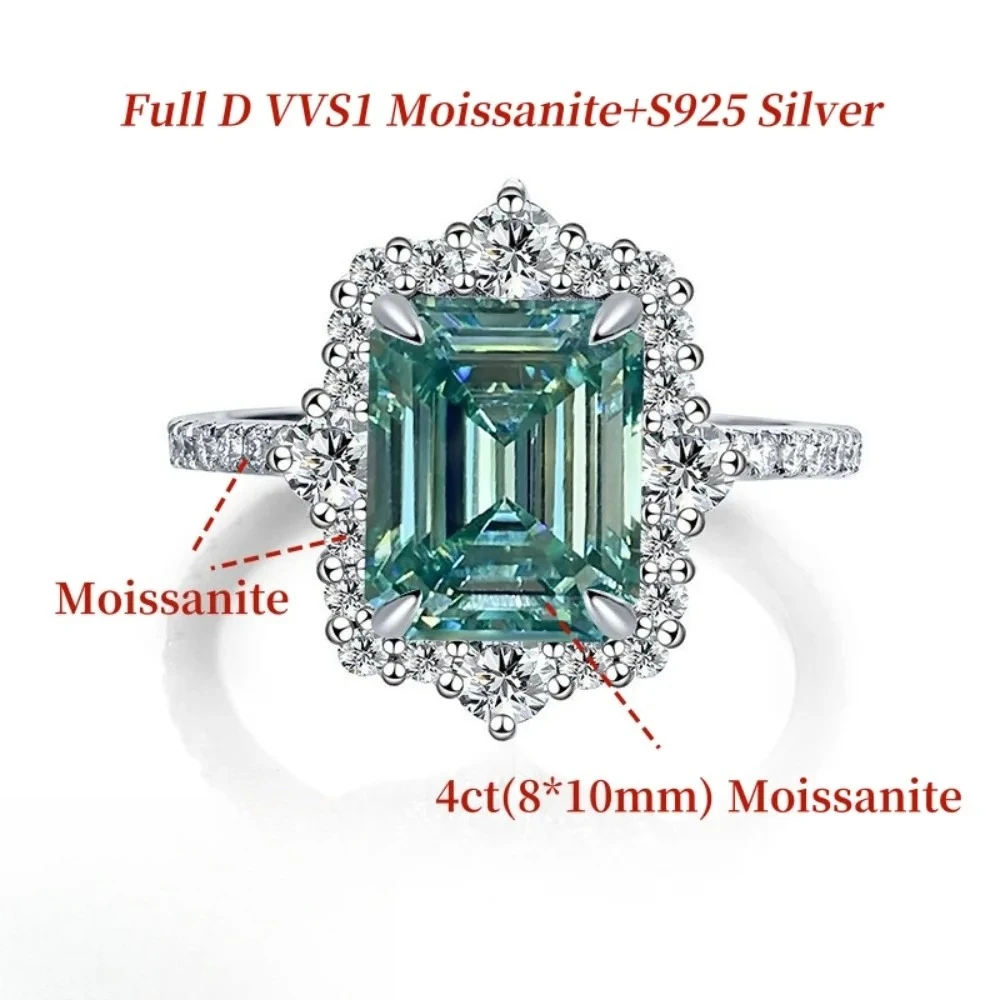 GXTRS 4CT Emerald Cut Green Moissanite Ring For Women 925 Silver Luxury Lab Diamond Party Band 18K Plated Fine Jewelry Certified