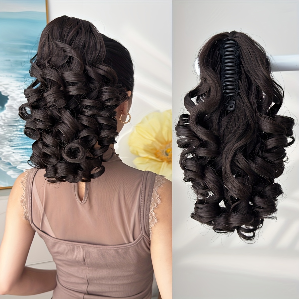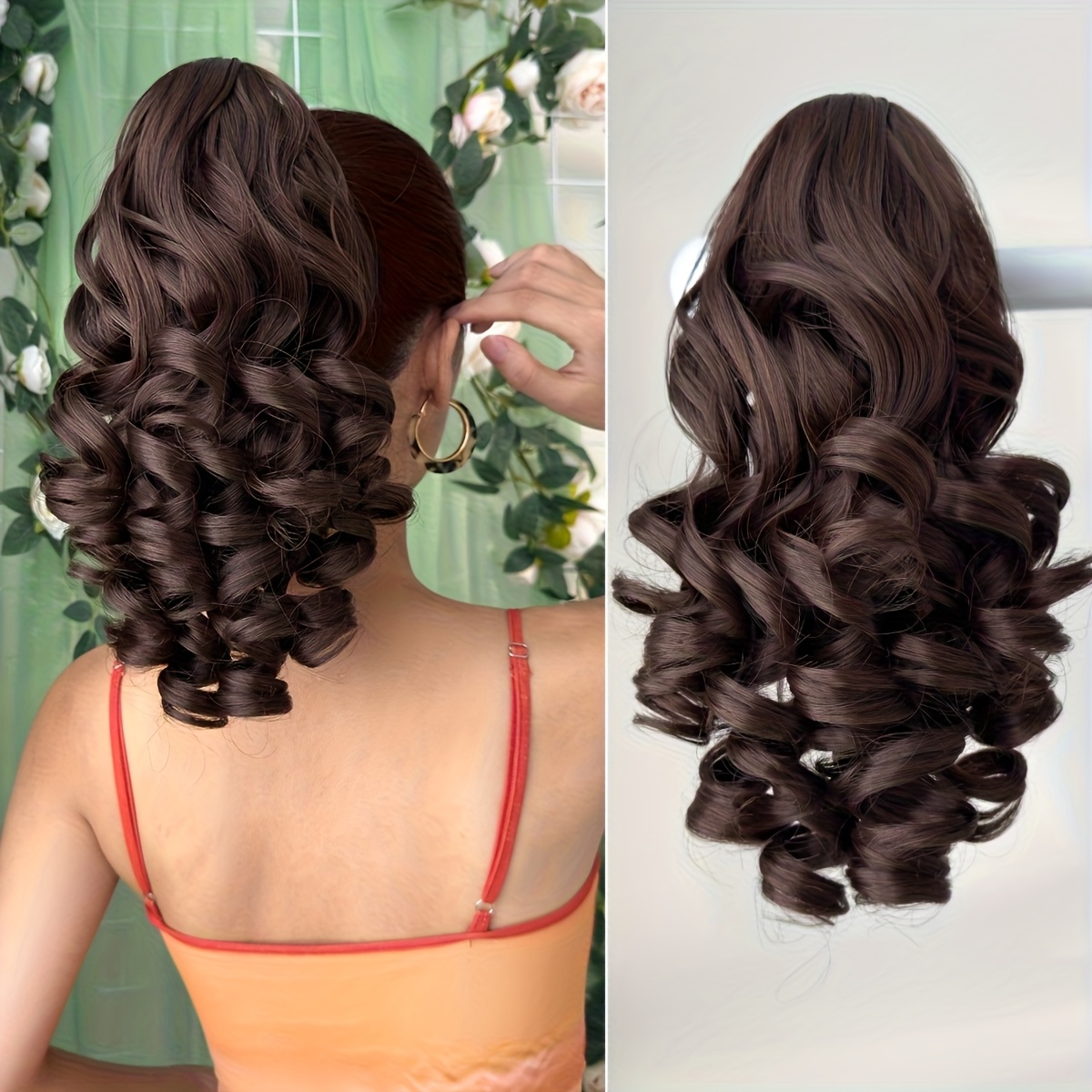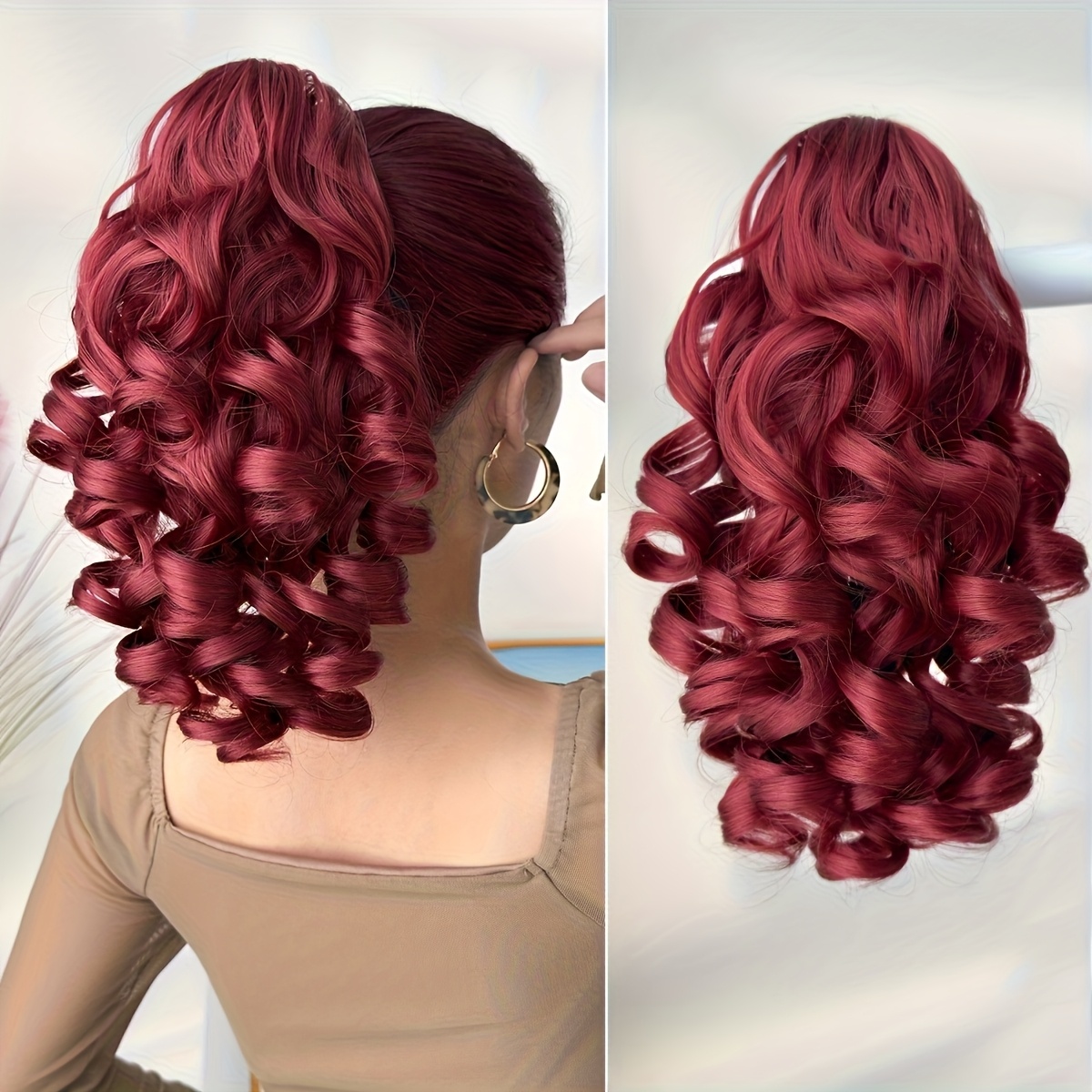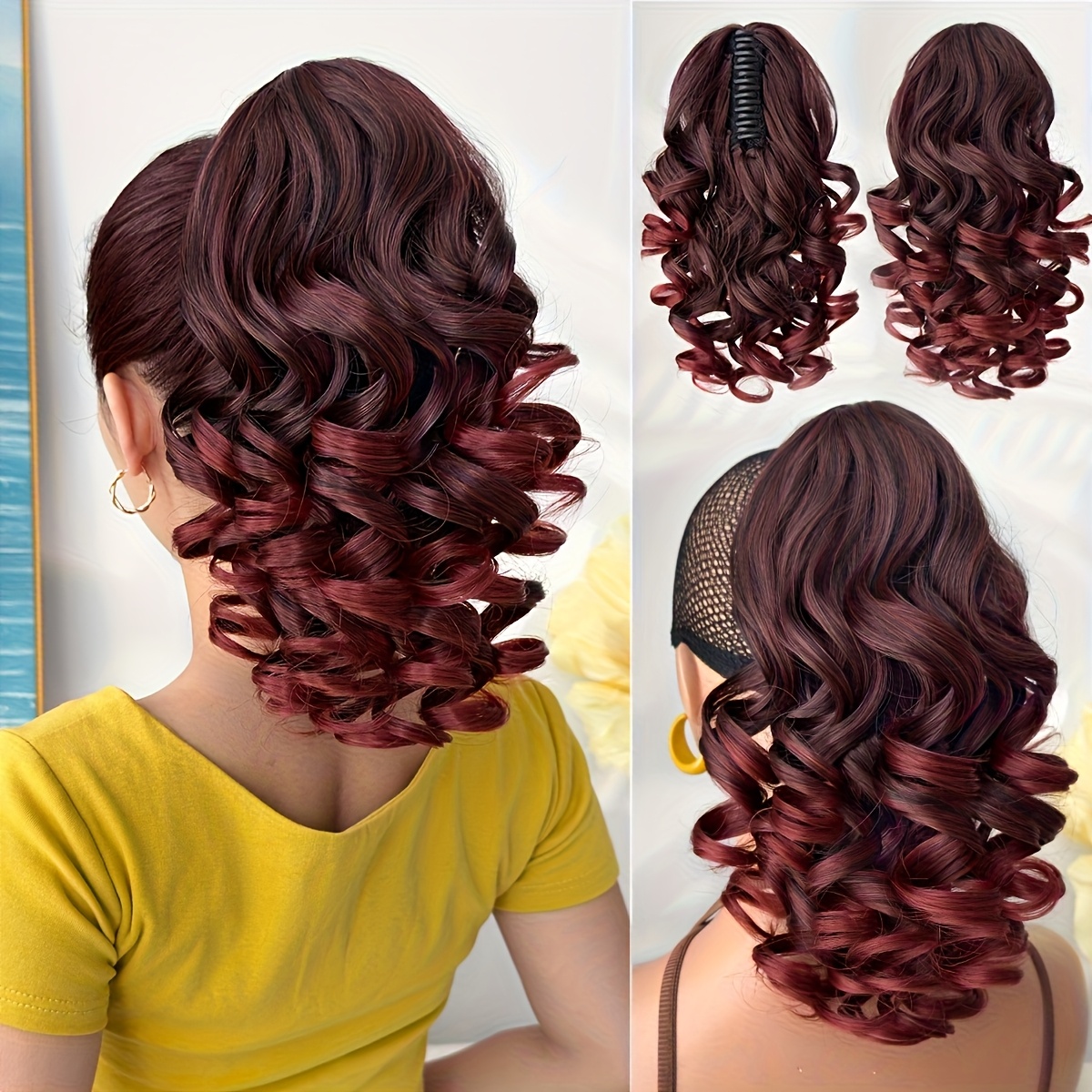 Hair Pieces for Women 14-inch Curly Wave Clip-in Ponytail Deep Brown & Wine Red. Heat-resistant Synthetic Fiber, High-quality & Durable. Quick Daily Hair Solution for Women, Busy Professionals & Beauty Lovers. Christmas Decorations