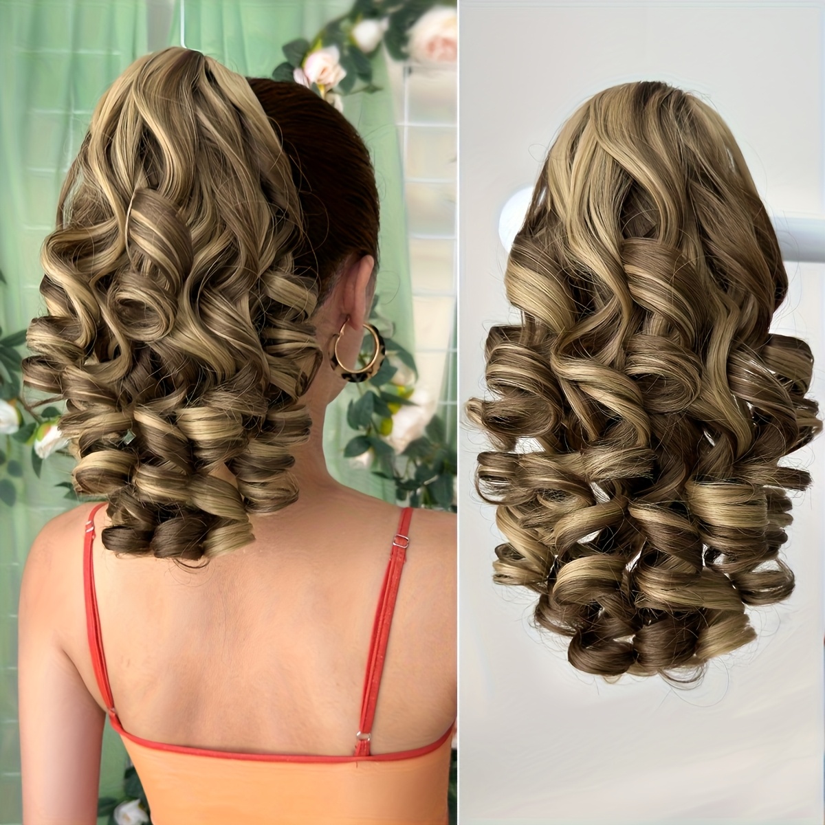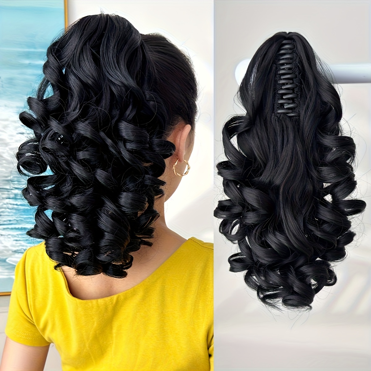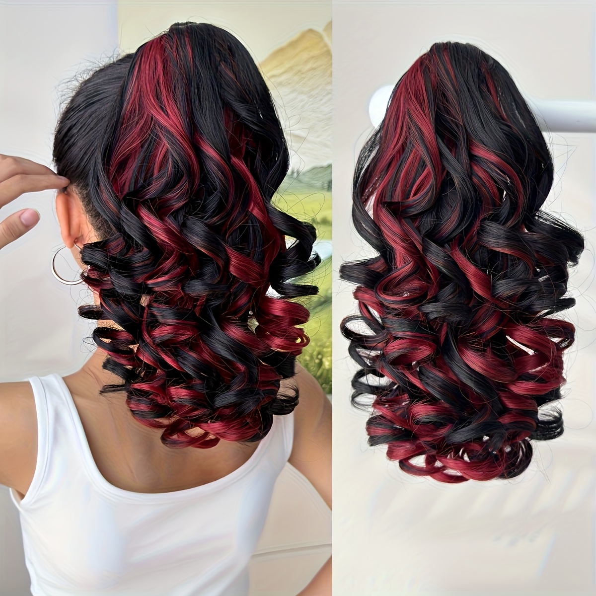 Hair Pieces for Women 14-inch Curly Wave Clip-in Ponytail Deep Brown & Wine Red. Heat-resistant Synthetic Fiber, High-quality & Durable. Quick Daily Hair Solution for Women, Busy Professionals & Beauty Lovers. Christmas Decorations