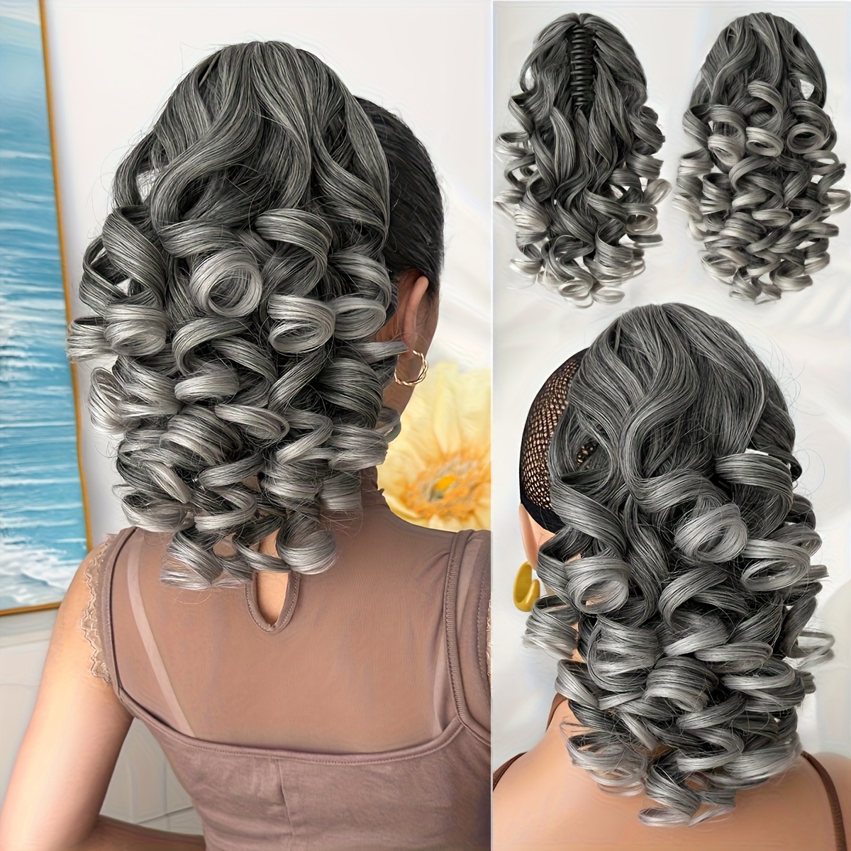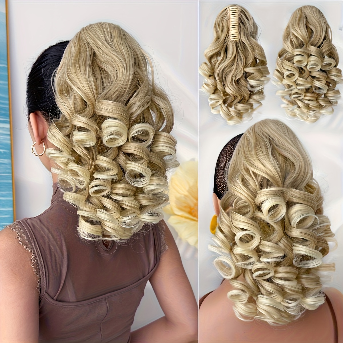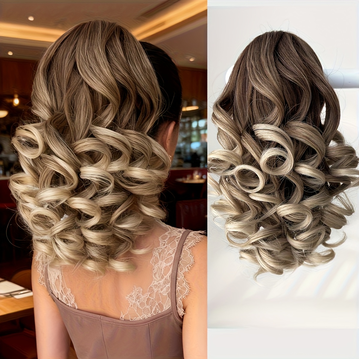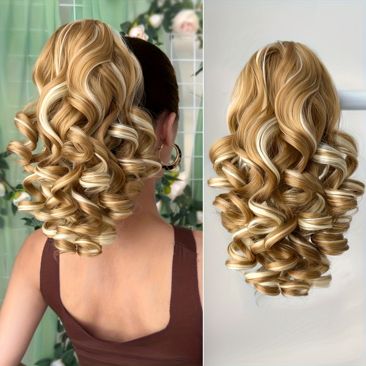Hair Pieces for Women 14-inch Curly Wave Clip-in Ponytail Deep Brown & Wine Red. Heat-resistant Synthetic Fiber, High-quality & Durable. Quick Daily Hair Solution for Women, Busy Professionals & Beauty Lovers. Christmas Decorations