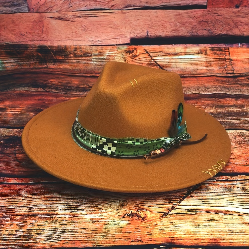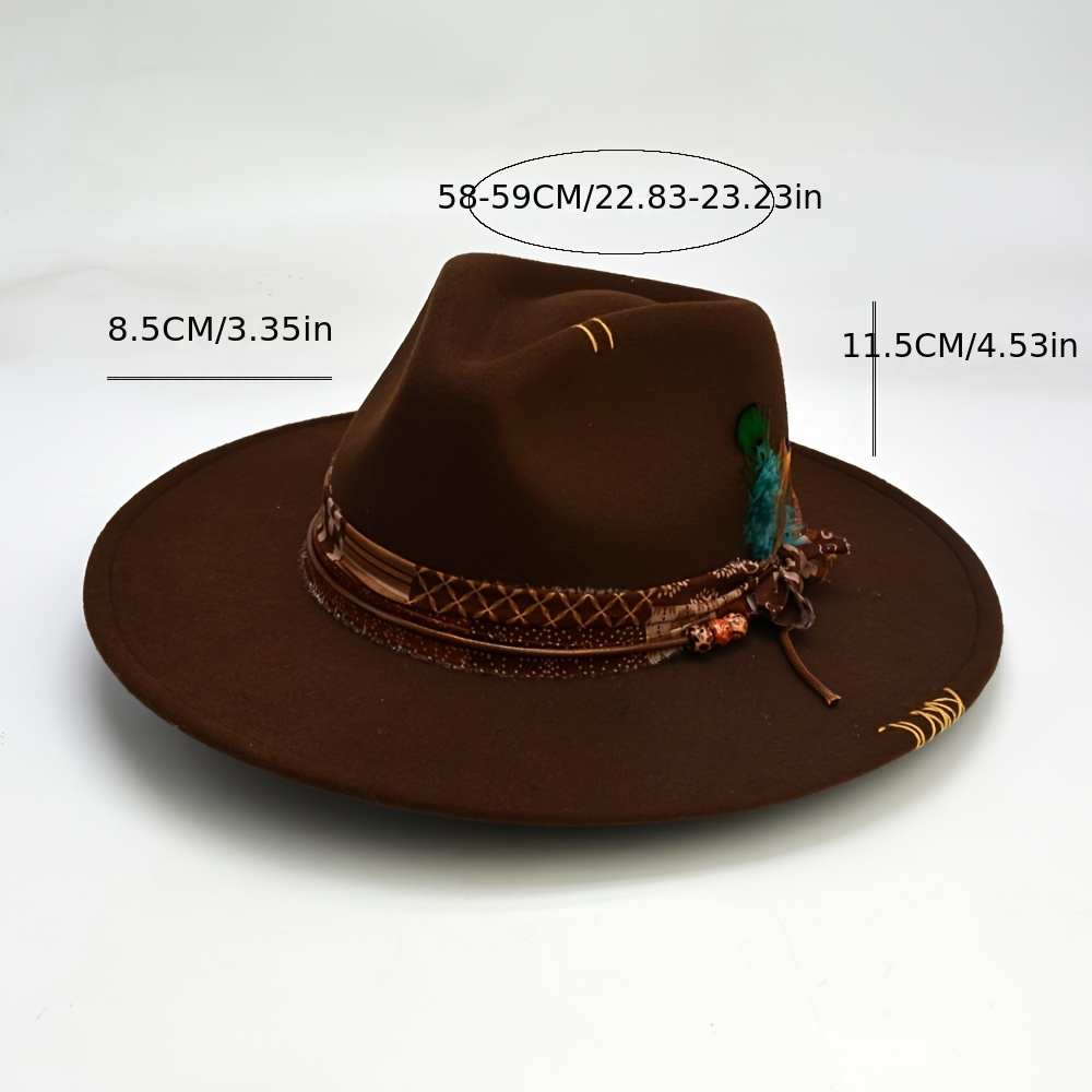 Hand-Sewn Needle Personalized Feather Outdoor Unisex Felt Hat, Classic Panama Felt Hat for Spring And Winter Street Photography