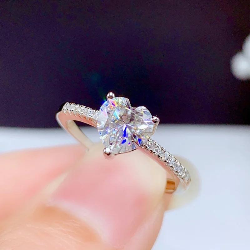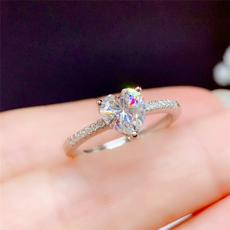 Moissanite Ring 1CT 6.5MM Heart Style Lab Diamond Certified Fine Jewelry Women Wedding Gift Real 925 Silver Engagement ring