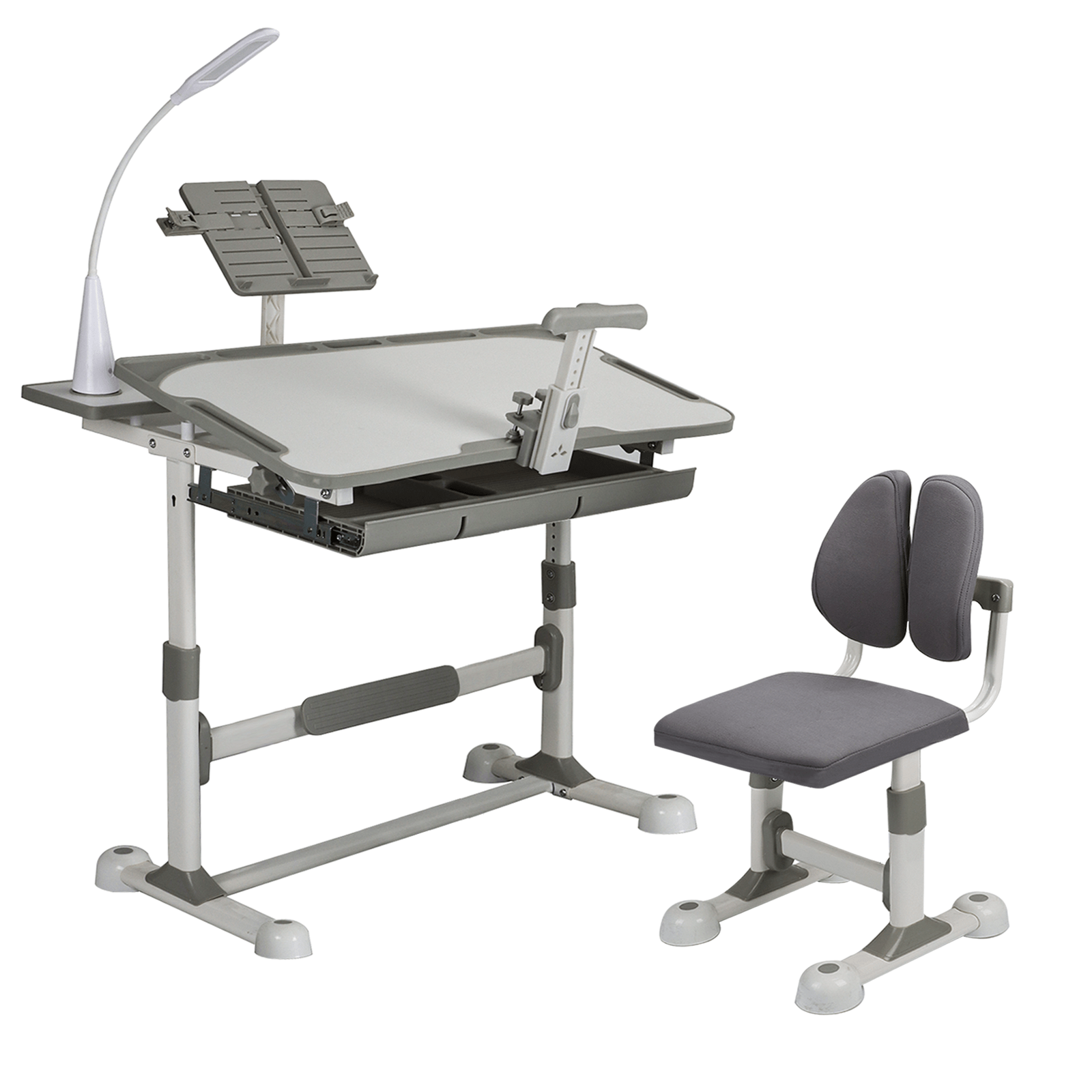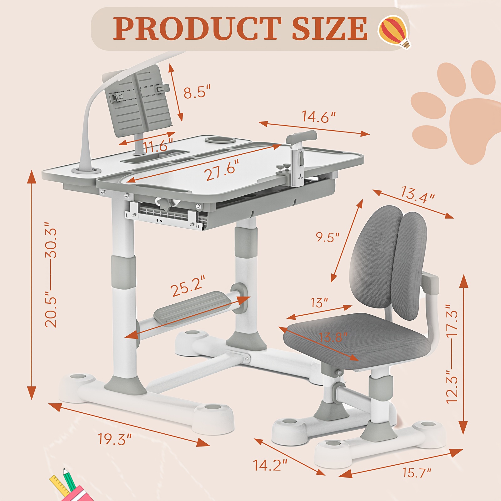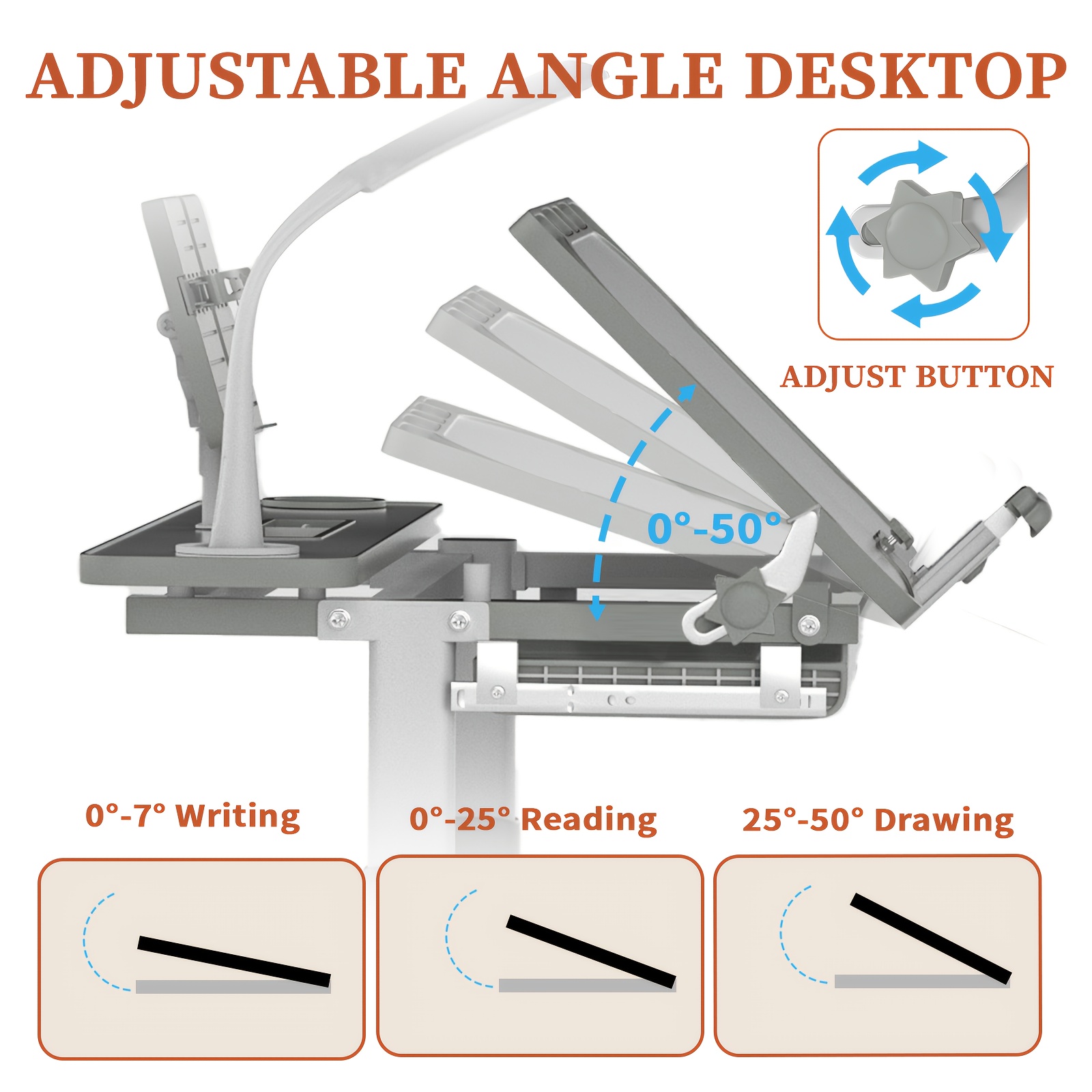 Height Adjustable Multifunctional Learning Table and Chair Set for Kids with Storage Drawer, Adjustable Tilt Top, Bookshelf, and LED Light, Suitable for Writing, Reading, and Drawing, Essential for Home Study, Ideal as a Gift