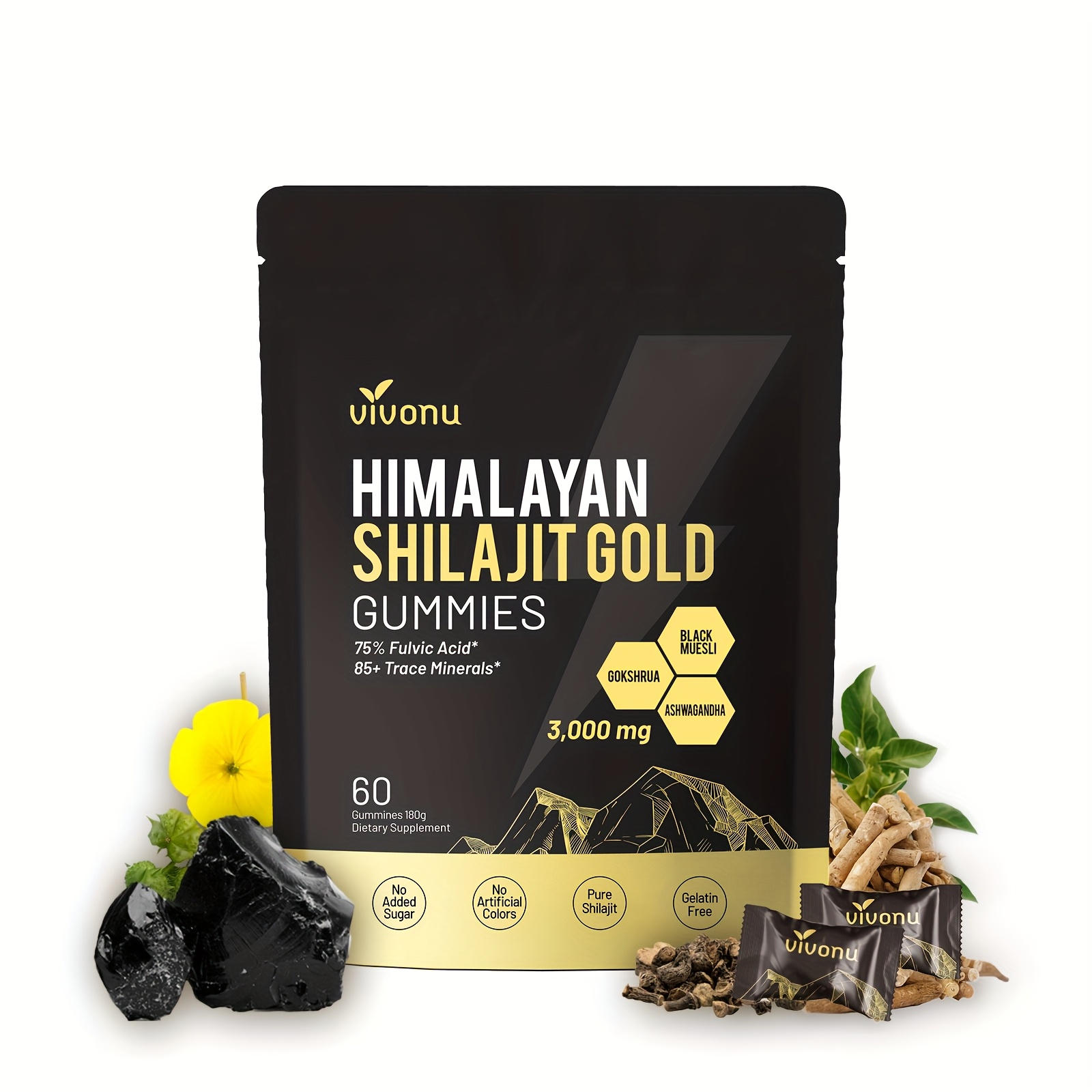 Himalayan Shilajit Gummies, With Ashwagandha Gokshura & Other Herbs, No Added Sugar, 60 Gummies