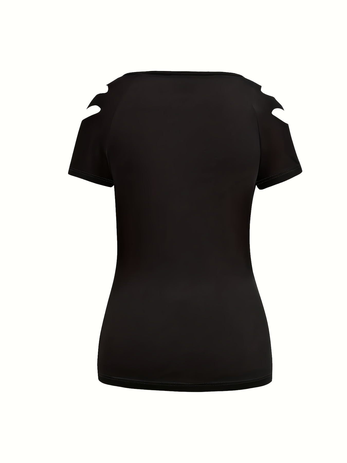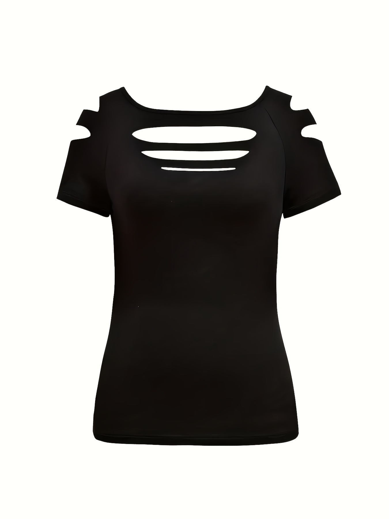 Hollow Out Bodycon Top – Solid Color Spring Summer Blouse Suitable for Music Festivals, Concerts & Daily Wear – Machine Washable Hollow-Out Style Stretchable Blouse