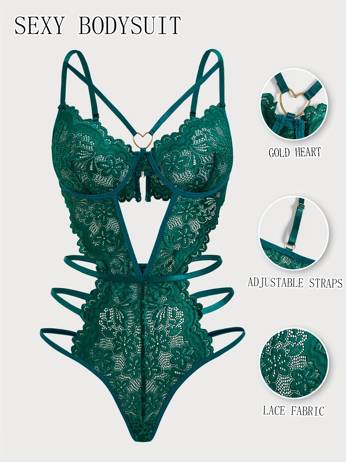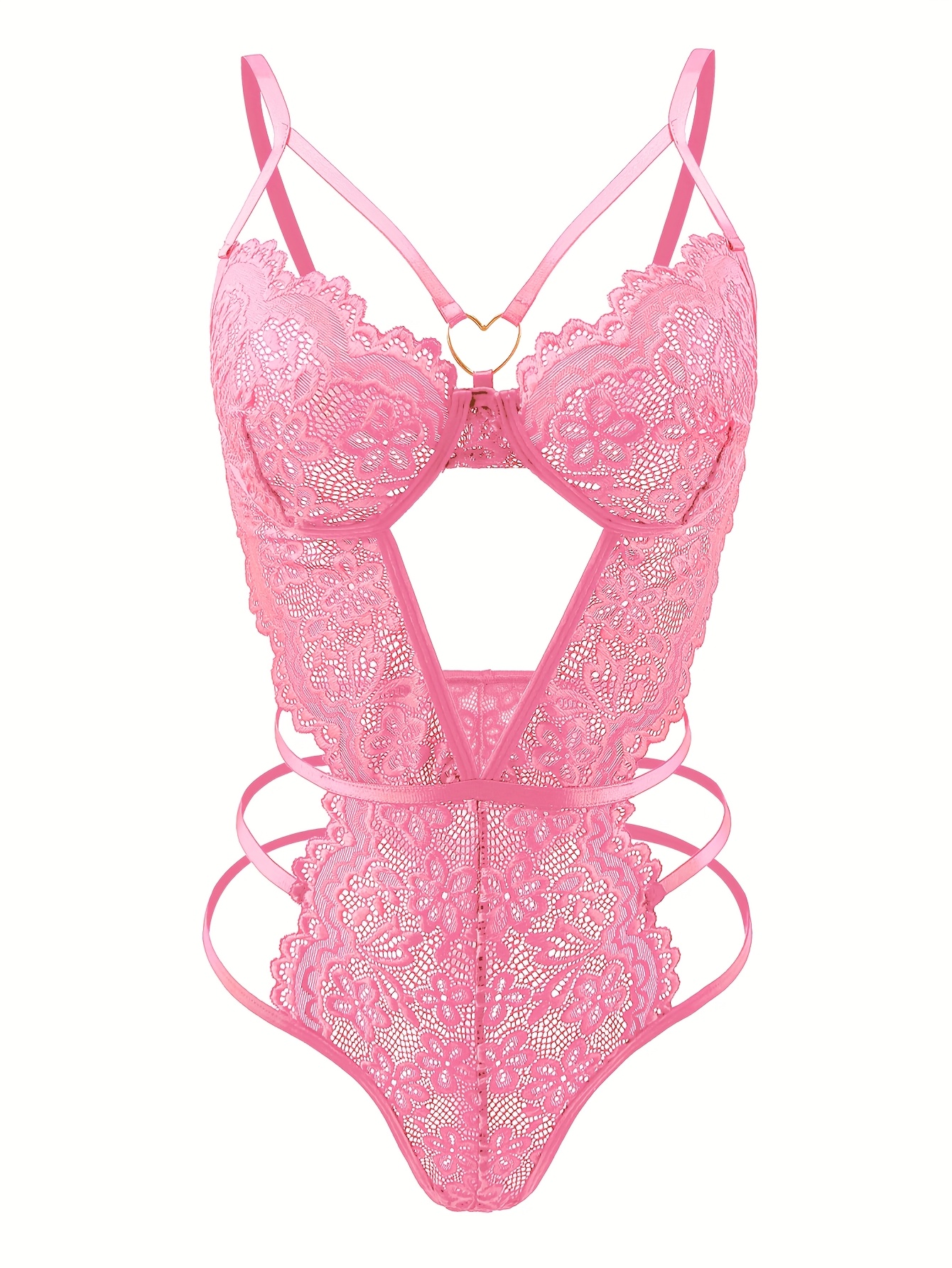 Hot Floral Lace Teddy, Cut Out Heart Linked Backless Bodysuit, Women’s Sexy Lingerie & Underwear