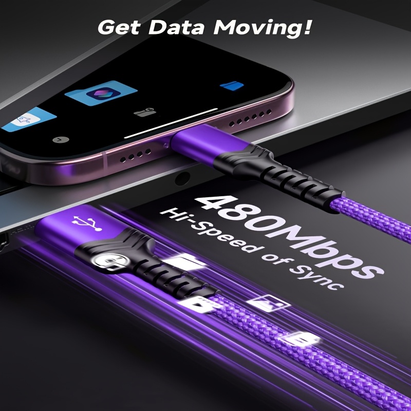 Dual-Function Sync & Charge: Not just for power—this cable supports high-speed data transfer (up to 480 Mbps), allowing you to sync music, photos, and files between your device and laptop seamlessly.