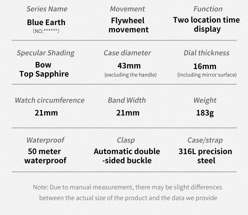 Blue Earth series watches: Tourbillon movement, hollow design, synthetic sapphire mirror surface, more effective in preventing mirror wear, using high-quality gemstones as bearings for the watch, greatly reducing friction and making the movement operate more stably.