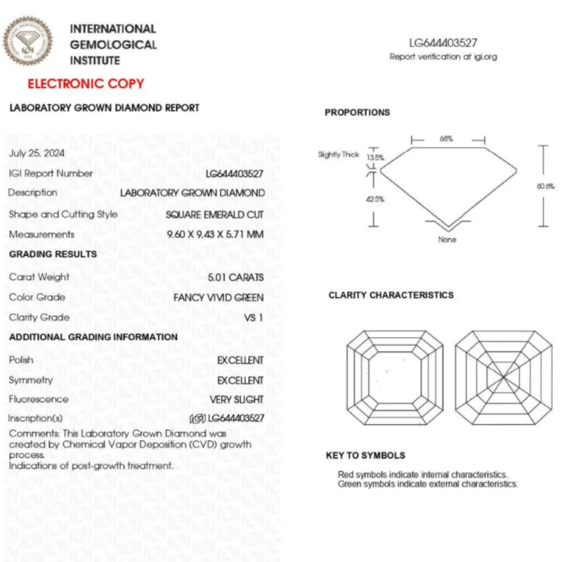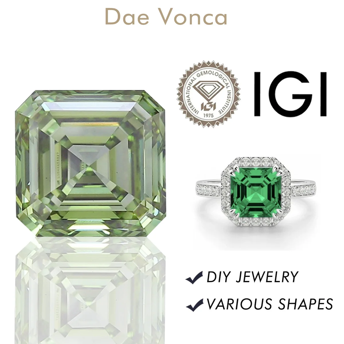 IGI Certified Green Asscher Cut Lab Loose Diamonds VS1/VS2 Fancy Green Lab Grown Diamonds For Custom Jewelry