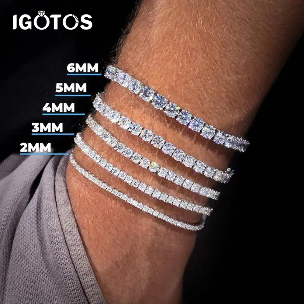 IGOTOS 2/3/4/5mm Moissanite Tennis Bracelet for Women Men Plated 18K Gold Lab Diamond Bangles 925 Sterling Silver Jewelry GRA