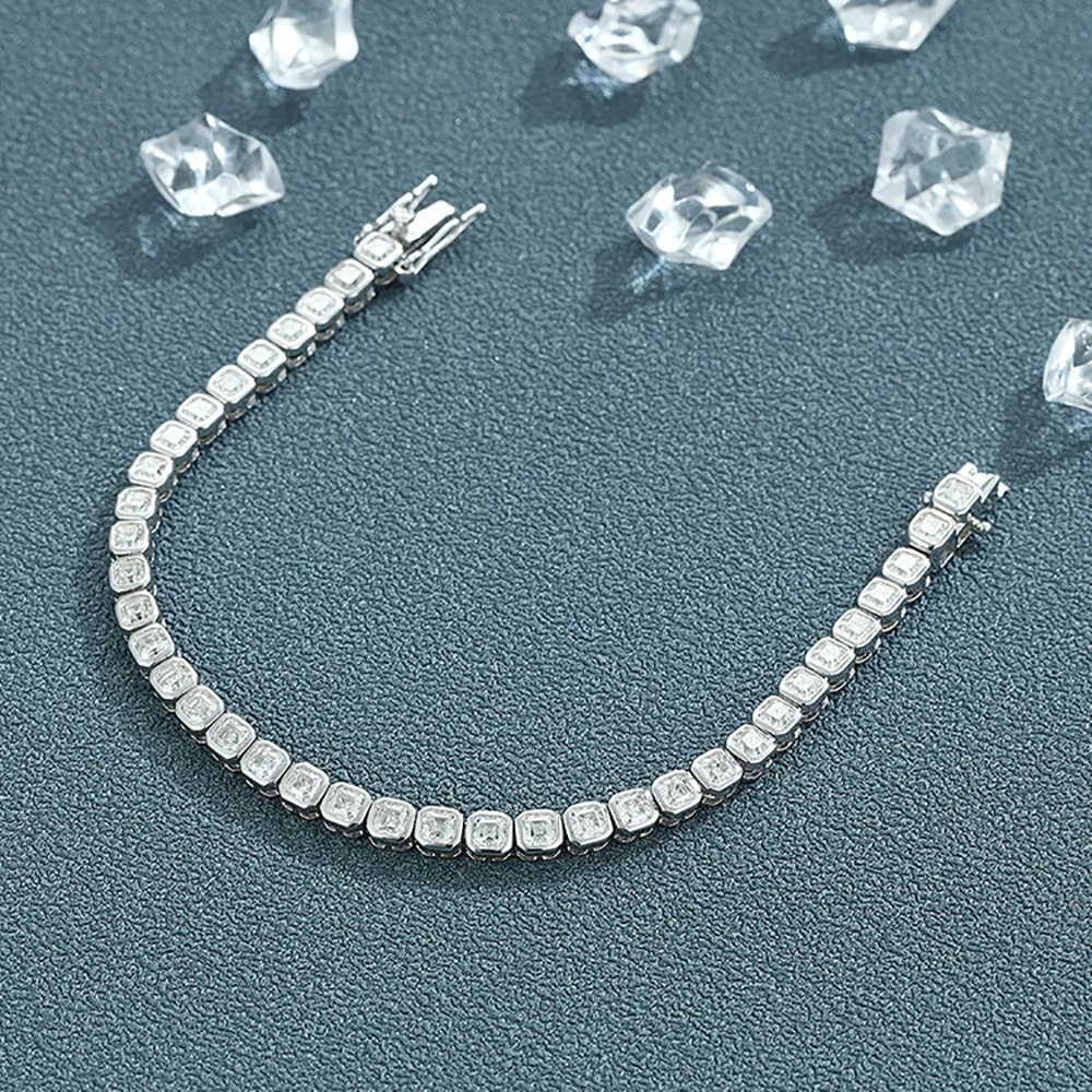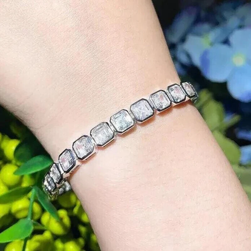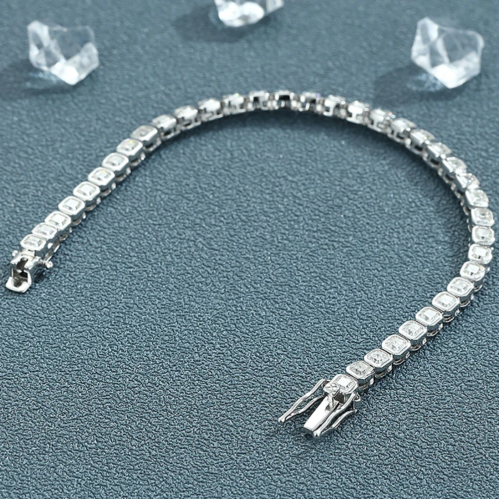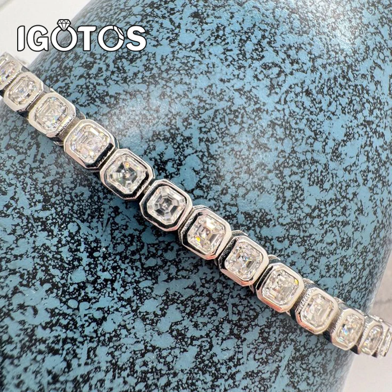 IGOTOS Asscher Cut Moissanite Tennis Bracelet for Women Men 3*3mm Sparkling Lab Diamond Bangle S925 Sterling Silver Fine Jewelry