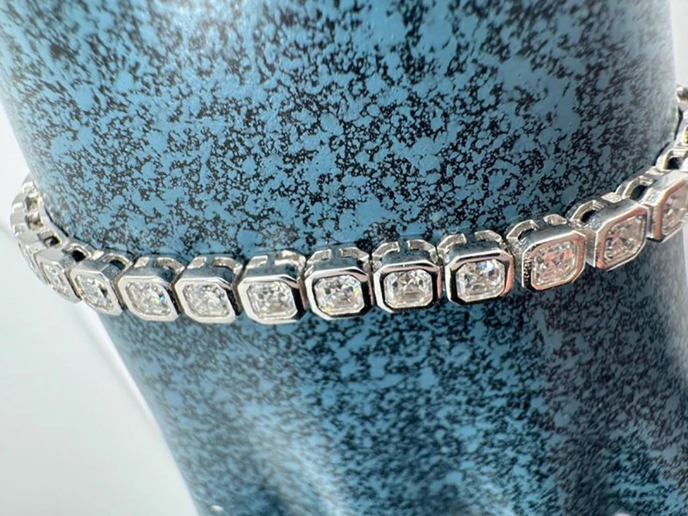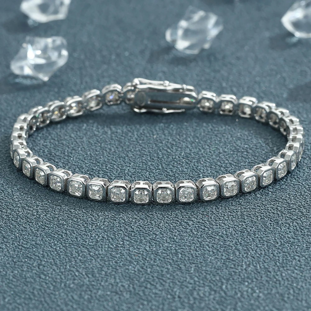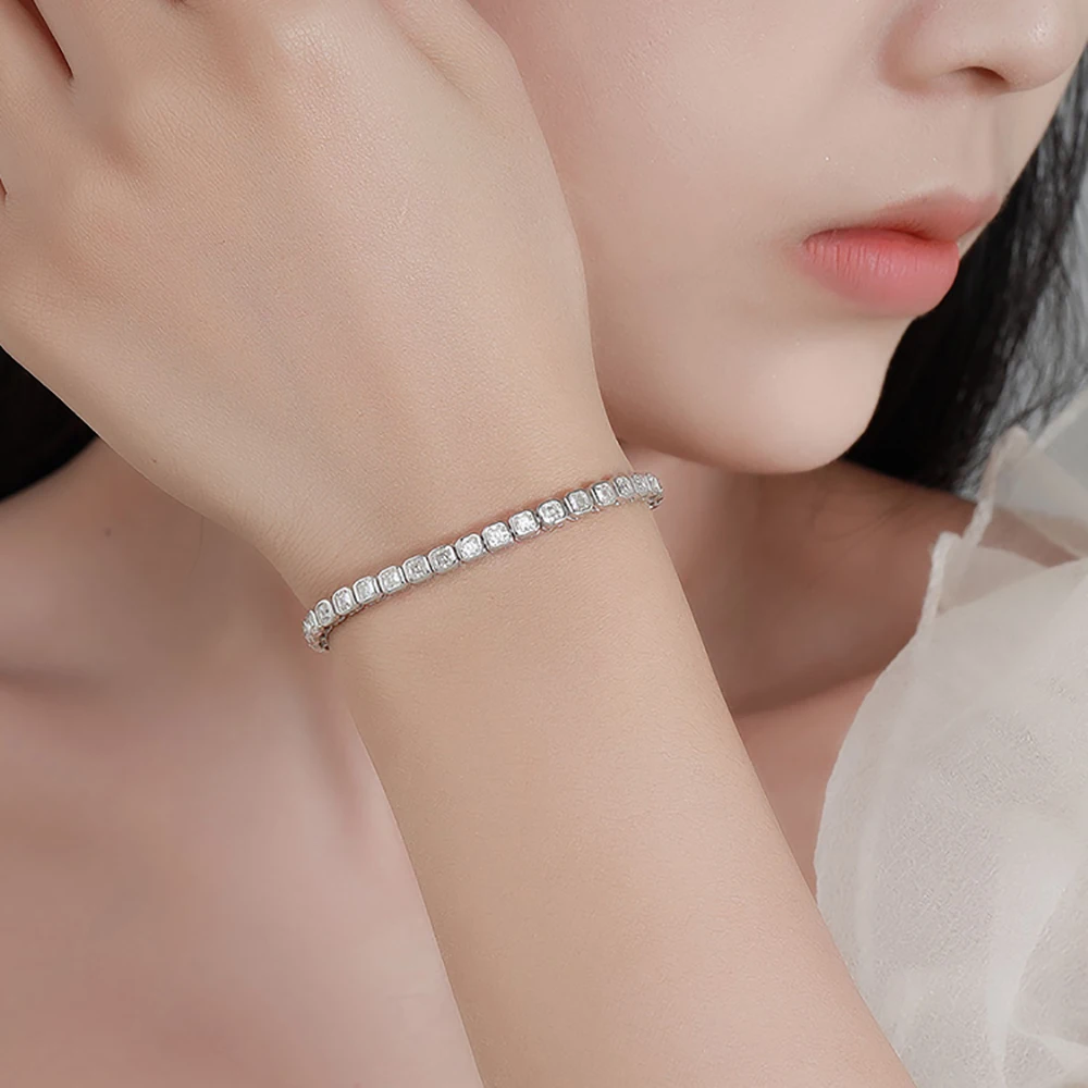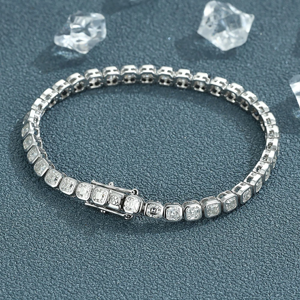 IGOTOS Asscher Cut Moissanite Tennis Bracelet for Women Men 3*3mm Sparkling Lab Diamond Bangle S925 Sterling Silver Fine Jewelry