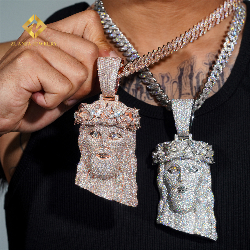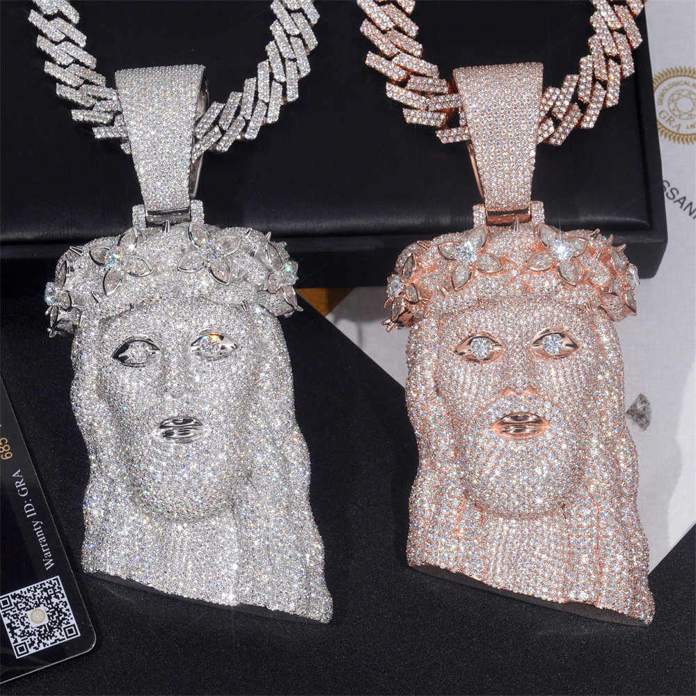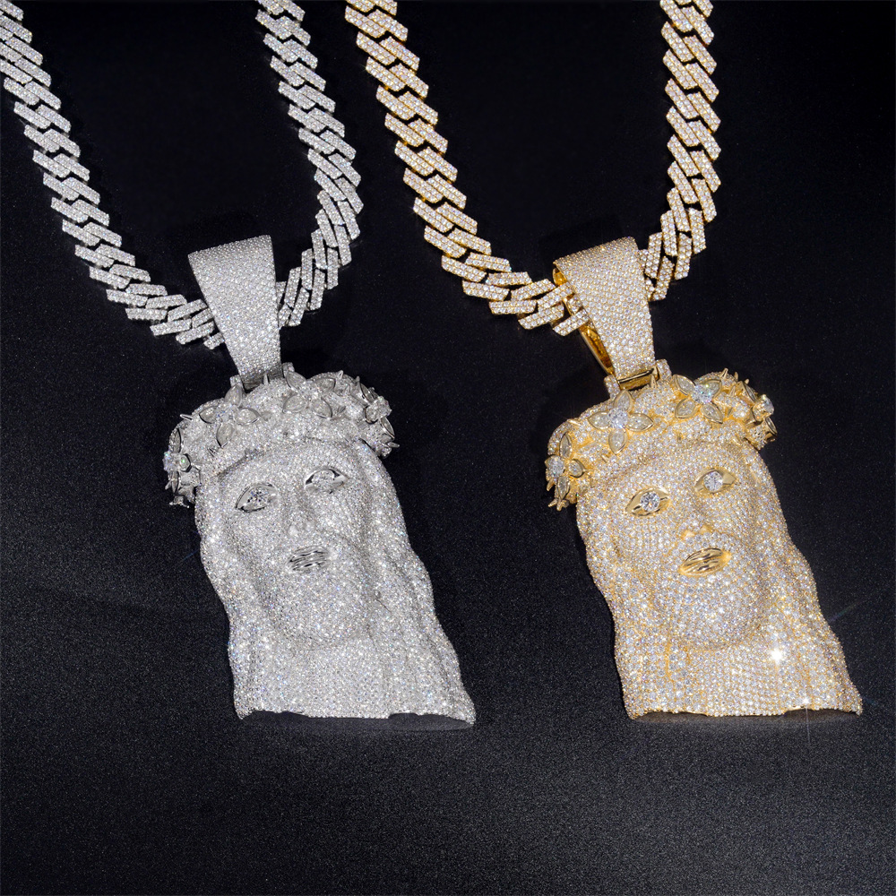 Iconic Jesus Bust Design: The pendant features a three-dimensional crown-of-thorns portrait, meticulously inlaid with micro-stones for an “iced-out” finish.