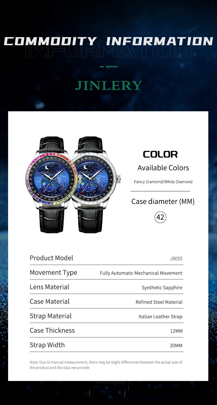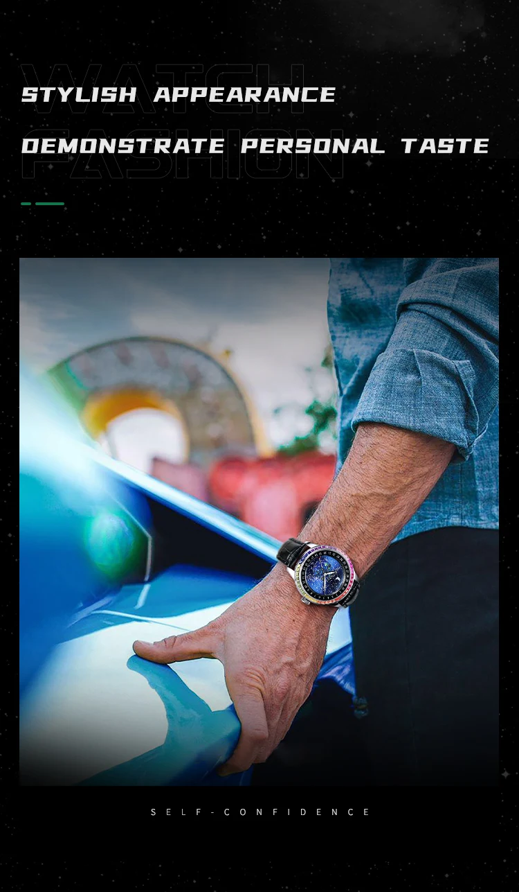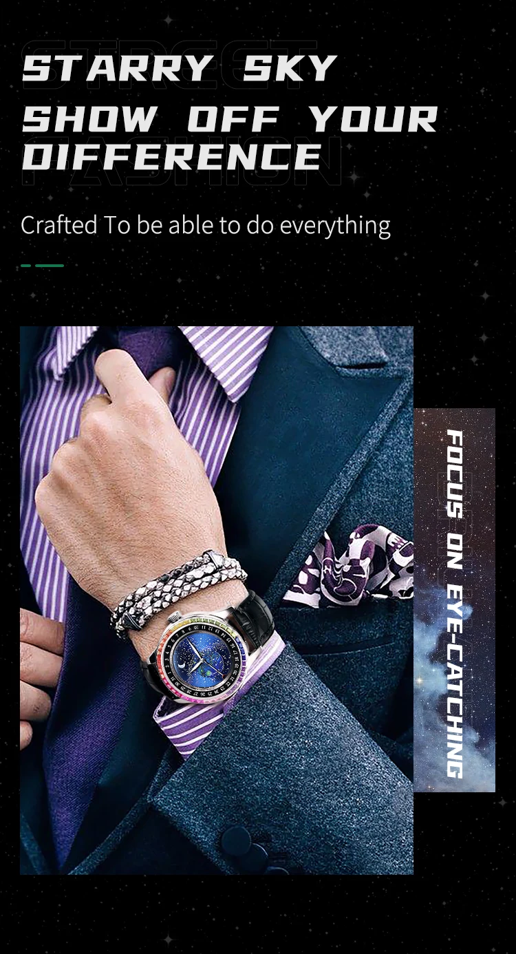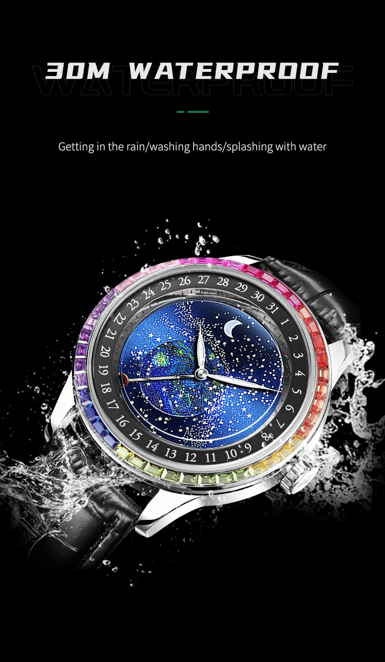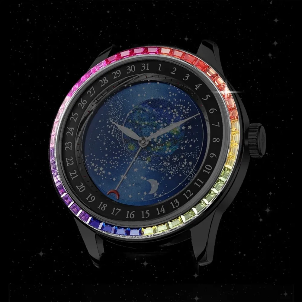 JINLERY Men Automatic Self-Wind Mechanical Watch Starry Sky Pattern Colorful Diamond Design Fashion Sapphire Crystal Wristwatch