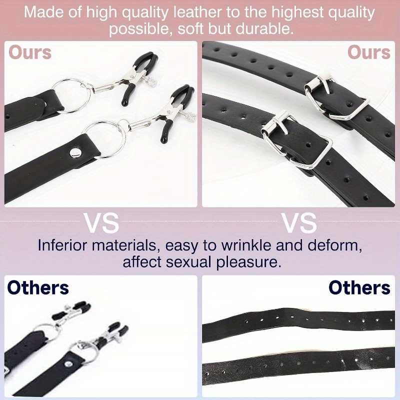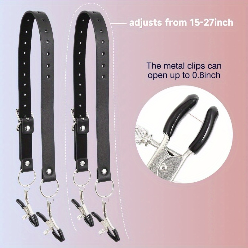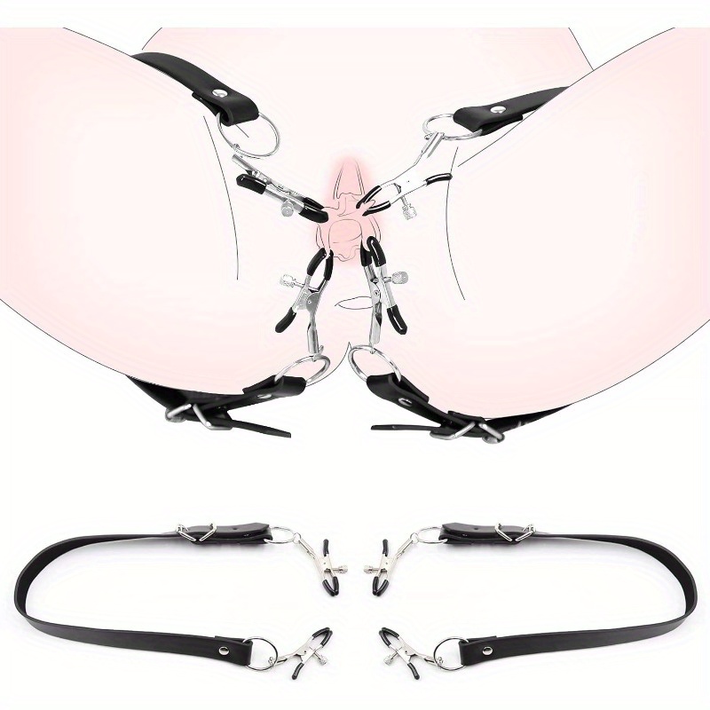 Labia Spreader for Women, BDSM Body Clamps Nipple Clamps Clips with Adjustable Faux Leather Straps Rubber Tips, Fetish Stimulator Role Play Adult Sex Toys 15-27inches, Black