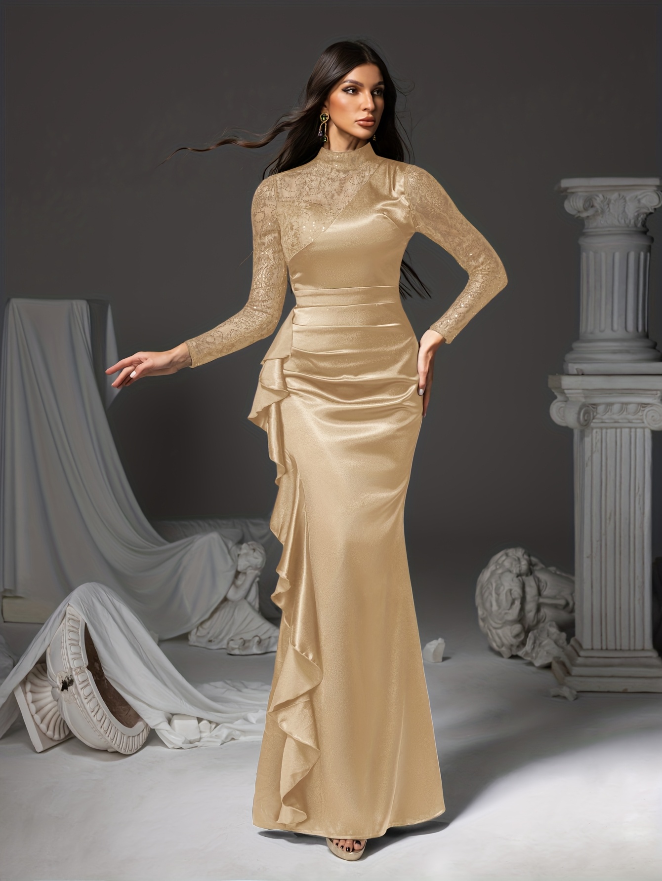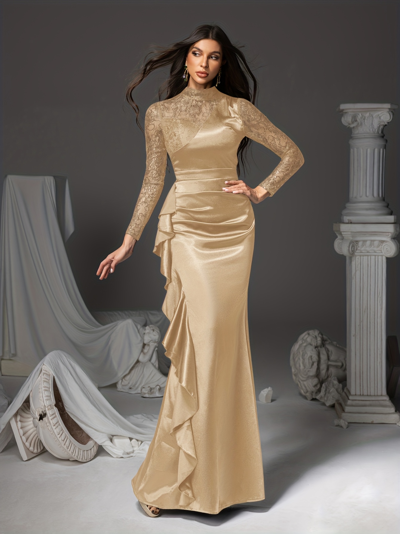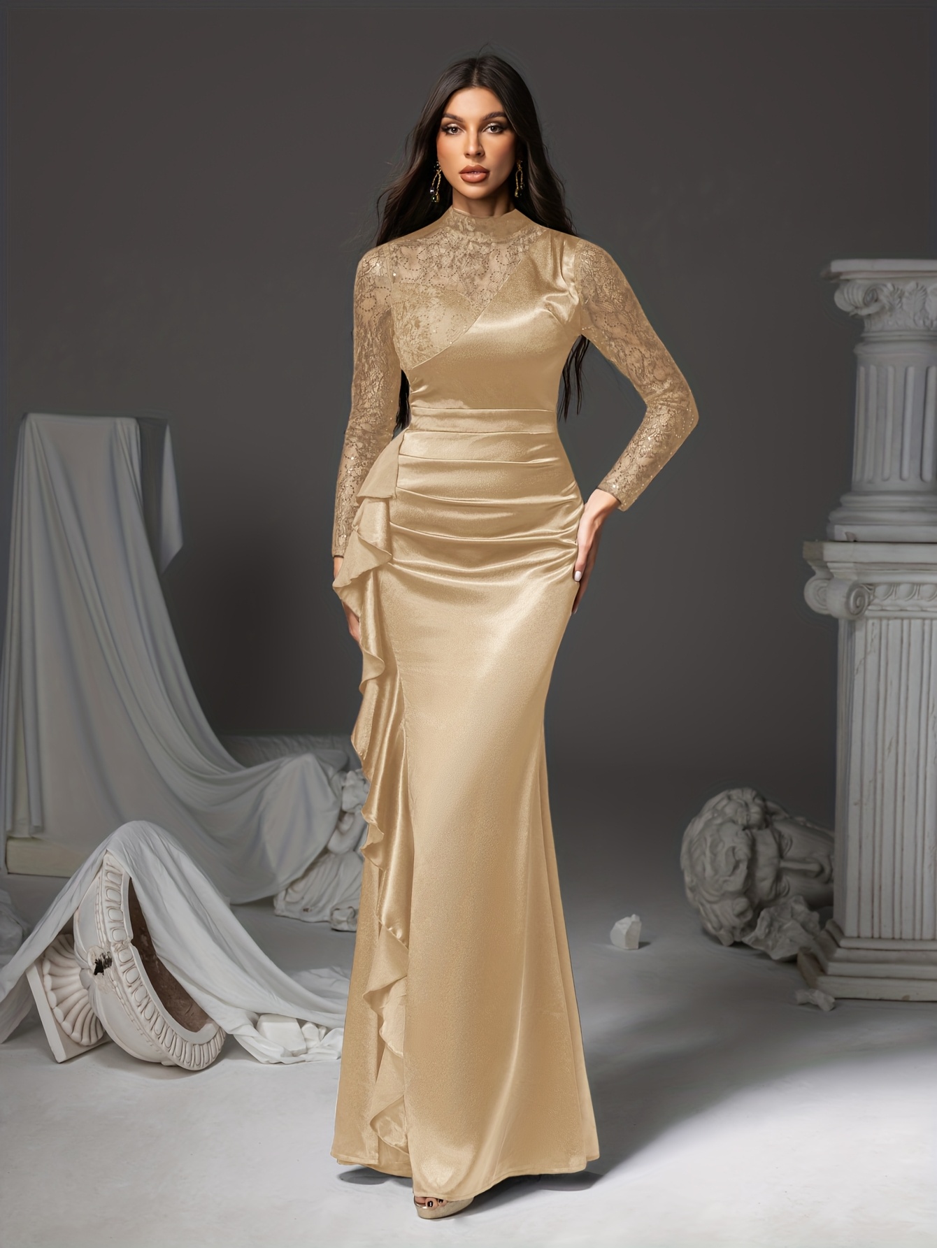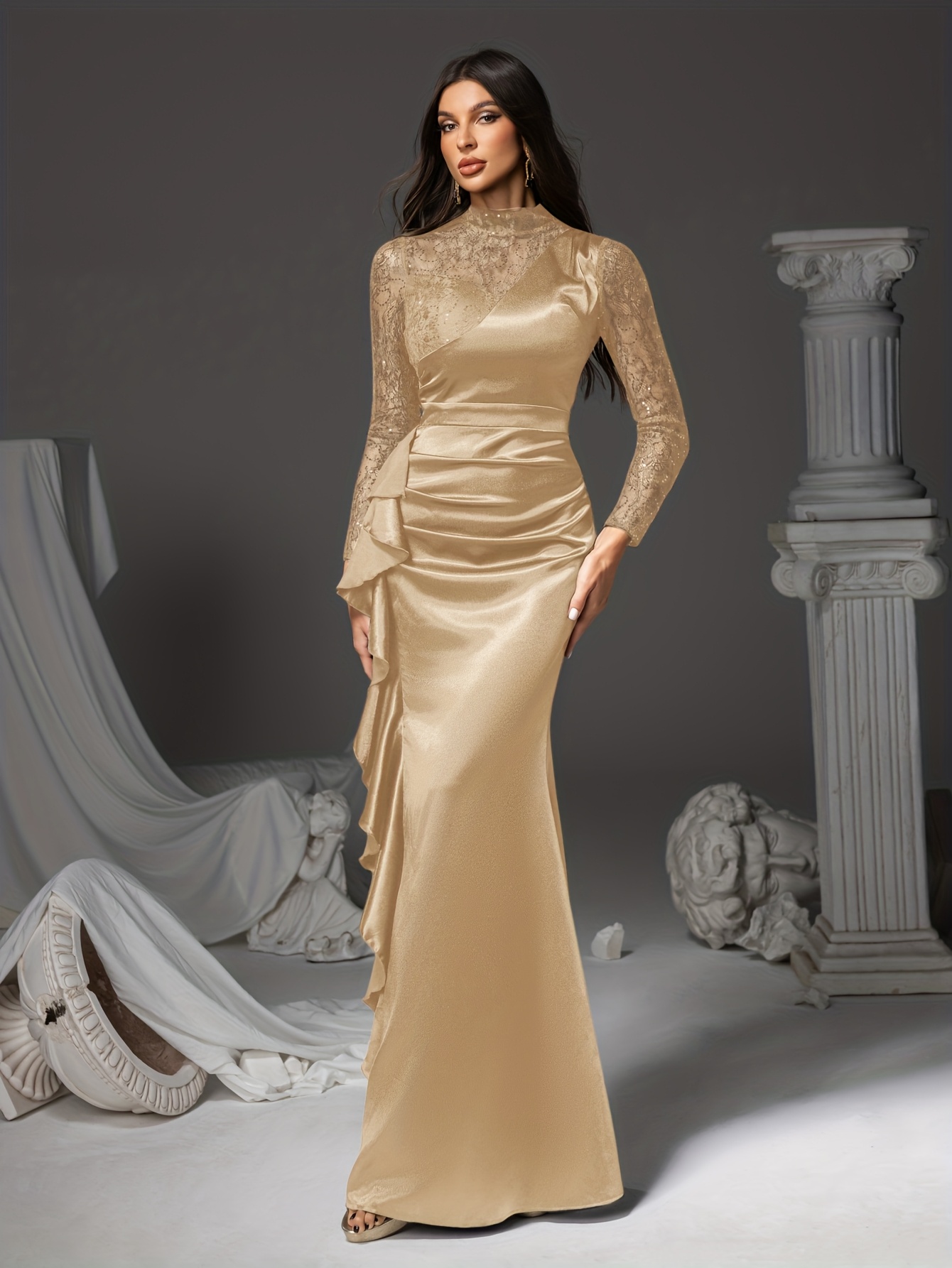Lace-trimmed Long Dress, Irregular Hem Evening Gown, Family Gathering Birthday Party Dress, Elegant and Luxurious yet Simple, Women’s Long Dress, Party Dress, New Style Dress, Women’s Evening Gown, Hostess Performance Dress, Bridesmaid Dress, Prom