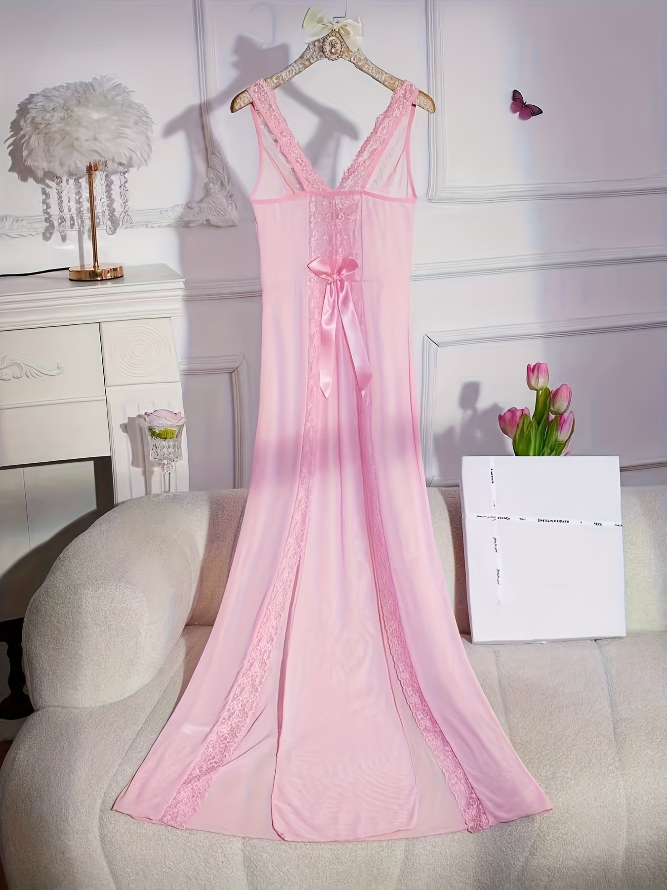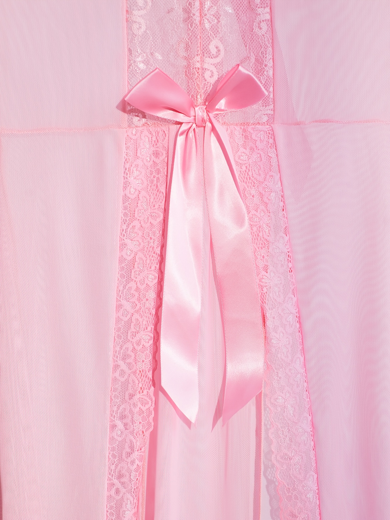Ladies’ Sexy Mesh Patchwork Lace Pajamas, Semi Transparent Lace Trimmed Pajamas, Comfortable Pajamas, Transparent and Free Thongs