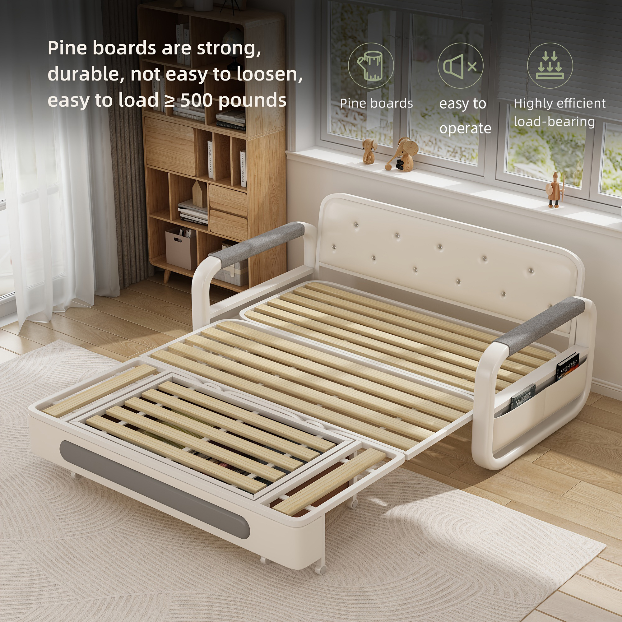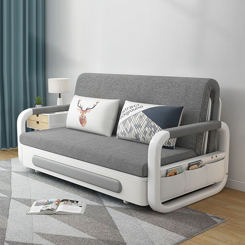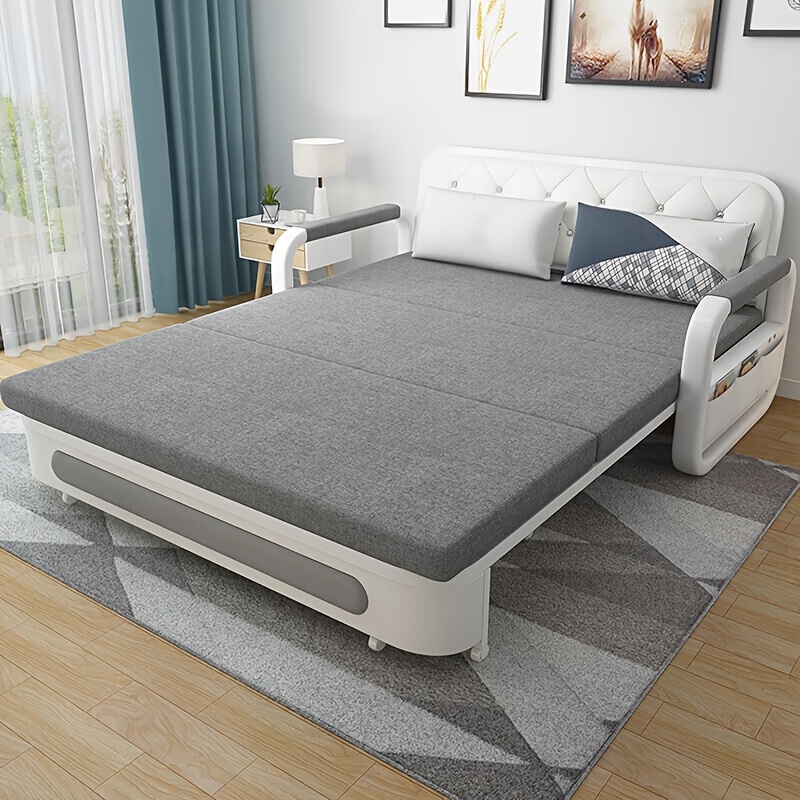 LUCK LIVE Modern Retractable Sofa Bed – 2-in-1 Pull-Out Sectional with Storage Recliner, Grey Linen Fabric, Hardwood Frame, Space-Saving Design for Small Apartments & Guest Rooms, Sectional Sofa Bed, Compact Guest Room, Sleek Minimalist Style, Durable Metal Frame