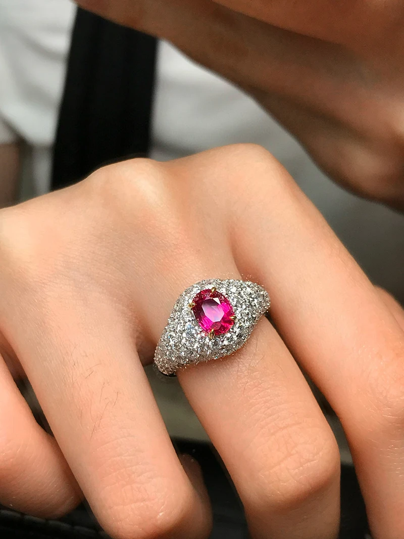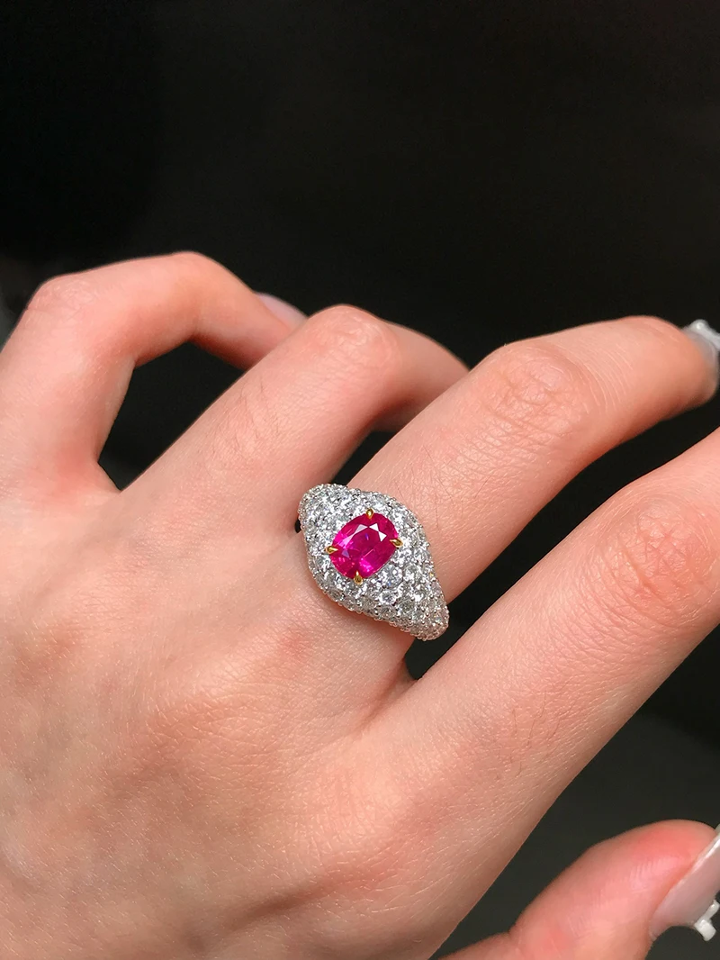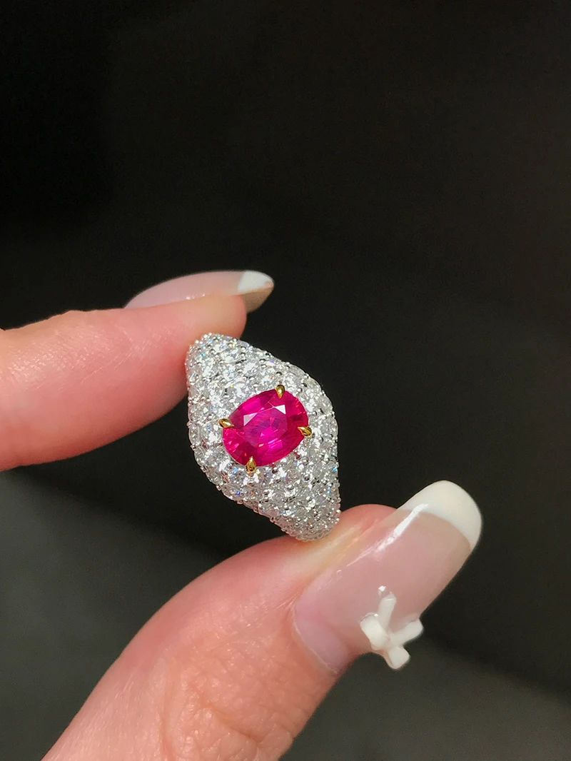 LUOWEND 100% 18K White Gold Rings Elegant Romantic Style Luxury Diamond Natural Ruby Gemstone Ring for Women Senior Banquet
