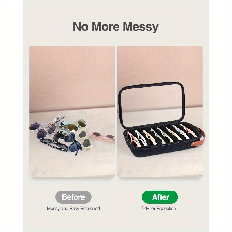 “There is a profound sense of relief that comes with finally having all your glasses in one place. No more digging through drawers or opening five different cases just to find your polarized lenses for the beach. When you pack this for a trip, it feels like a professional piece of gear; it’s slim enough to slide into a carry-on but feels sturdy enough to protect your expensive frames from being crushed. The adjustable slots are a game-changer—you can fit your chunky ‘statement’ shades and your slim readers side-by-side perfectly. Opening the case feels like browsing a high-end boutique; seeing your collection neatly lined up through the clear lid gives you a satisfying feeling of control and organization before you even head out the door.”