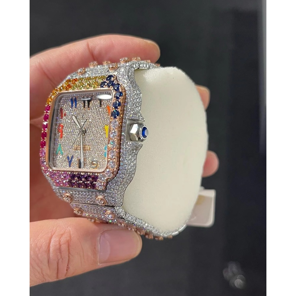 Luxurious Hip-hop Case and Fashionable Strap with Sparkling Inlay, a Unisex Dial Suitable for Daily Wear, the Best Choice for Christmas, Thanksgiving, Birthday Gifts, and Giving to Boyfriends. Unique and Ingenious Jewelry