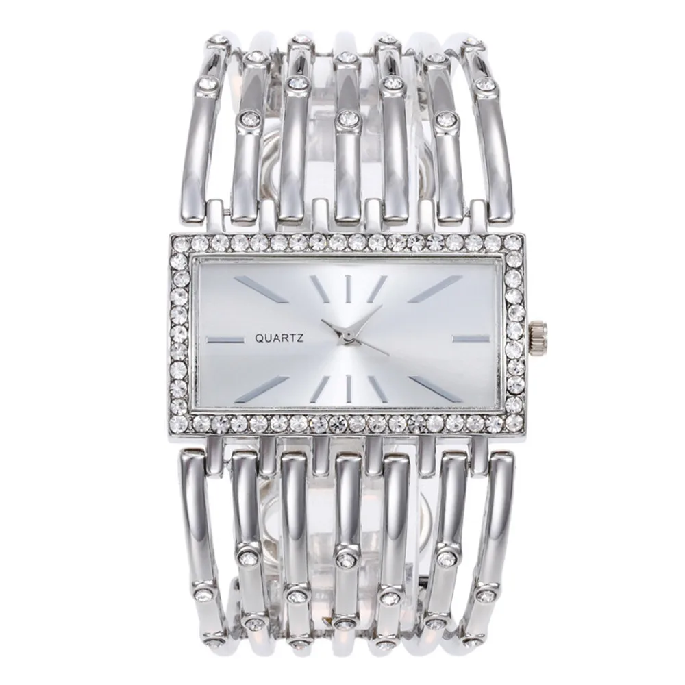 Luxury Qualities Women’s Fashion 2023 Diamond Rectangle Watches Gold Alloy Bracelet Wristwatches Simple Ladies Quartz Clock Gift