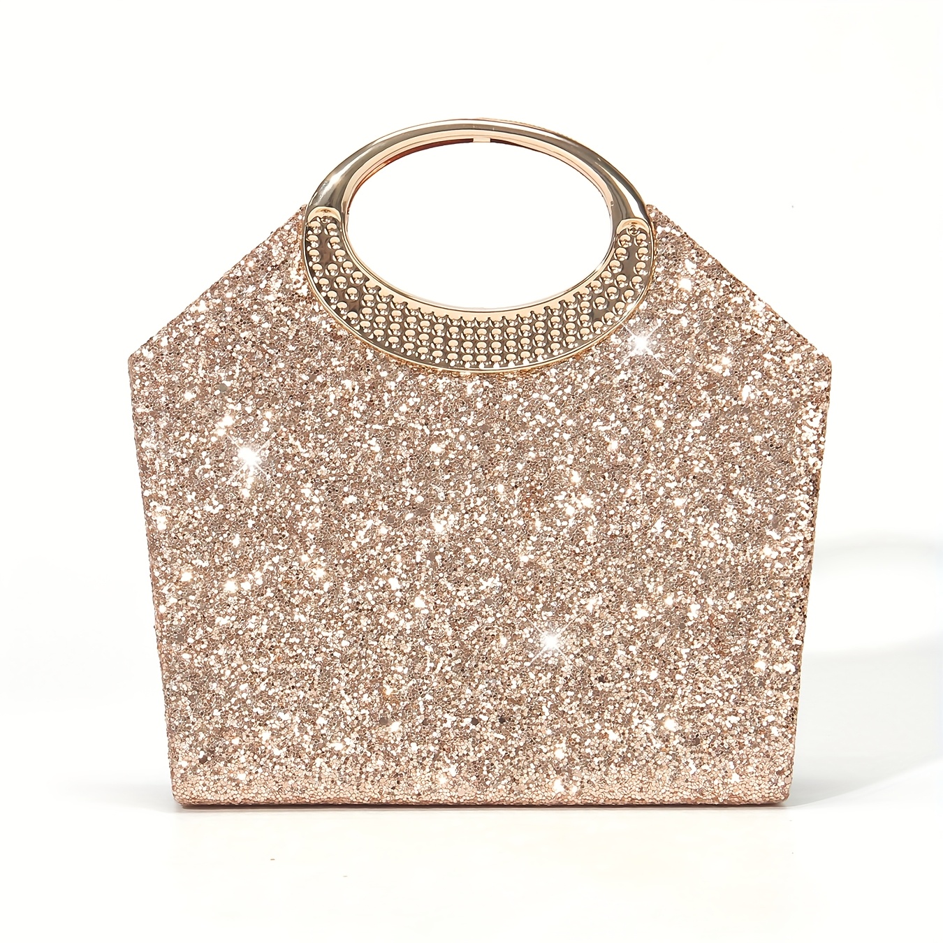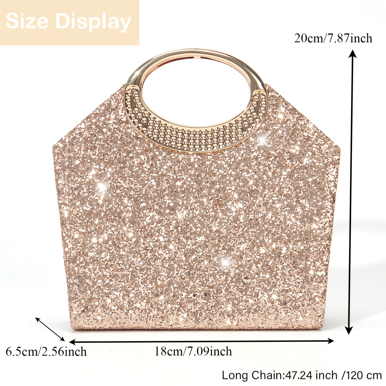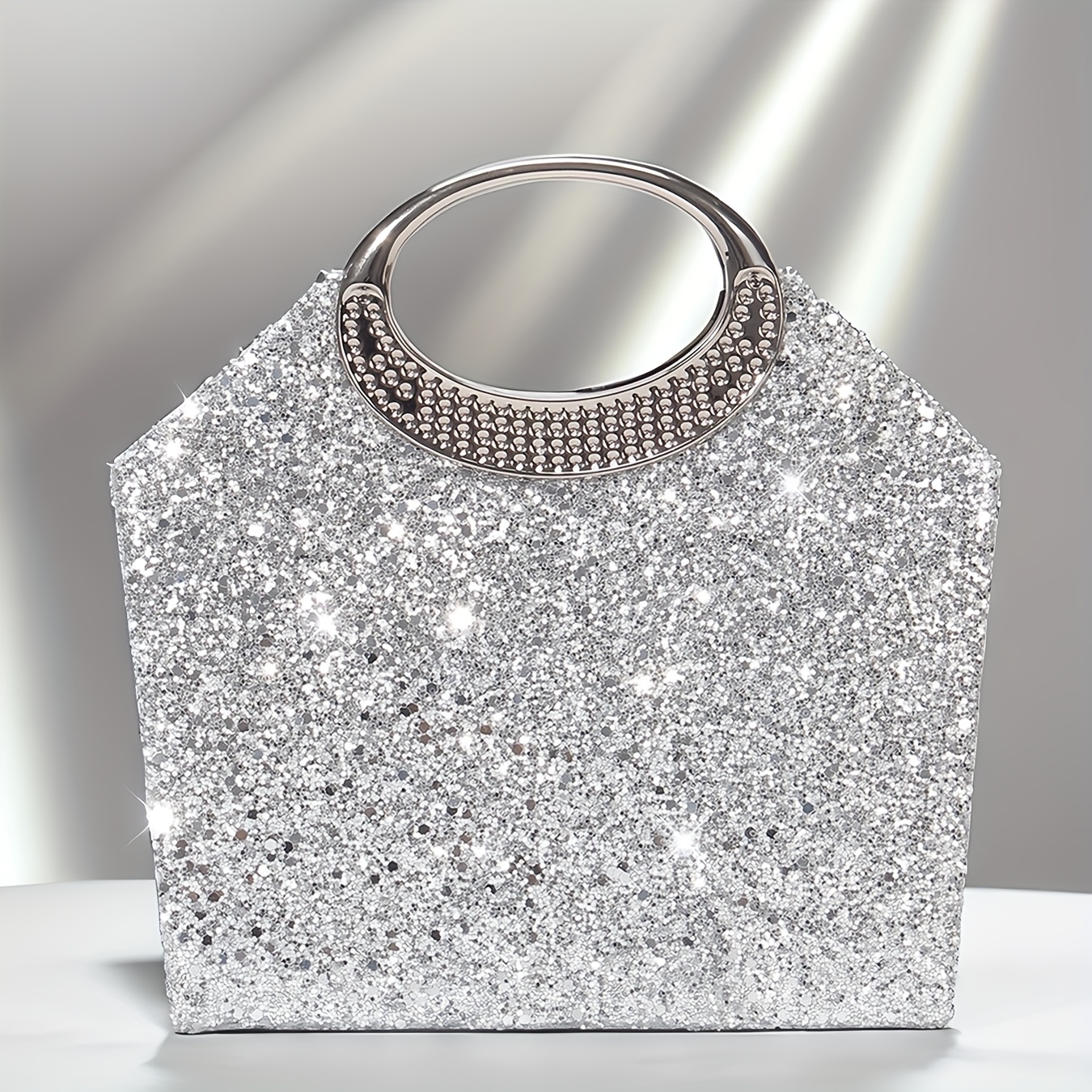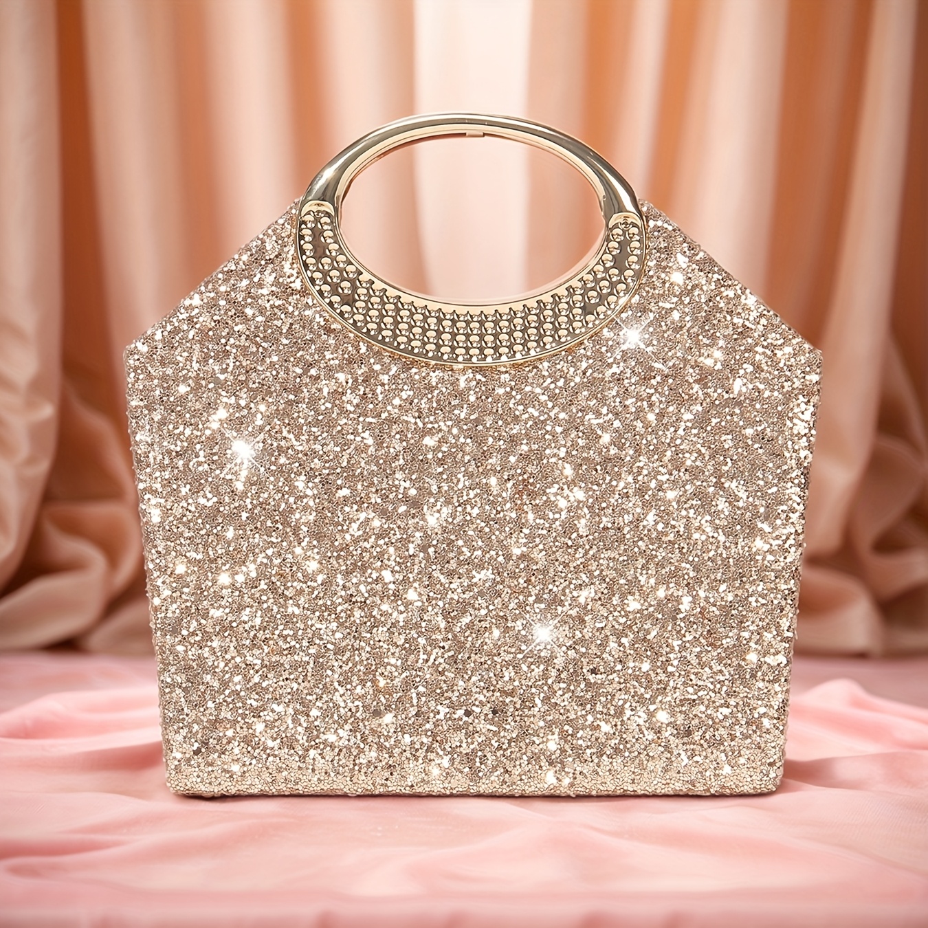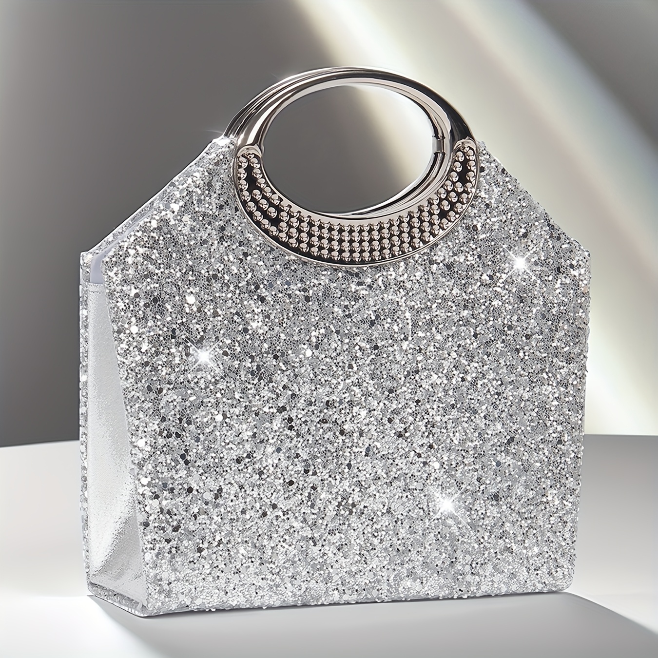 [Luxury Sequins Evening Bag] Luxury Sequins Ladies Evening Bag | Round Handle Tote Clutch with Shoulder Chain, Magnetic Closure | Champagne & Silvery for Party, Wedding, Prom, Birthday, Holiday Gift
