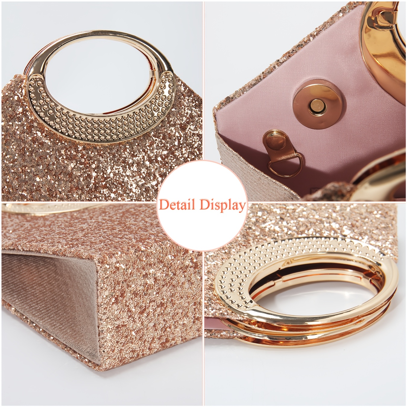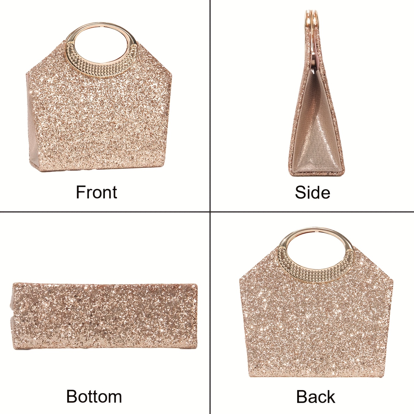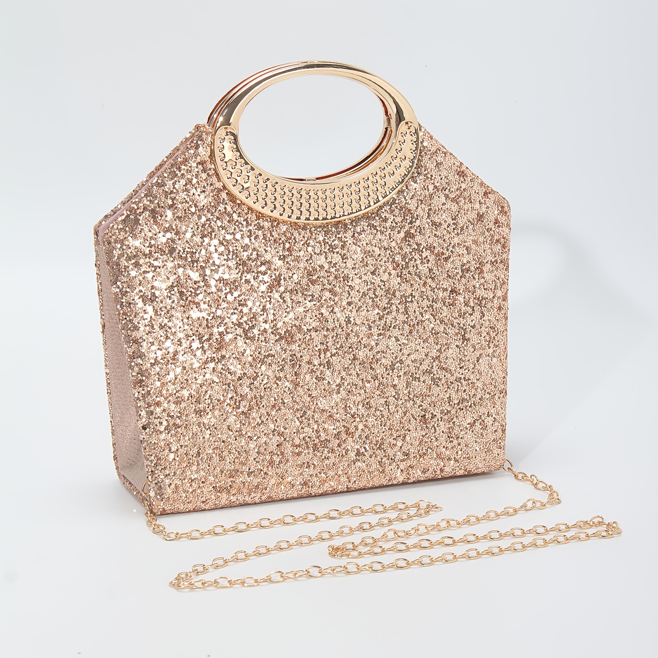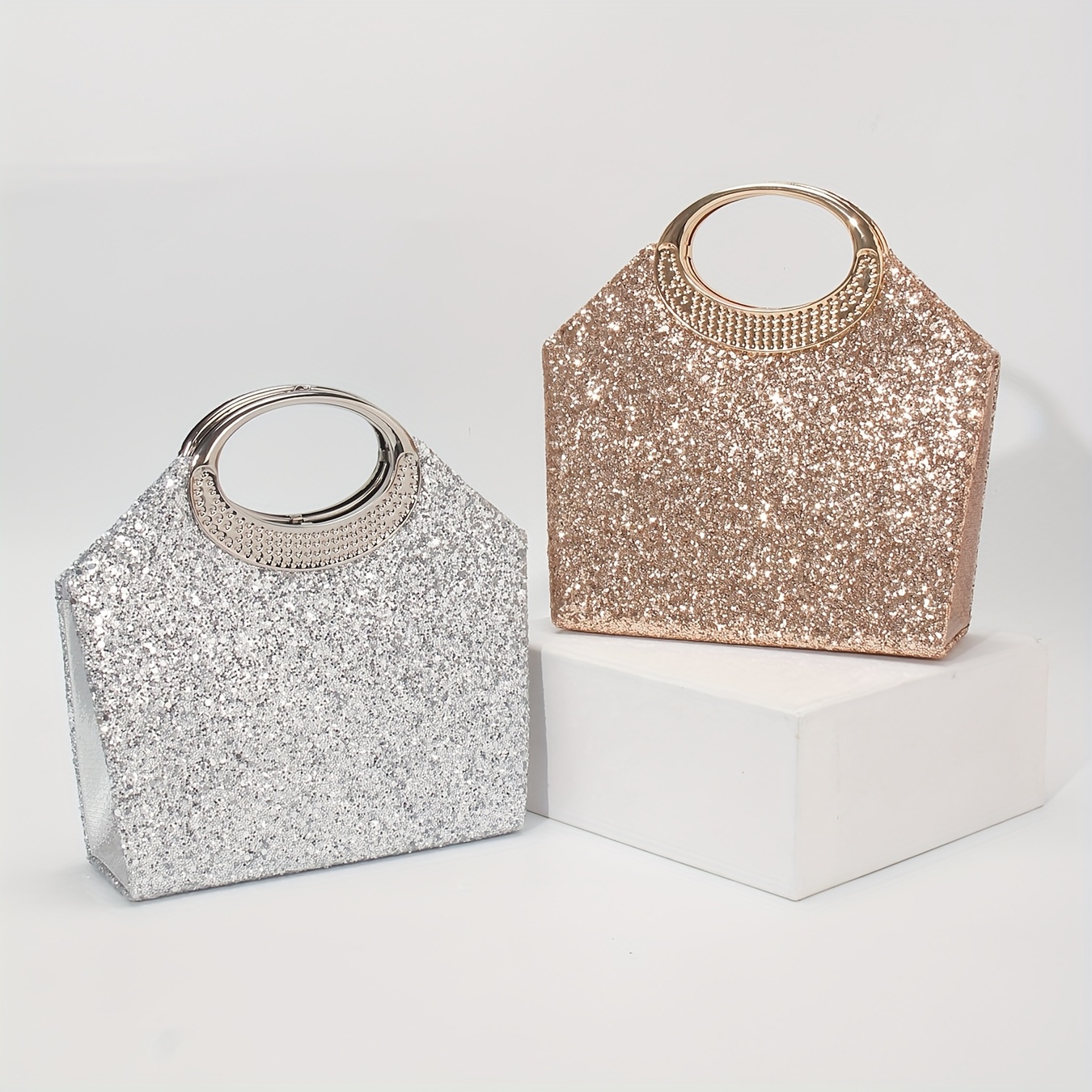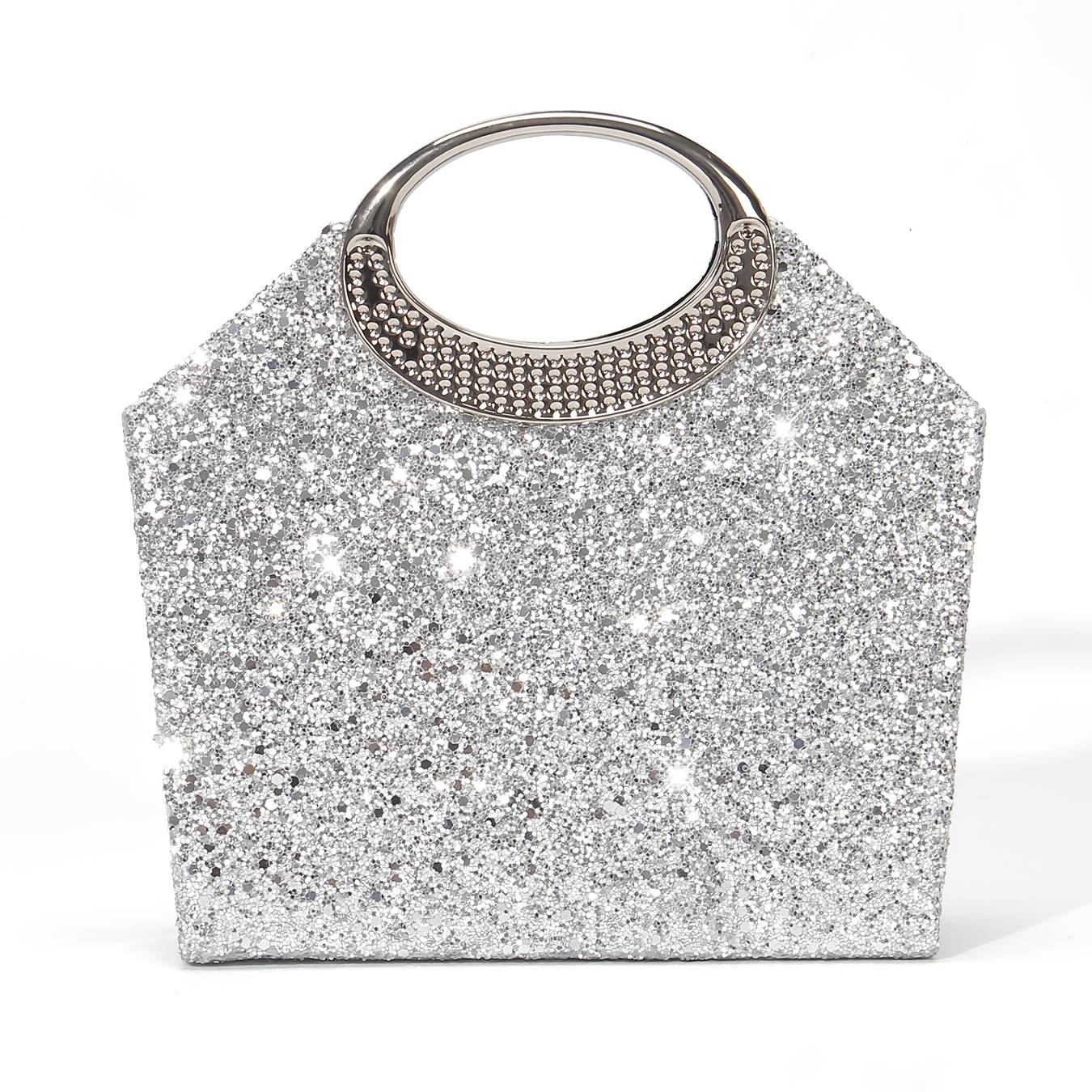 [Luxury Sequins Evening Bag] Luxury Sequins Ladies Evening Bag | Round Handle Tote Clutch with Shoulder Chain, Magnetic Closure | Champagne & Silvery for Party, Wedding, Prom, Birthday, Holiday Gift