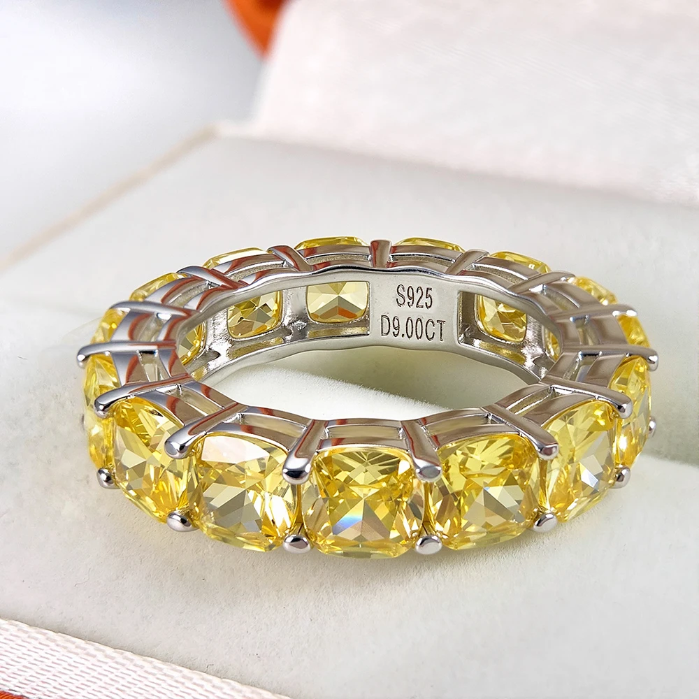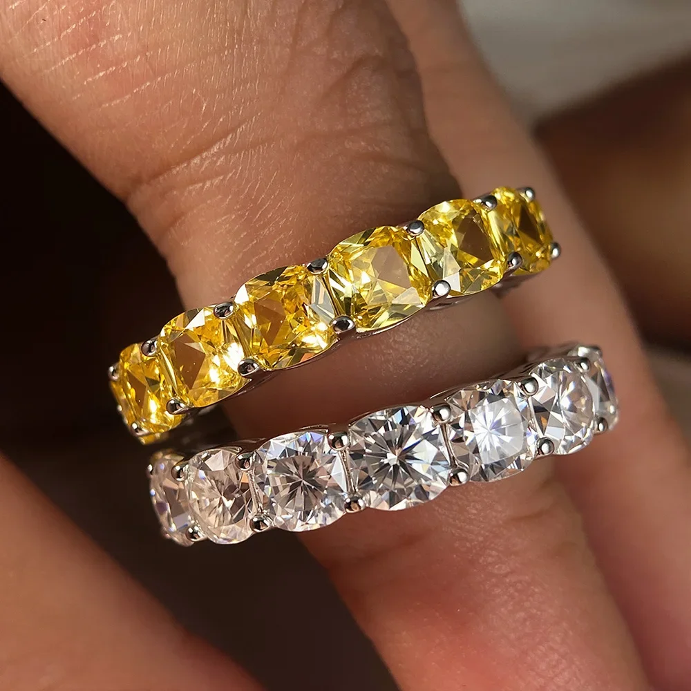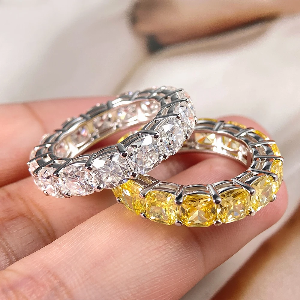 Mebigu 5mm Cushion Cut Full Eternity Moissanite Row Ring Women Man S925 Silver Certified Lab Diamond Party Wedding Band Gift