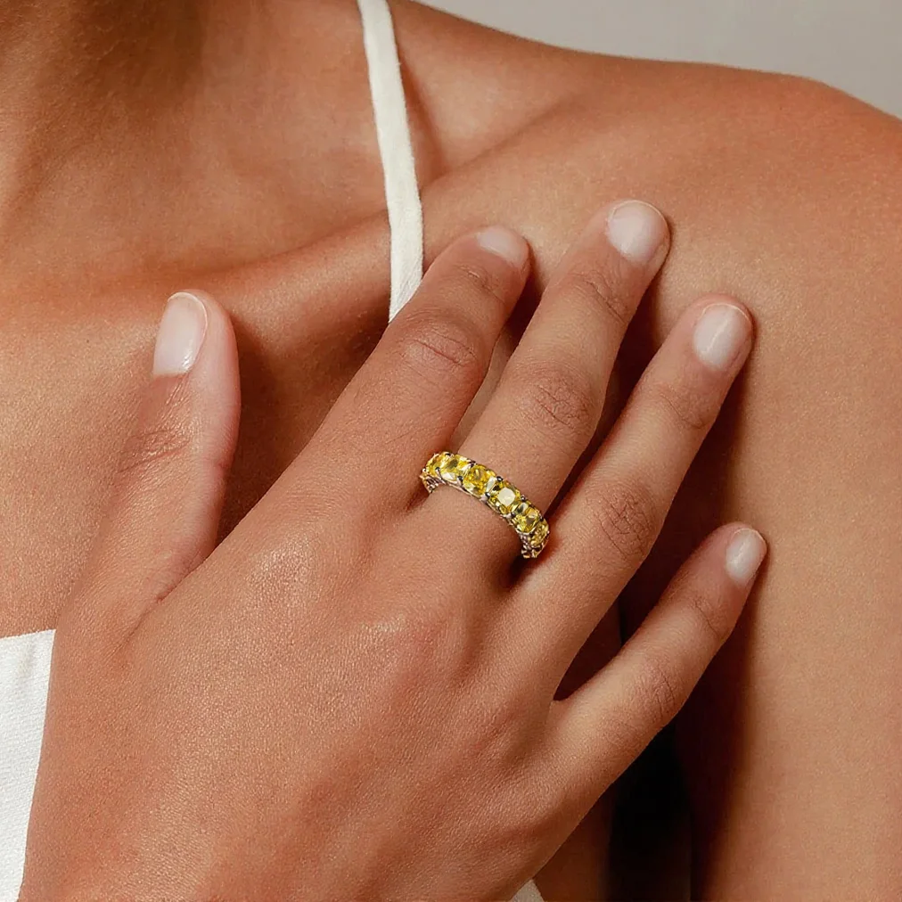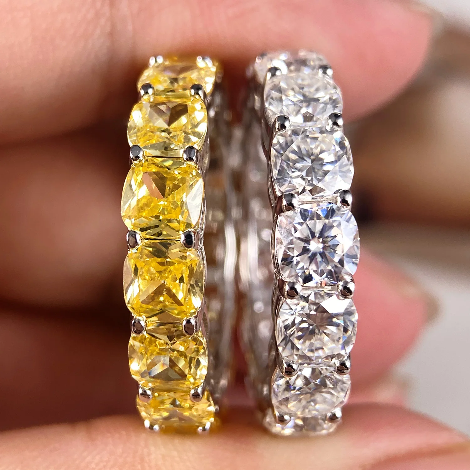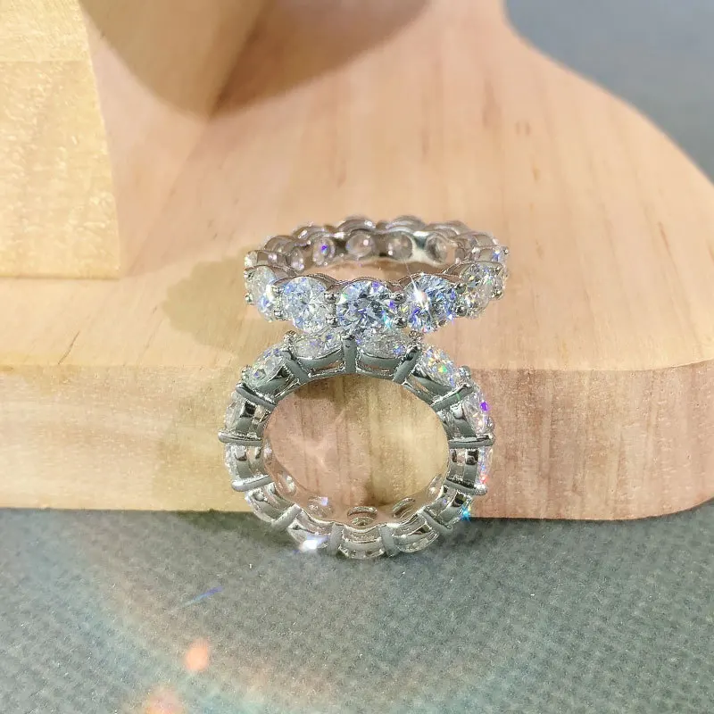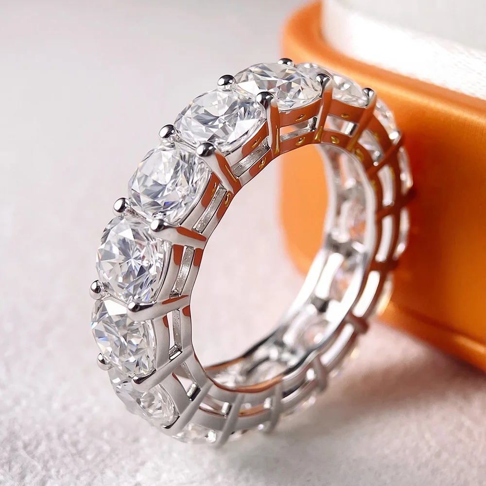 Mebigu 5mm Cushion Cut Full Eternity Moissanite Row Ring Women Man S925 Silver Certified Lab Diamond Party Wedding Band Gift