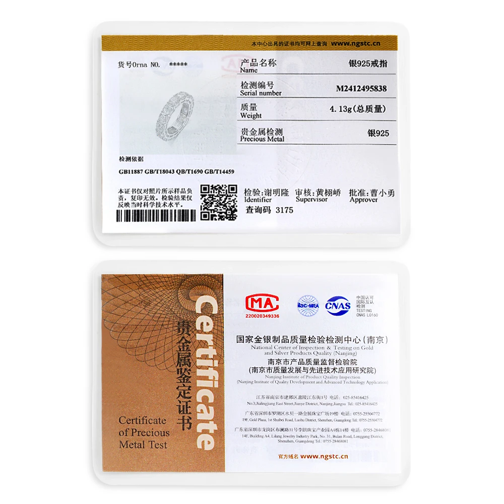 Main Stone: Real Moissanite Diamond (Can Pass Diamond Test / With 1pc Certificate) / 5A Zircon (Can Not Pass Diamond Test / Without Certificate)