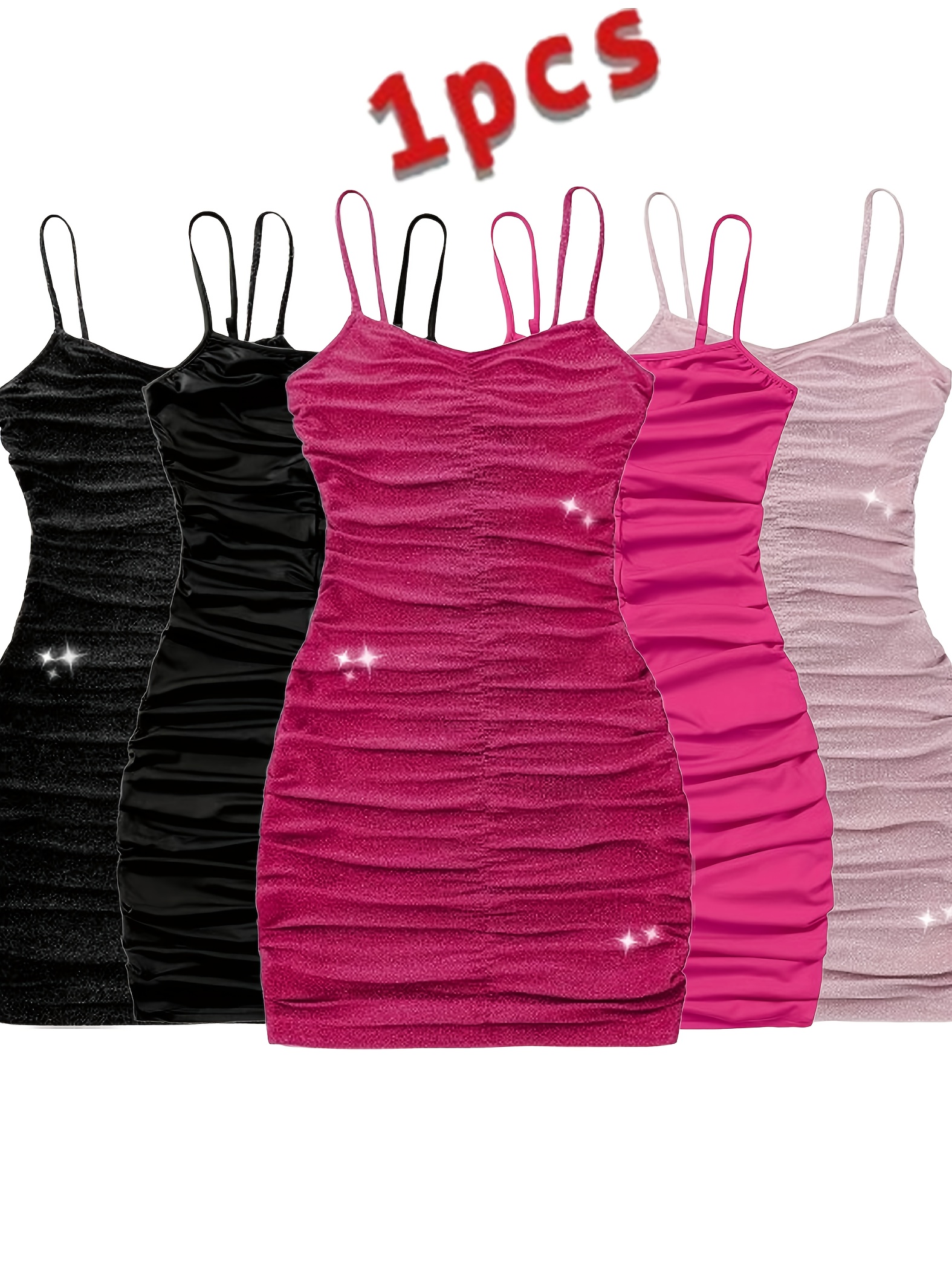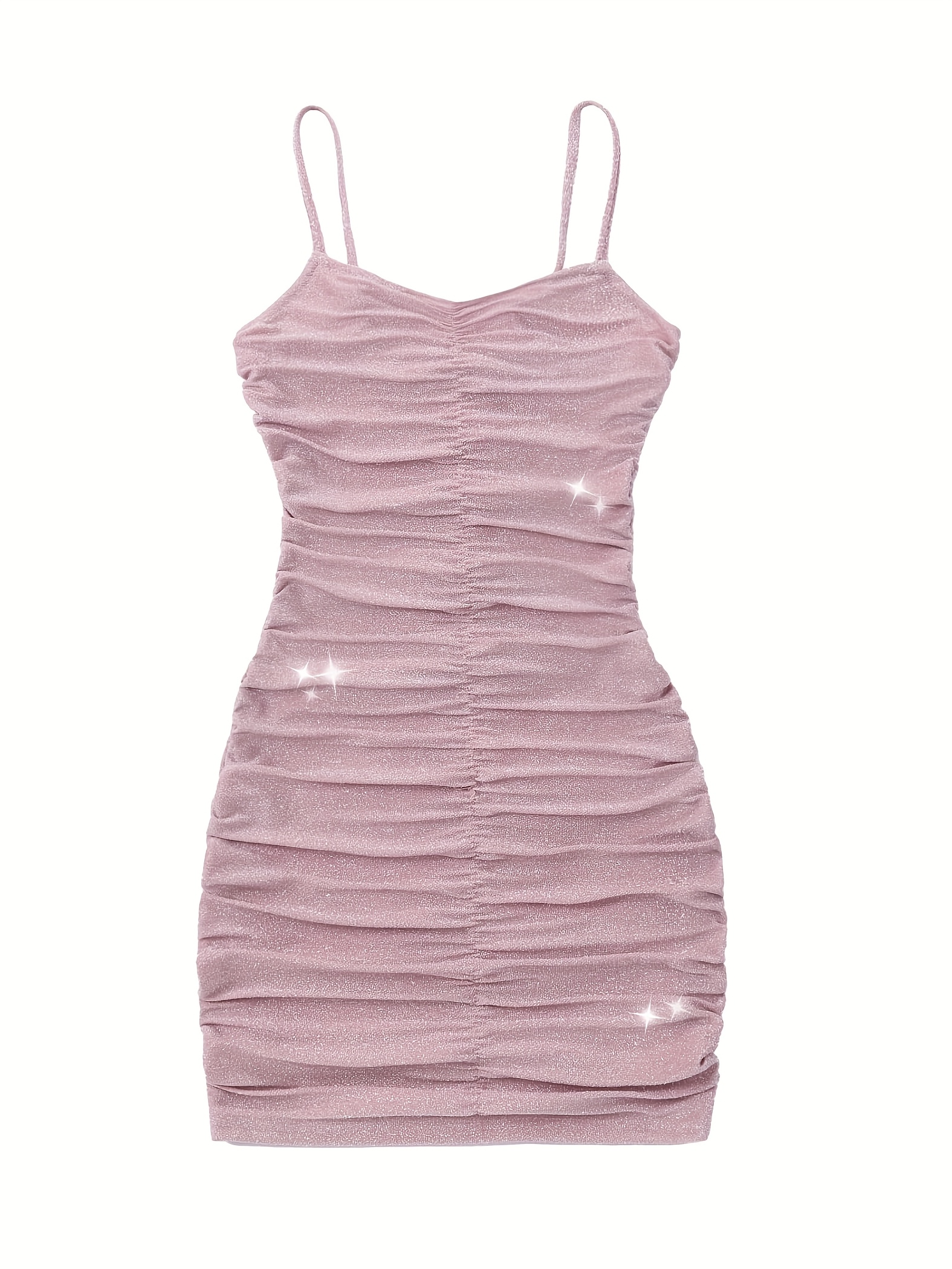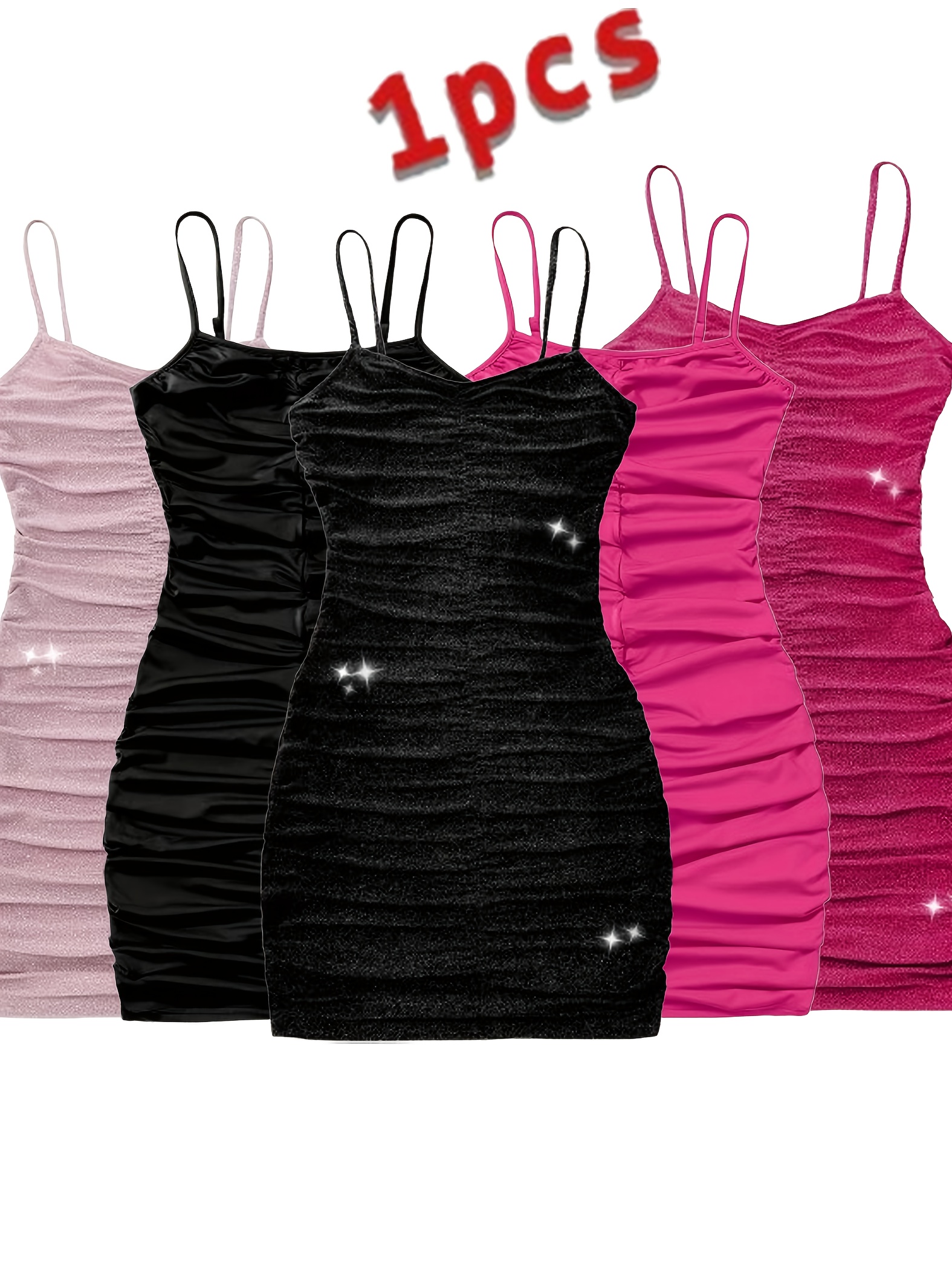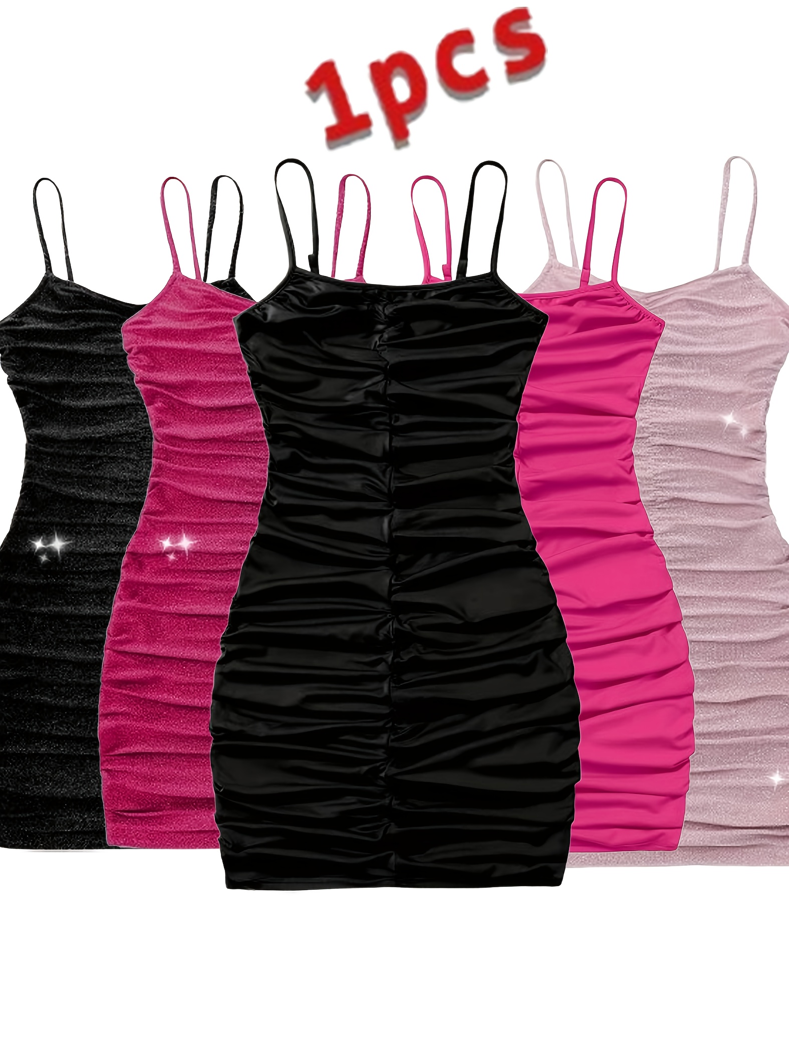 Mebius Girls Spaghetti Strap Bodycon Ruched Dress with V Neck for Summer Parties – Sleeveless Short Fitted Pencil Dress