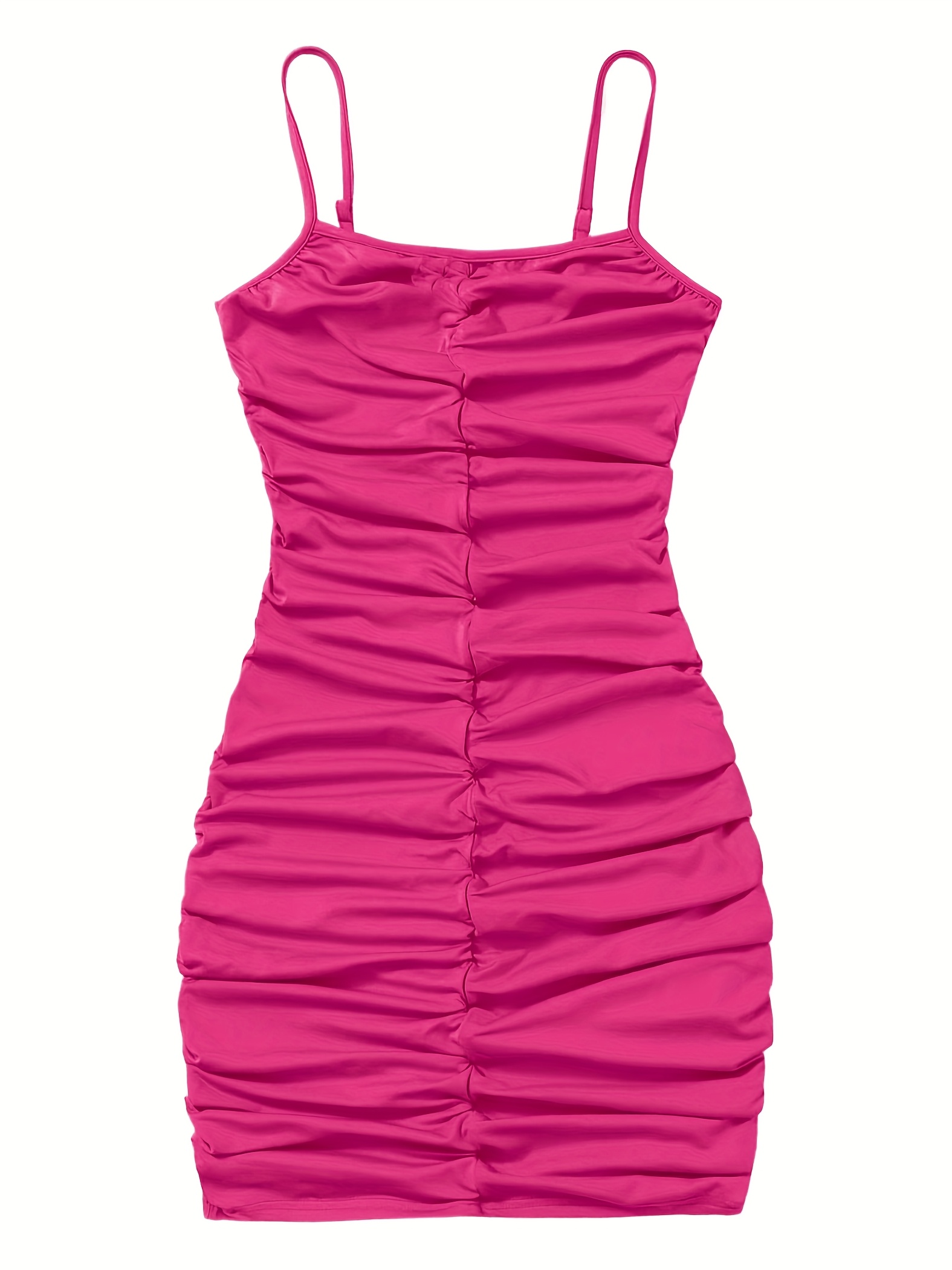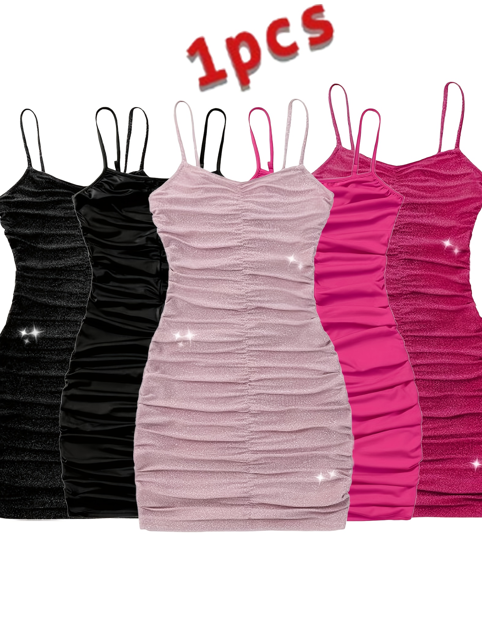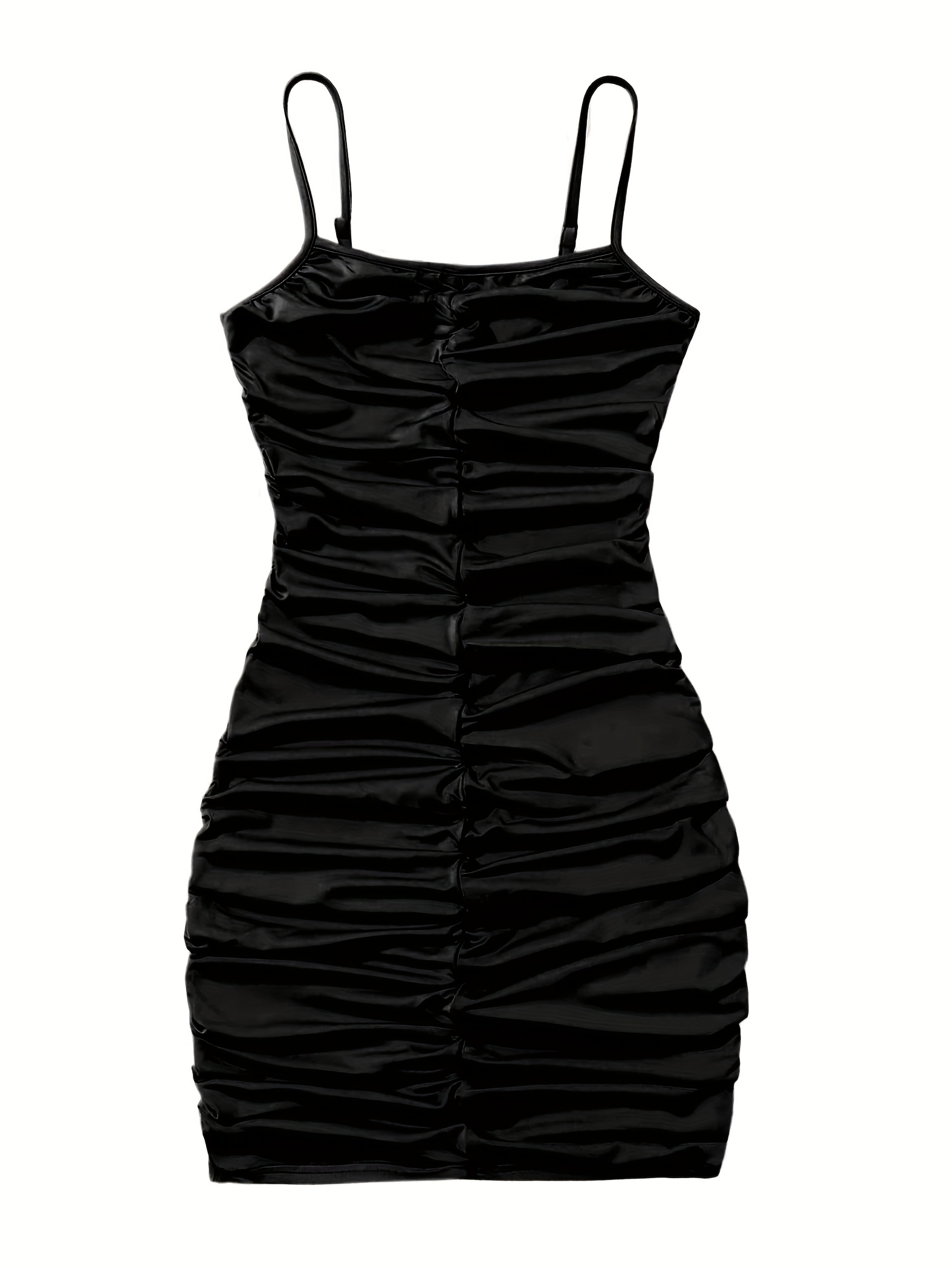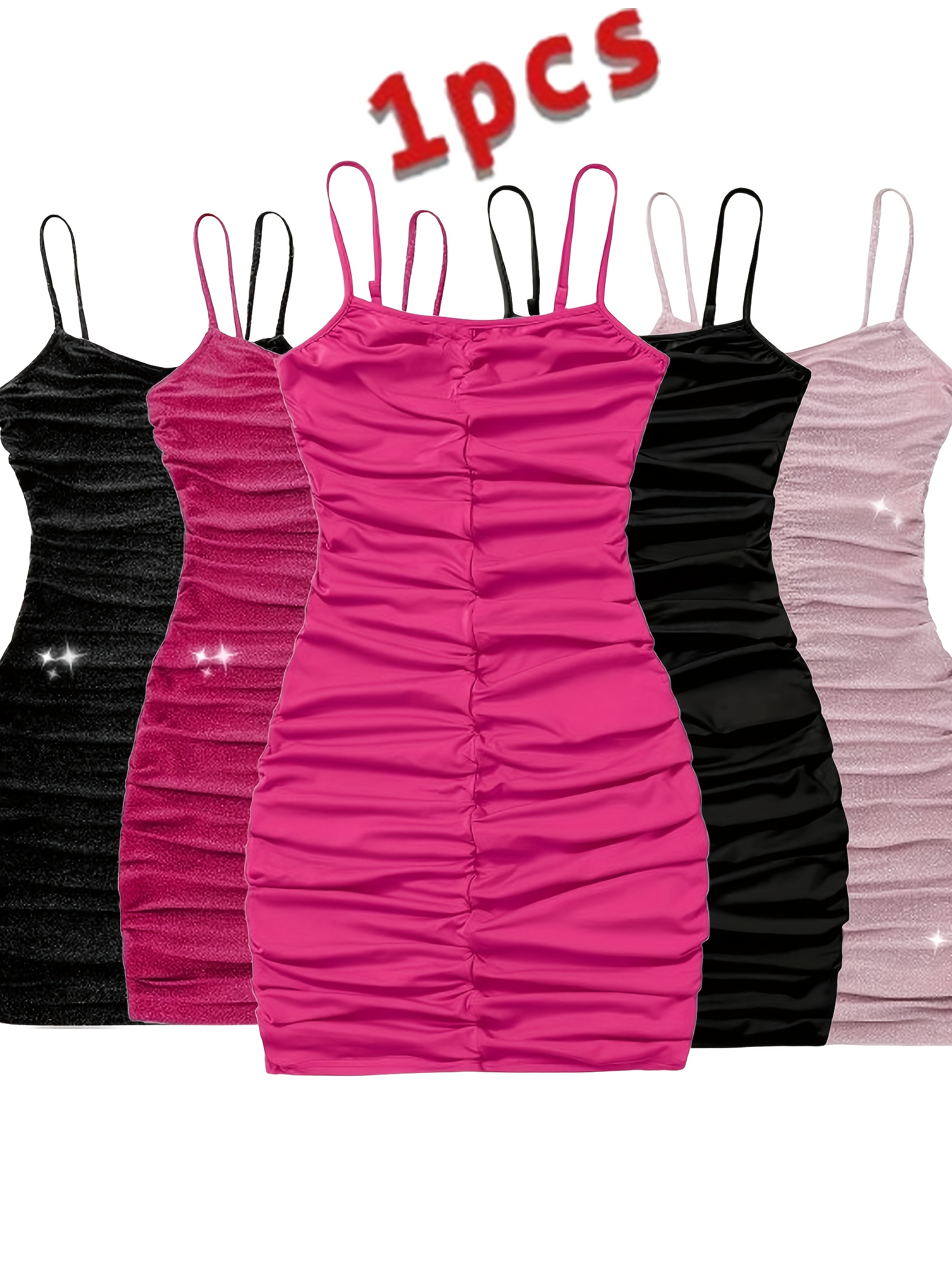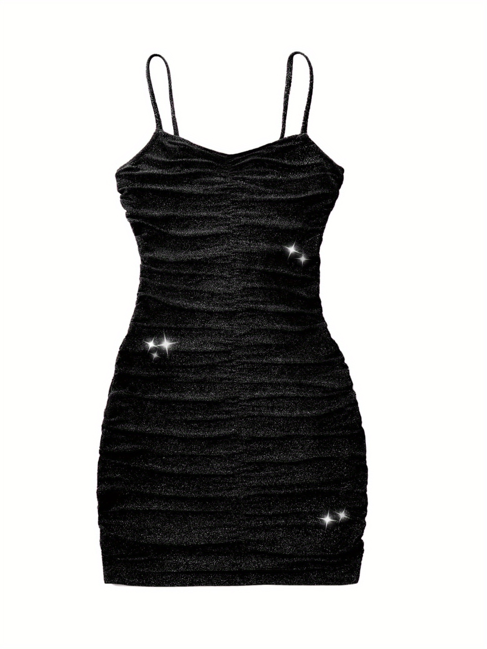 Mebius Girls Spaghetti Strap Bodycon Ruched Dress with V Neck for Summer Parties – Sleeveless Short Fitted Pencil Dress