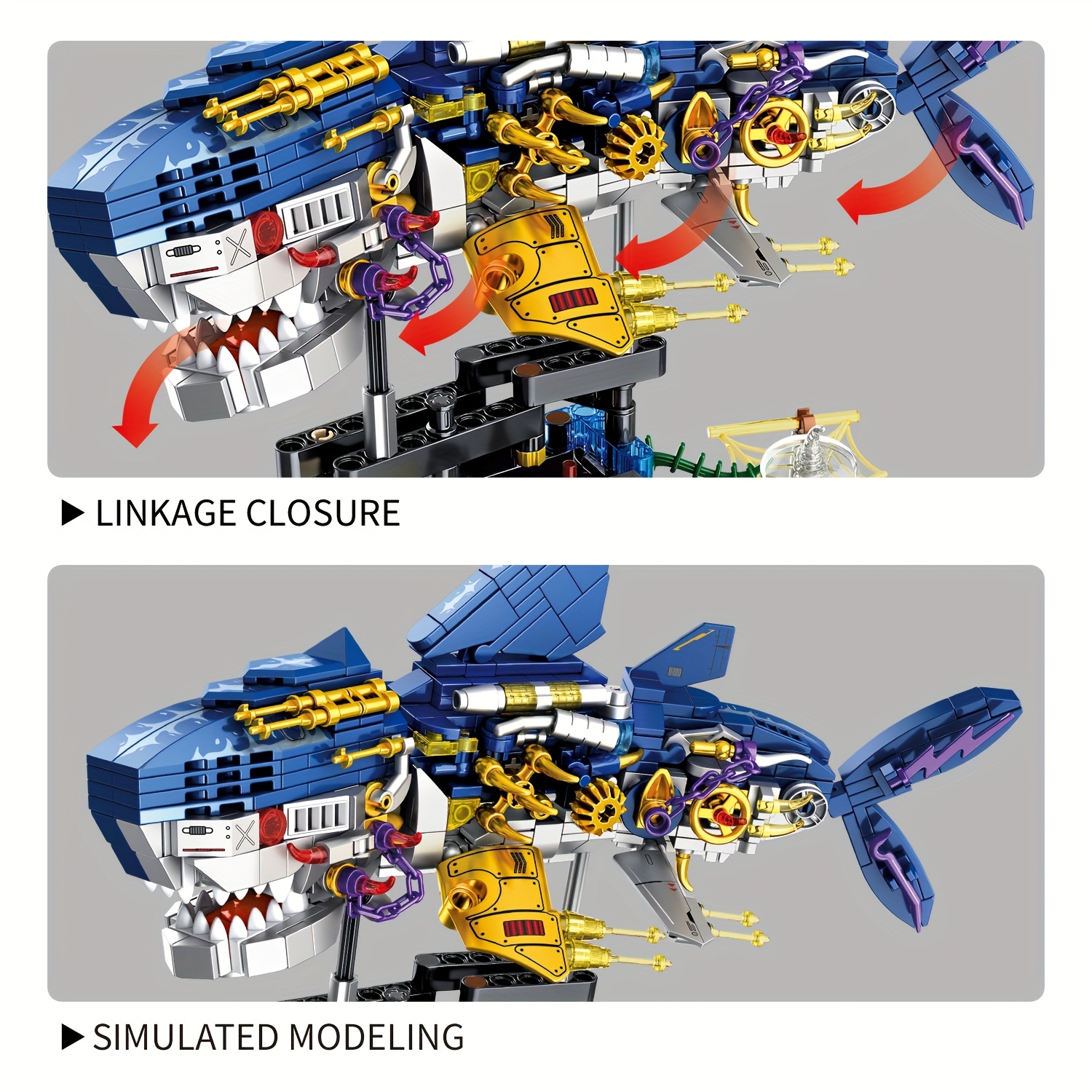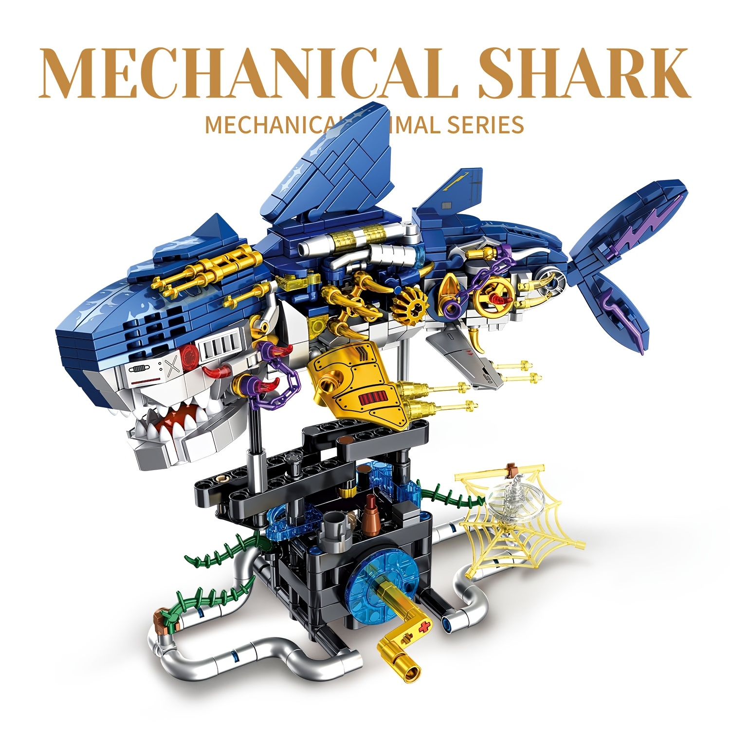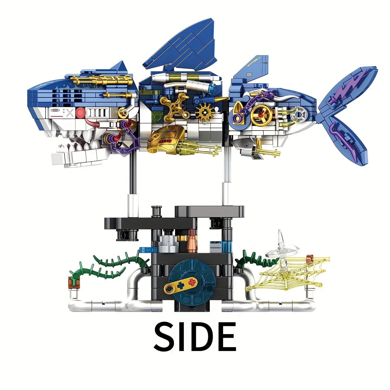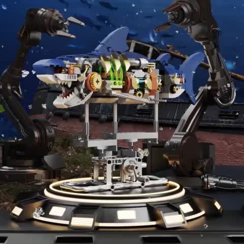 Mechanical Shark Building Blocks with Gears & Moving Parts – STEM Educational Underwater World Construction Toy, Vibrant Mixed Colors, Creative Birthday Christmas Halloween Gift for Kids, Interactive Play, Dynamic Design, Sturdy Assembly, Young Engineers