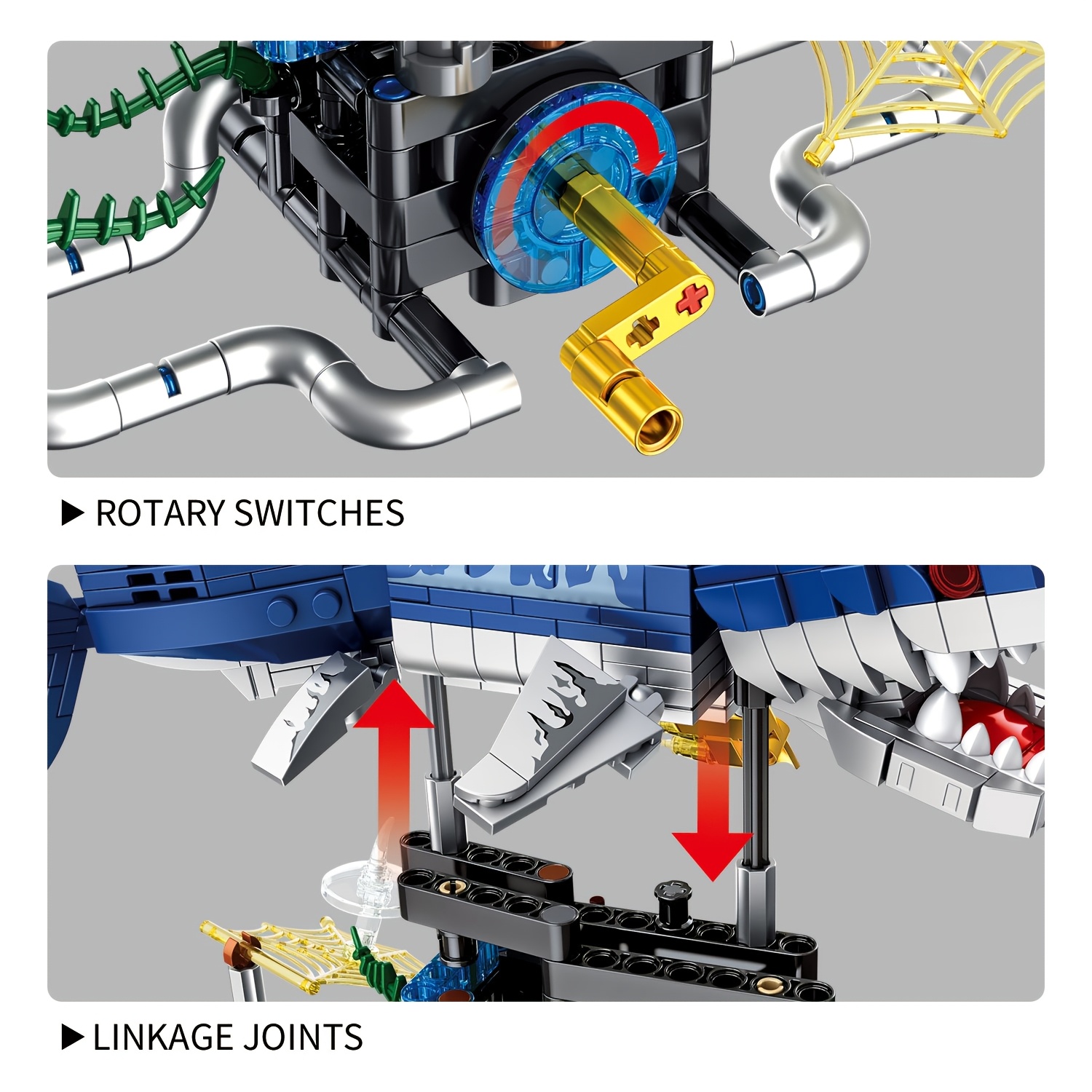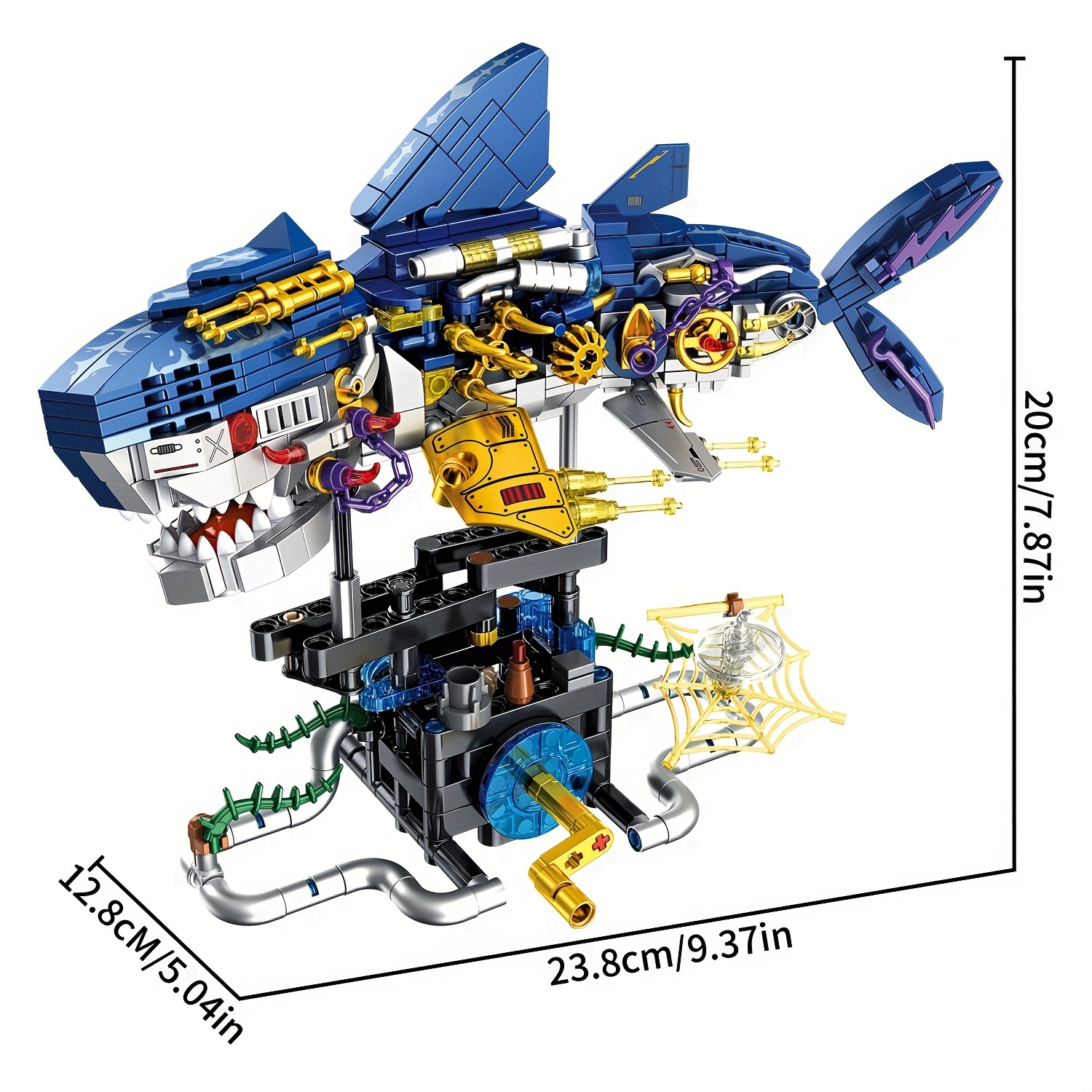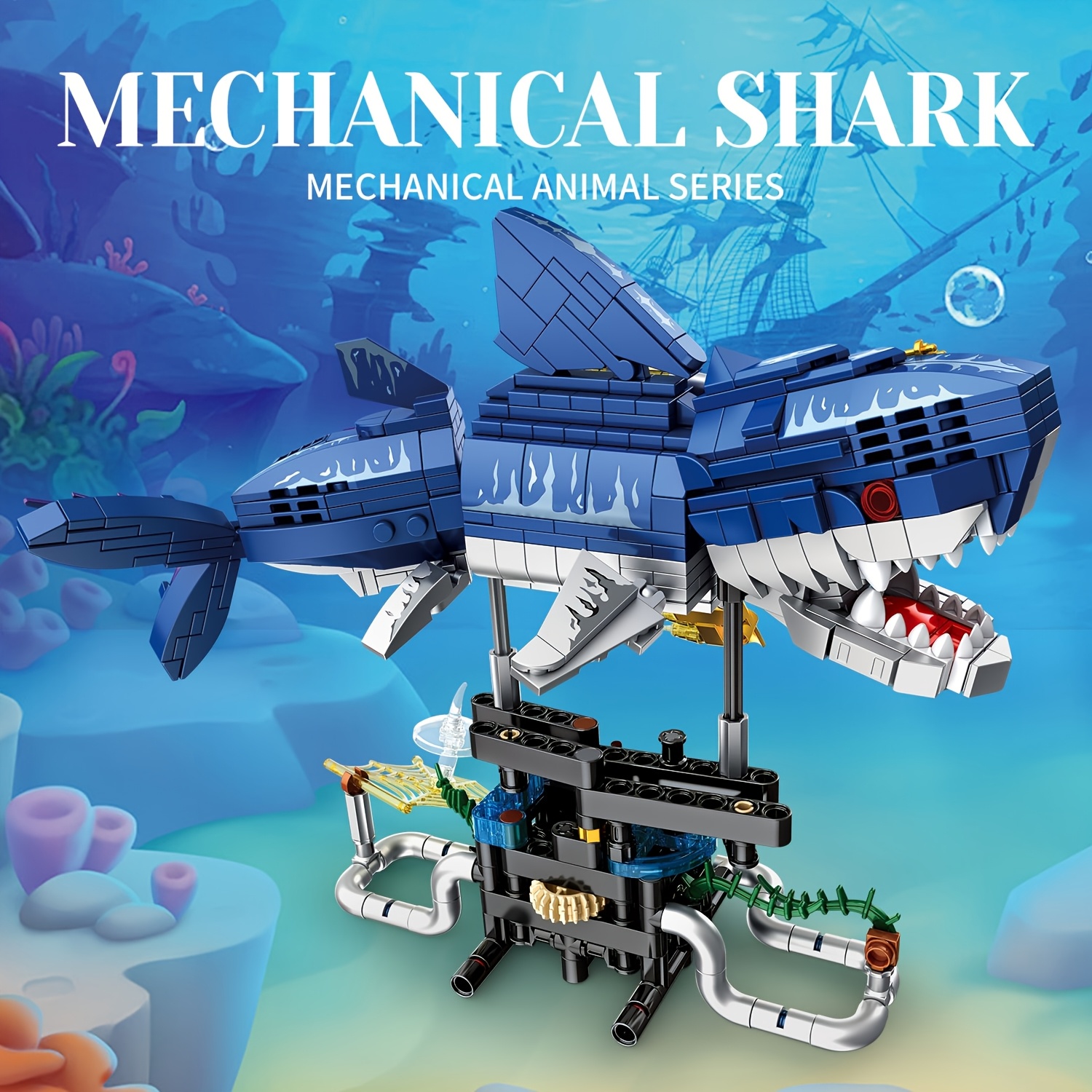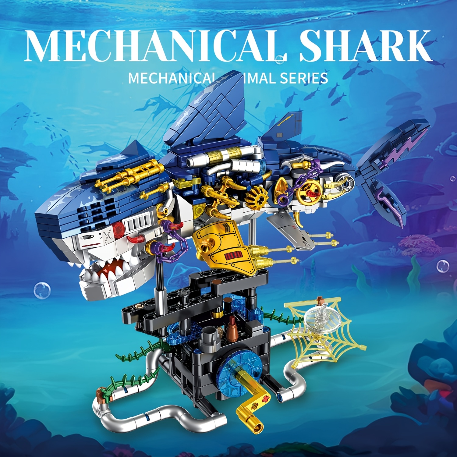 Mechanical Shark Building Blocks with Gears & Moving Parts – STEM Educational Underwater World Construction Toy, Vibrant Mixed Colors, Creative Birthday Christmas Halloween Gift for Kids, Interactive Play, Dynamic Design, Sturdy Assembly, Young Engineers