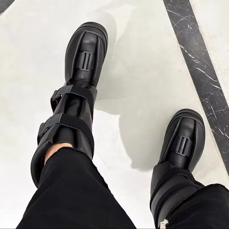 Customized Qvah Owens men Casual Leather Shoes Luxury Trainers Men Sneakers High-TOP Hip Hop Autumn Flats Black Boots