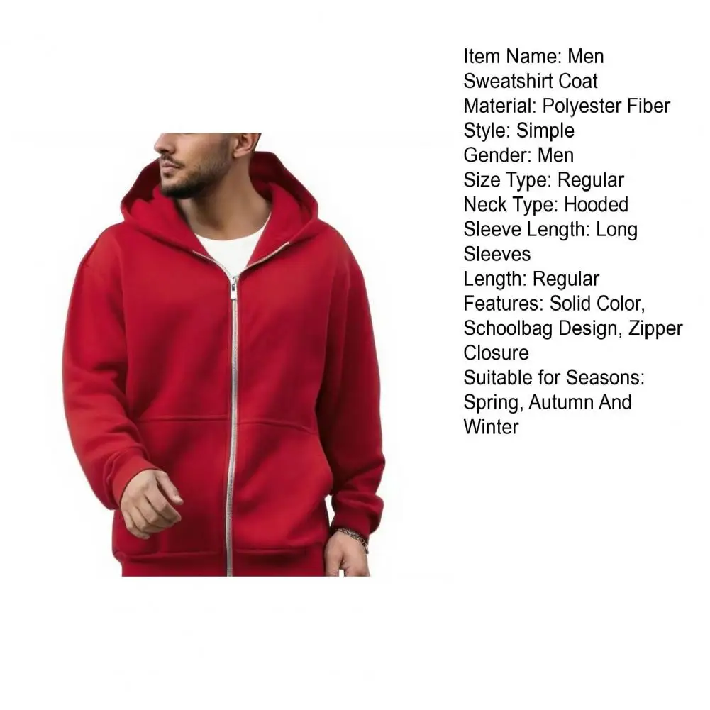 Men Sweatshirt Coat Hooded Long Sleeve Zipper Closure Hoodie Coat with Schoolbag Design Solid Color Loose Fit Outerwear