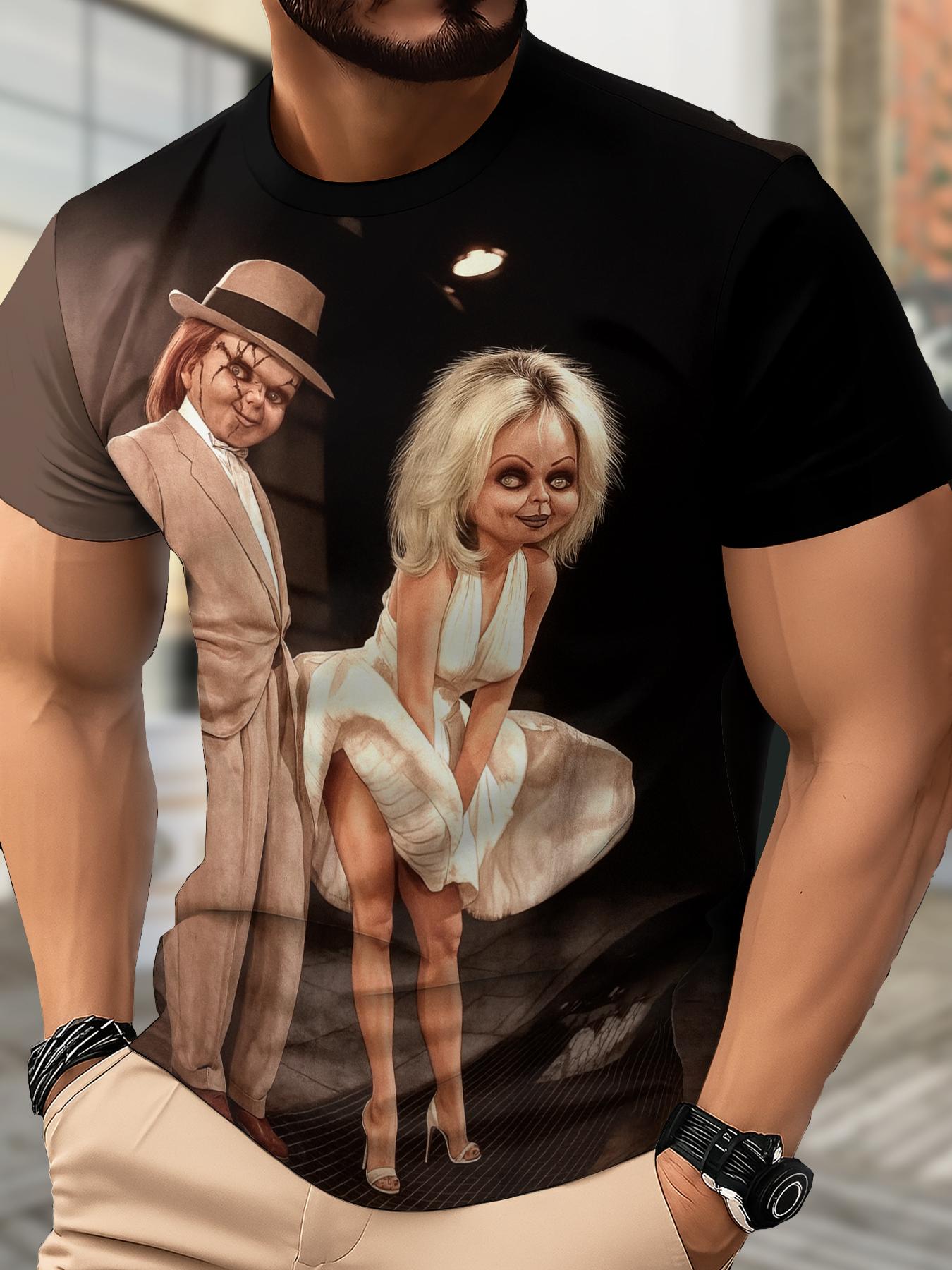 Men’s -3D printed pattern round neck short sleeved shirt, trendy pattern, comfortable and breathable for sports, a must-have for creative festivals, an ideal choice for casual outings