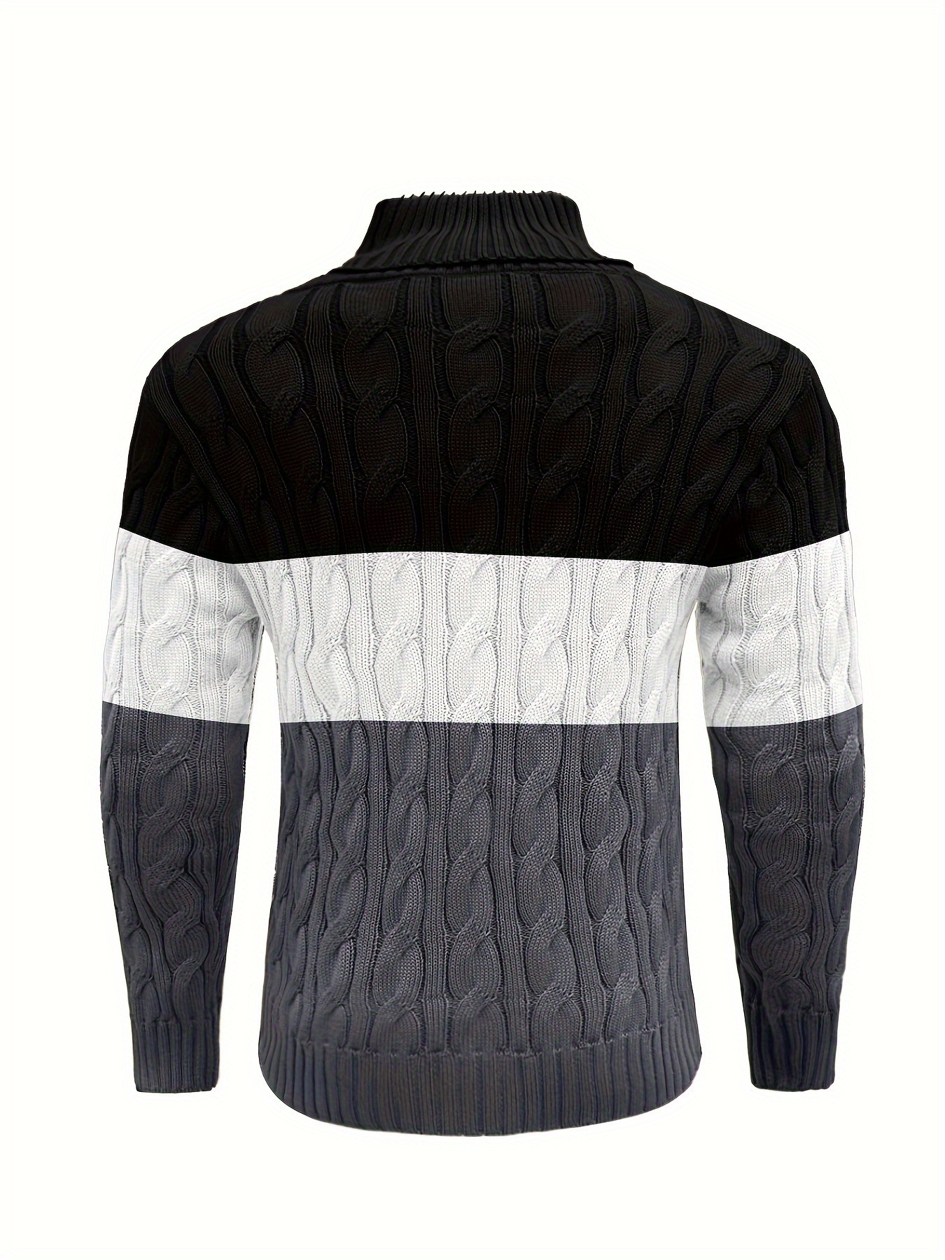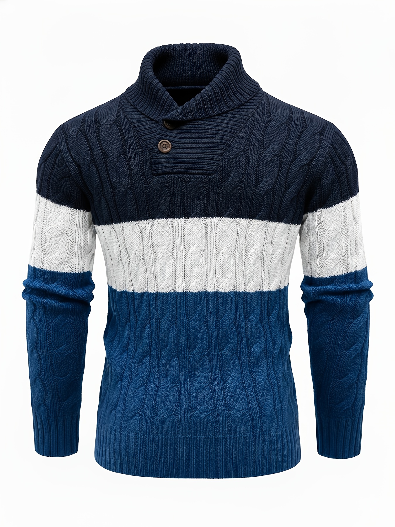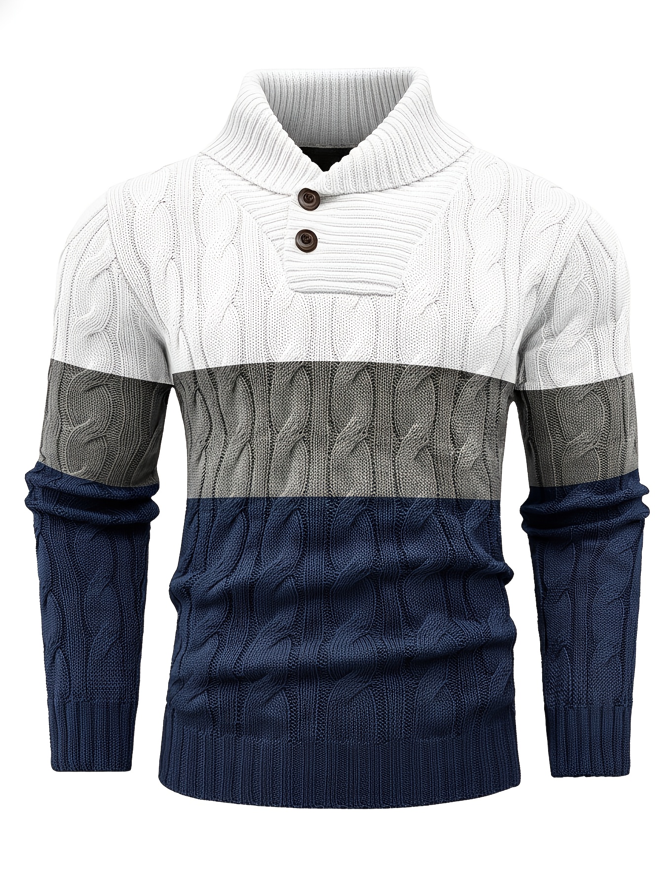 Men’s Business Contrast Color Sweater, Fashion Trendy Patchwork Large Lapel Pullover with Versatile Button Design