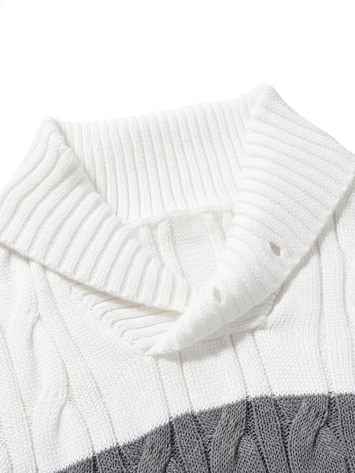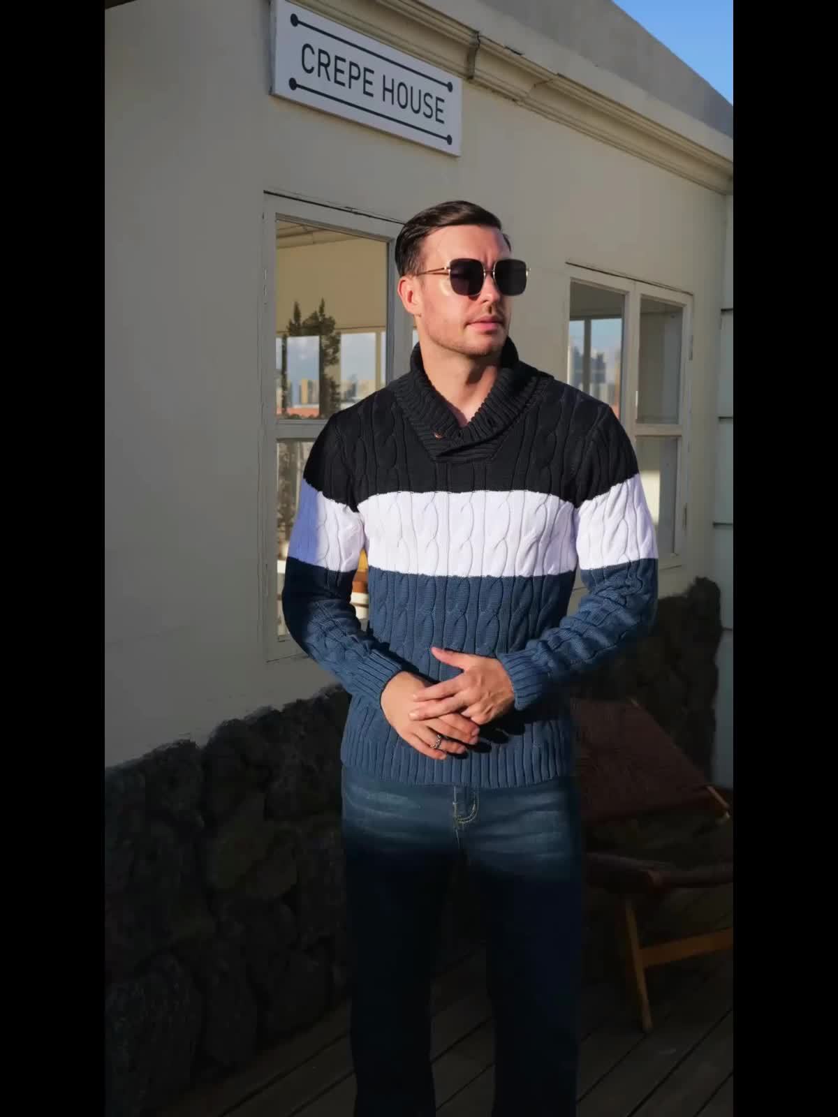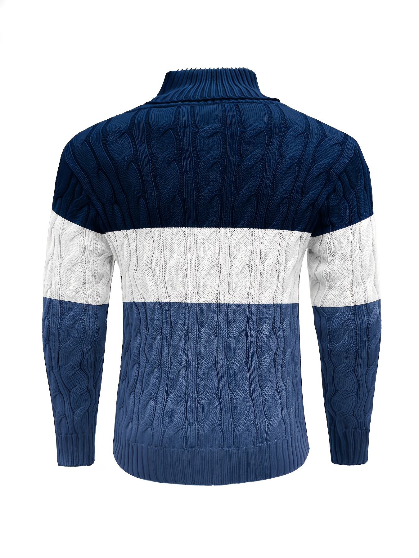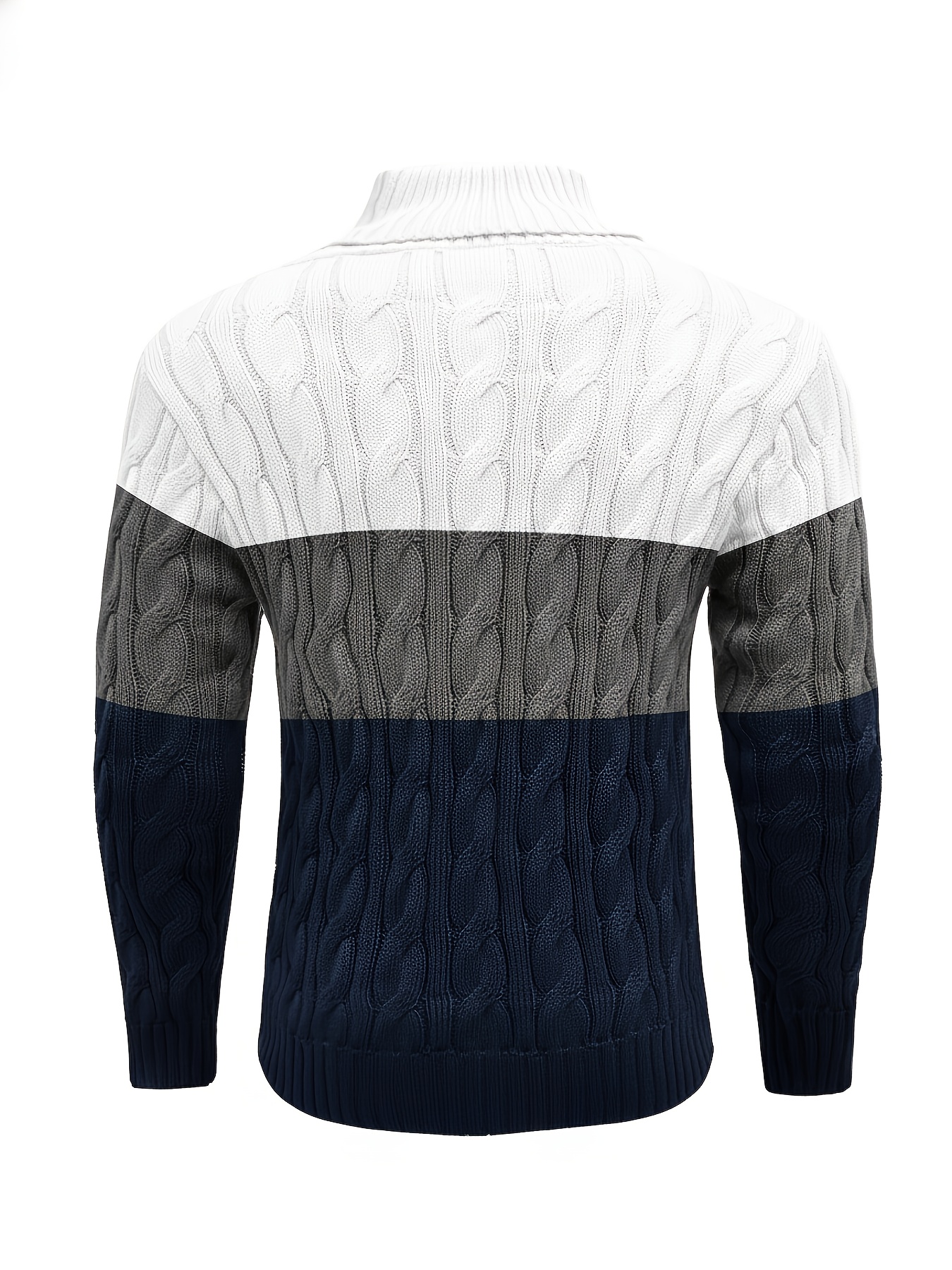 Men’s Business Contrast Color Sweater, Fashion Trendy Patchwork Large Lapel Pullover with Versatile Button Design