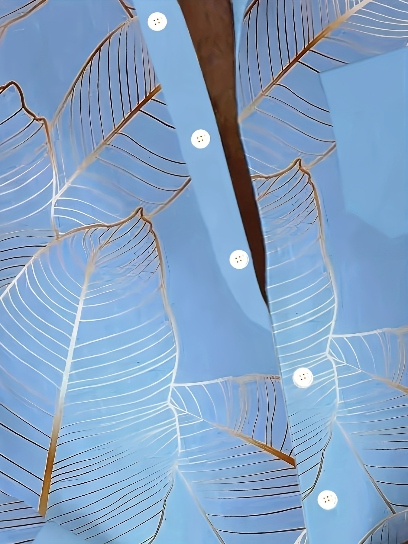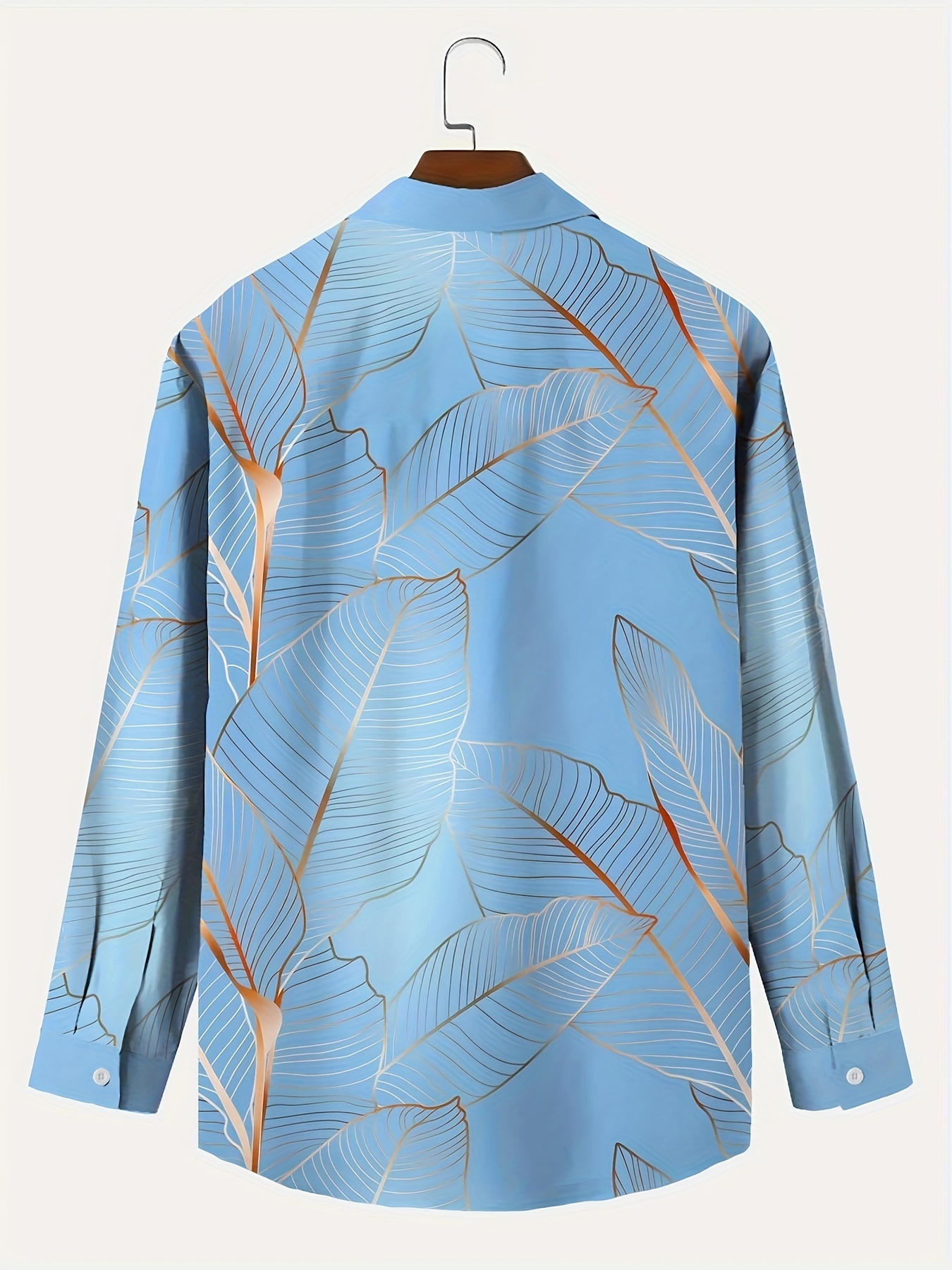 [Men’s Button-Up Shirt] Hawaiian Plant Leaf Gradient Print Men’s Button-Up Long Sleeve Shirt