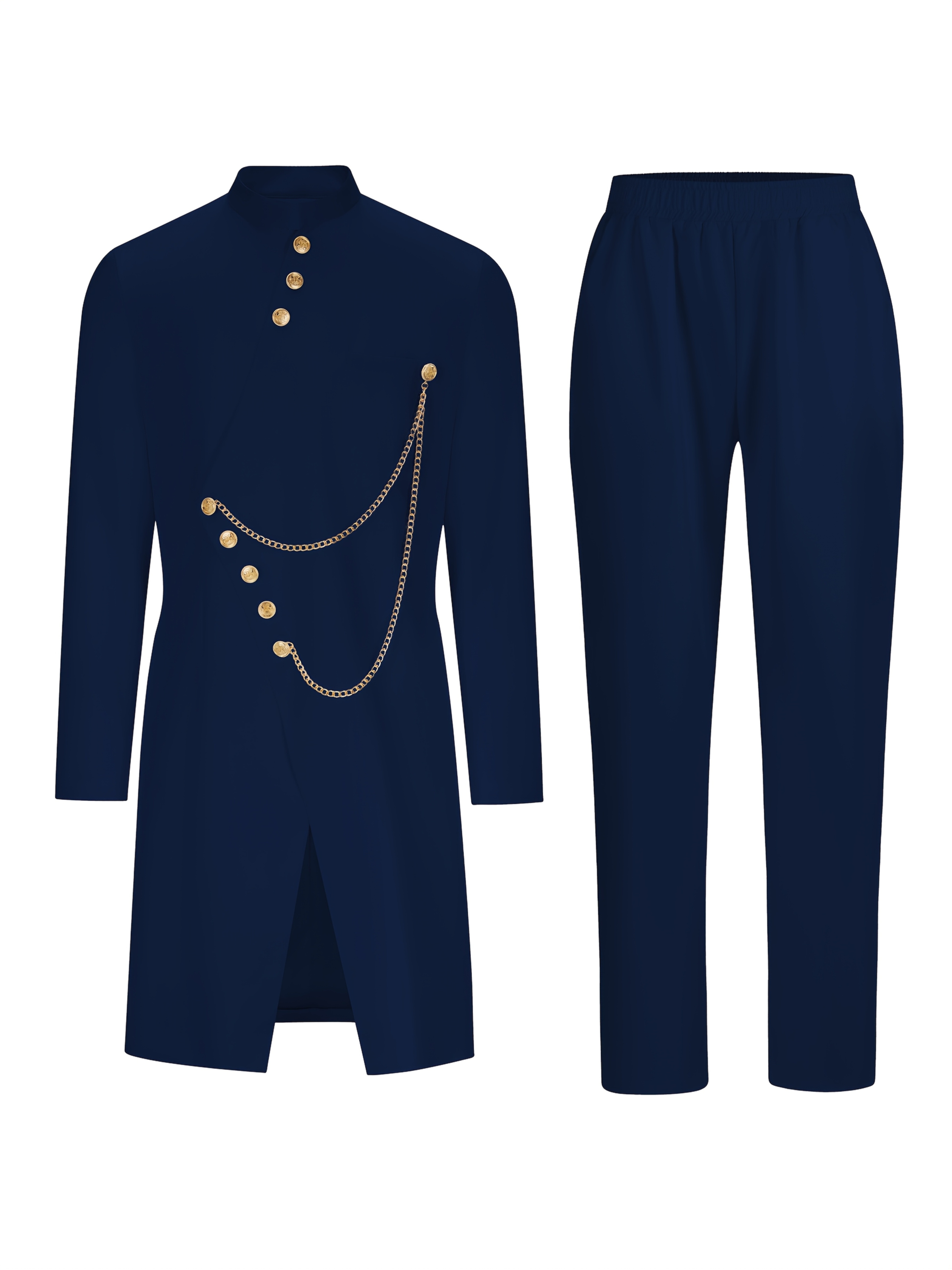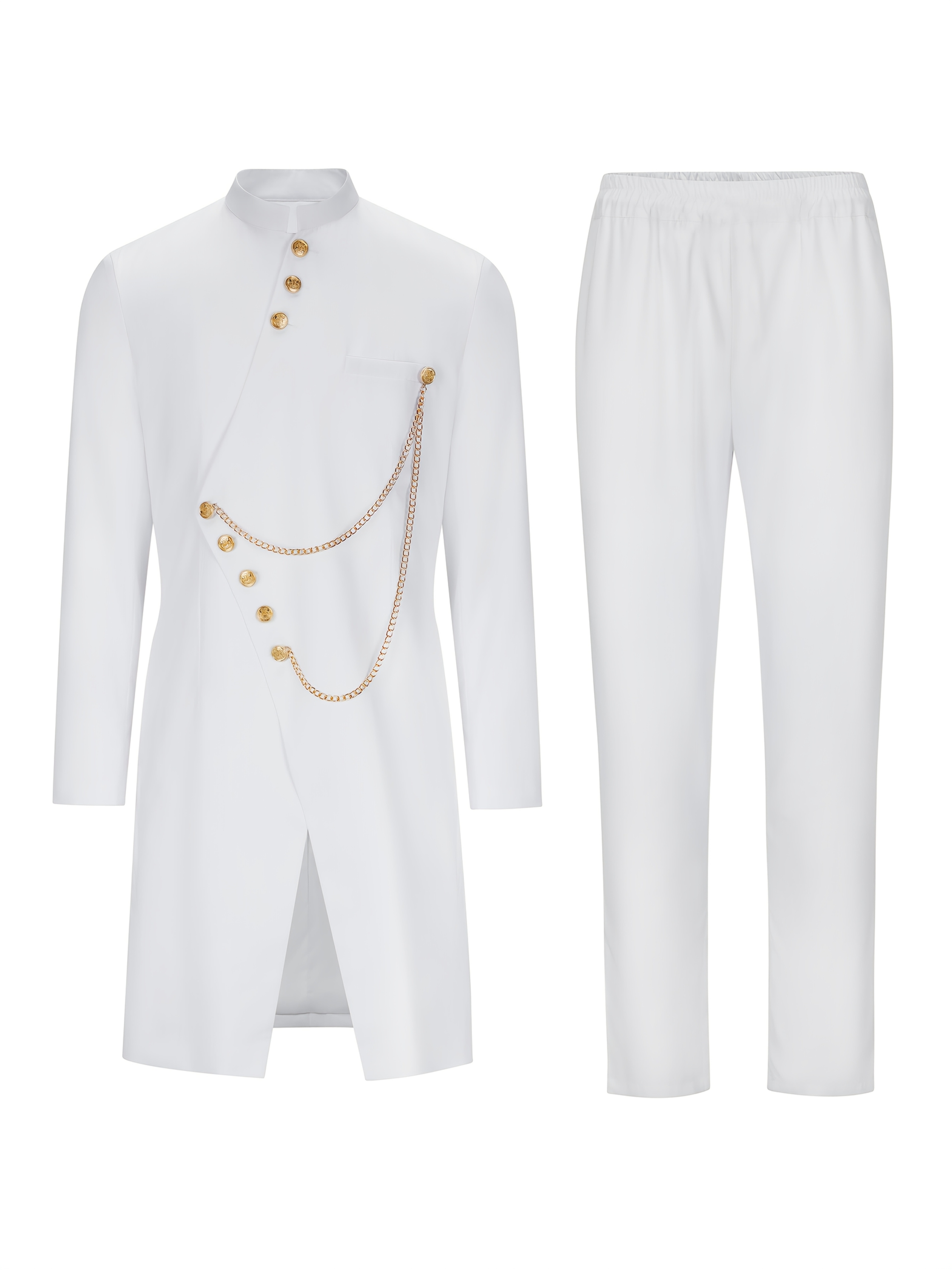 Men’S Casual Long-sleeved Two-piece Suit, Mid-length Top And Trousers