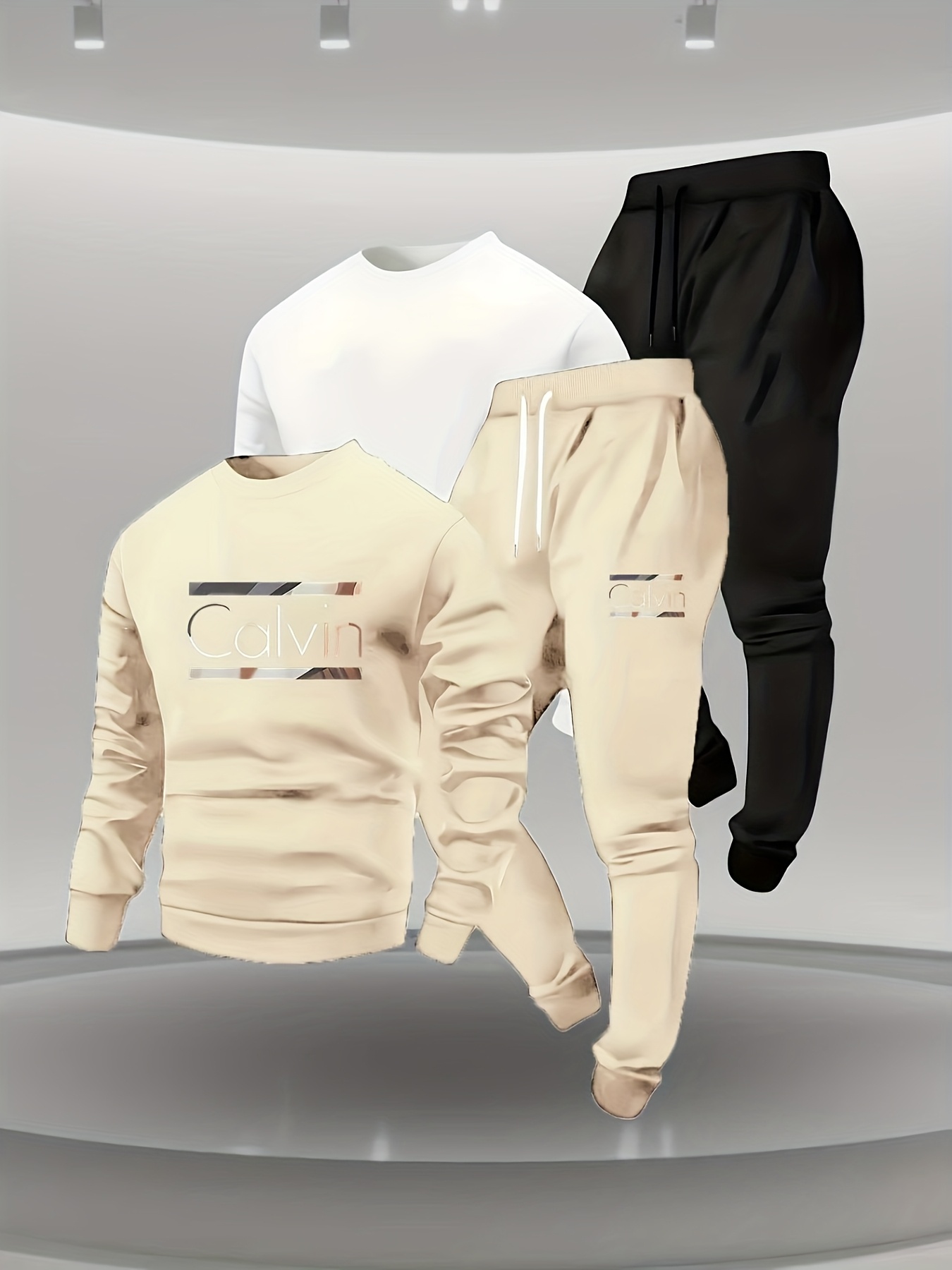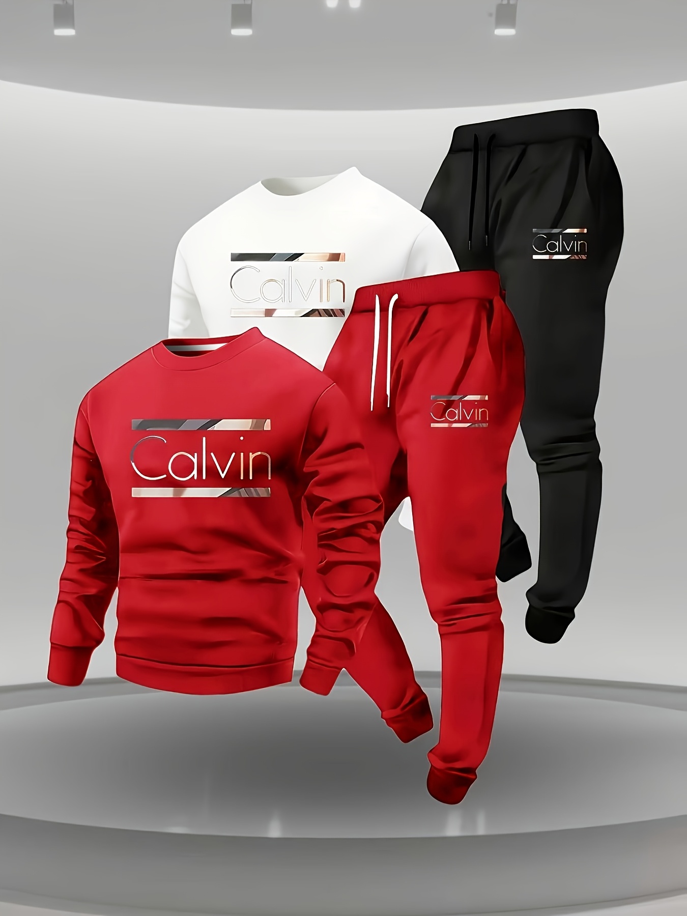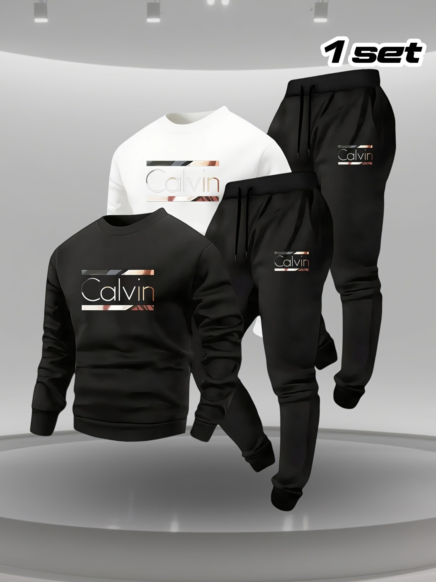 Men’s Two-Piece Trendy Printed Sweatshirt and Jogger Pants Set, 1 Set
