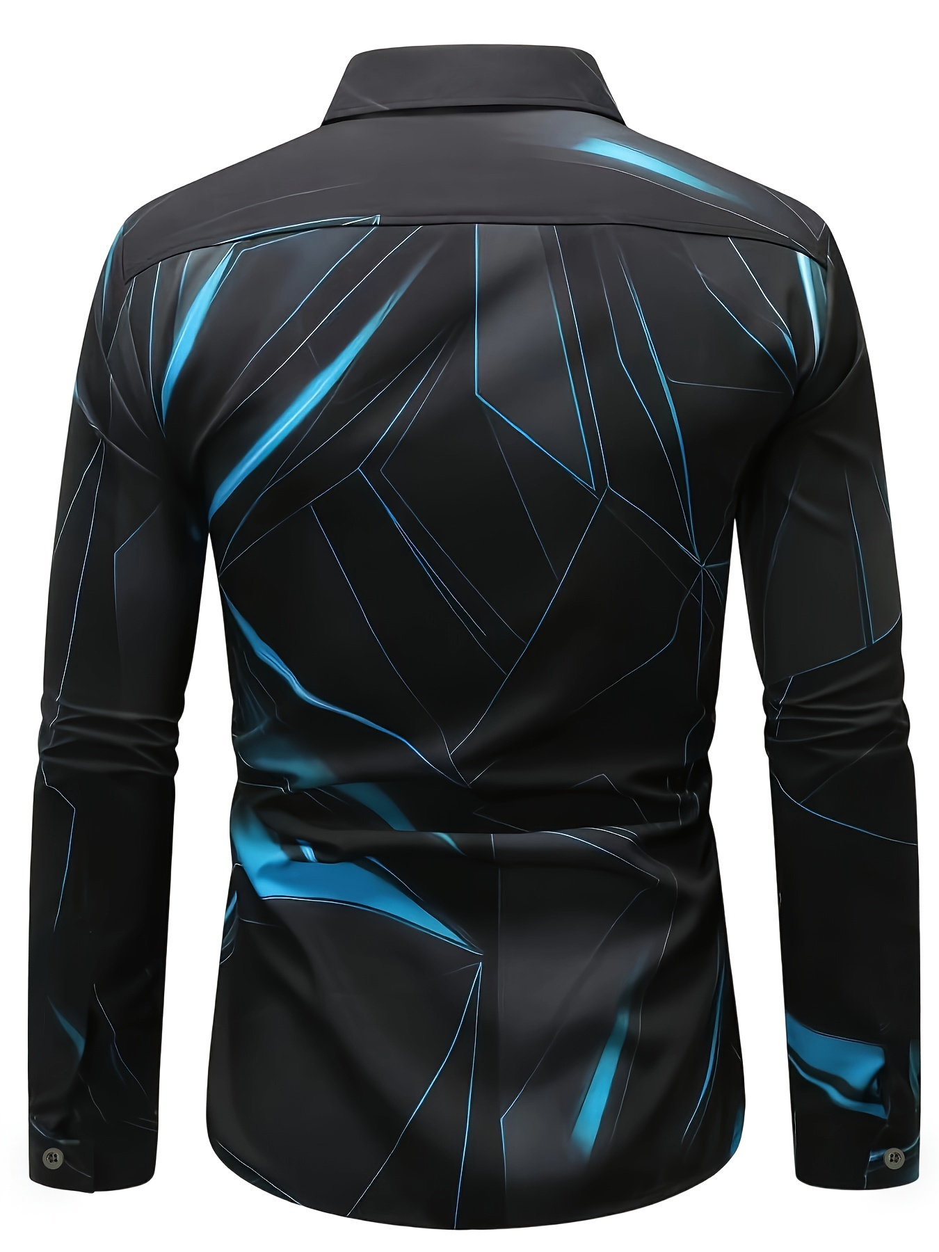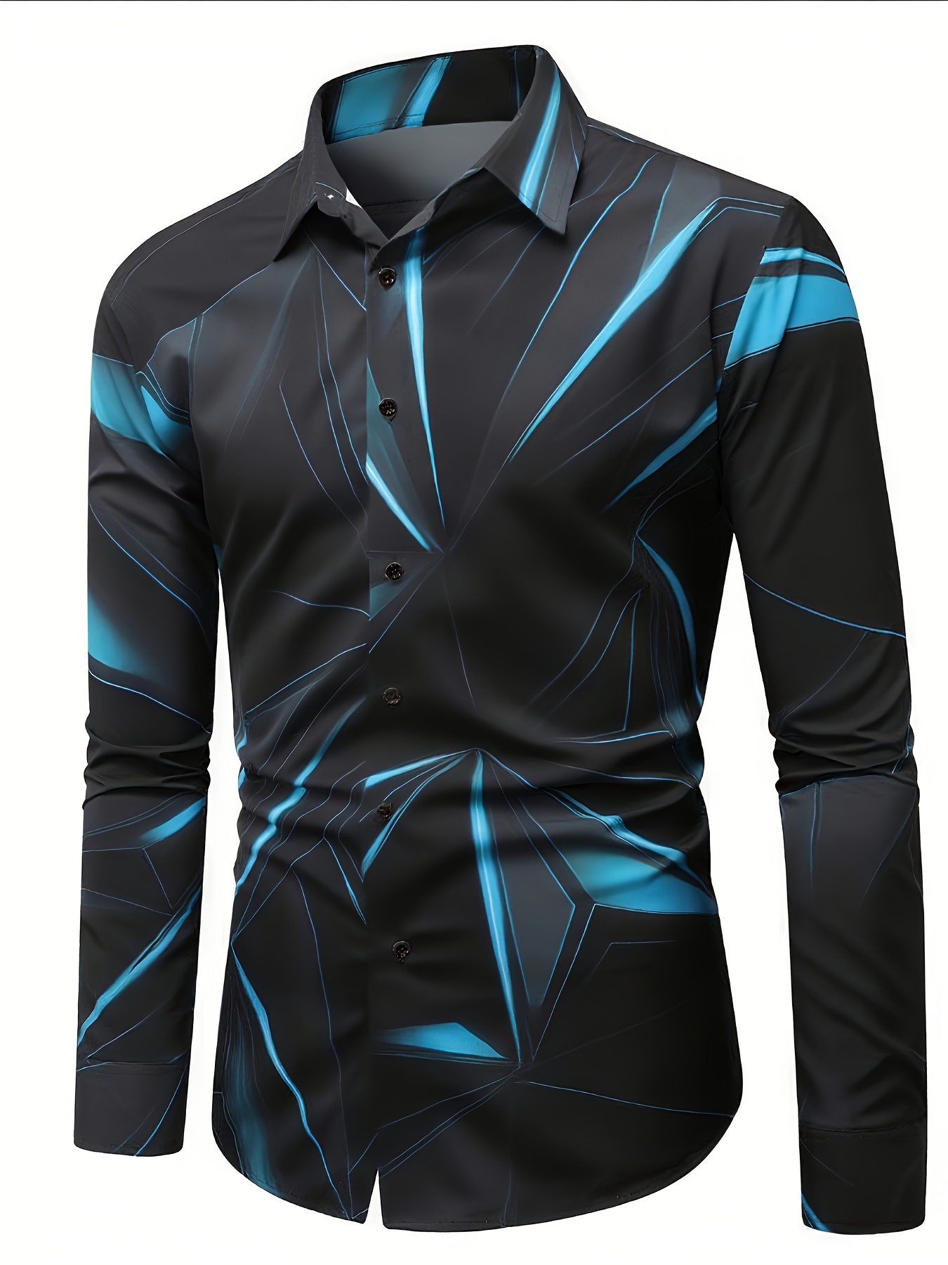 Men’S Vintage Long-Sleeve Collared Shirt with Geometric Patterns, Suitable for Parties, Business, Commuting, And Casual Occasions, Featuring Long Sleeves And a Button- Design.